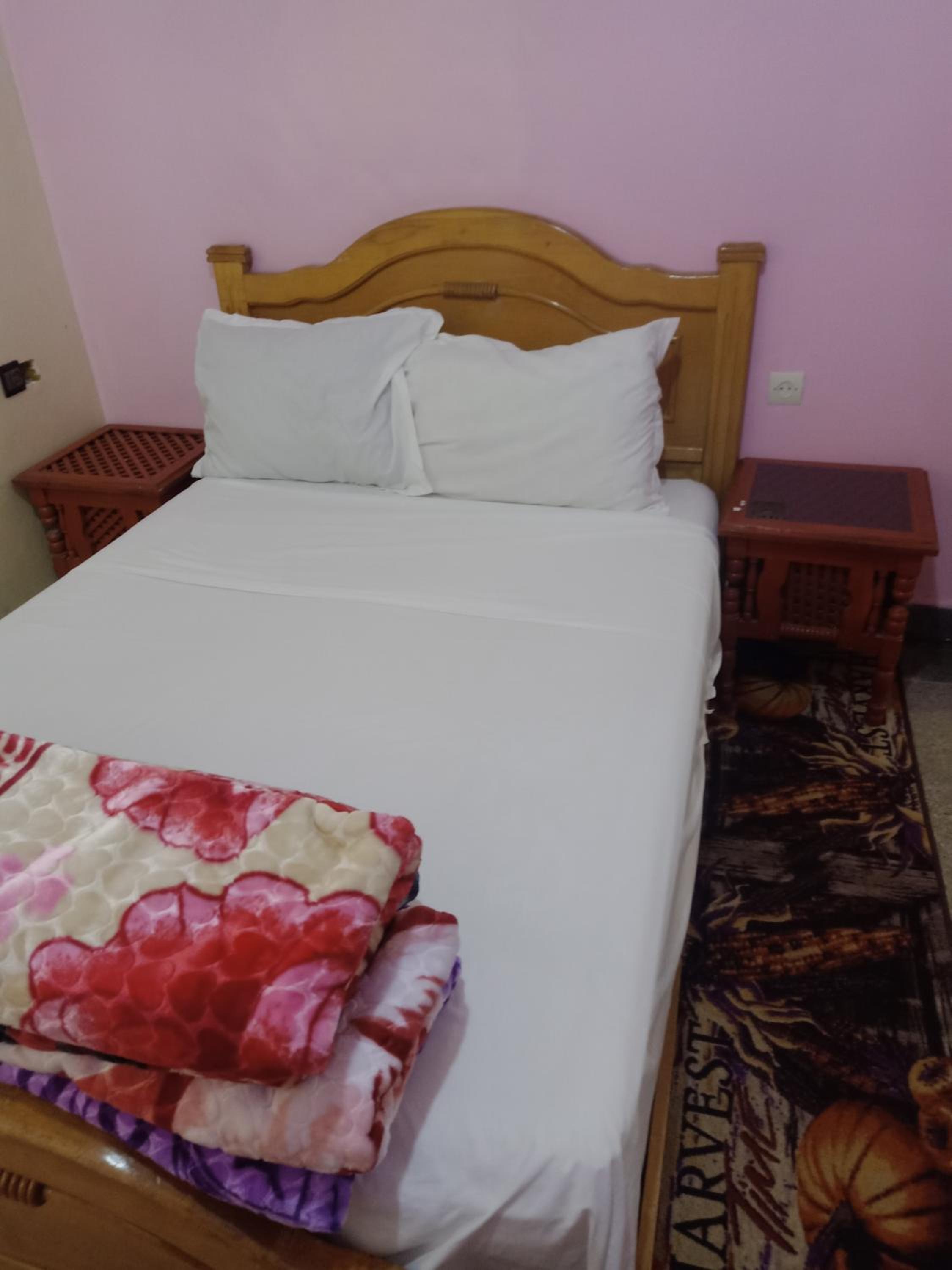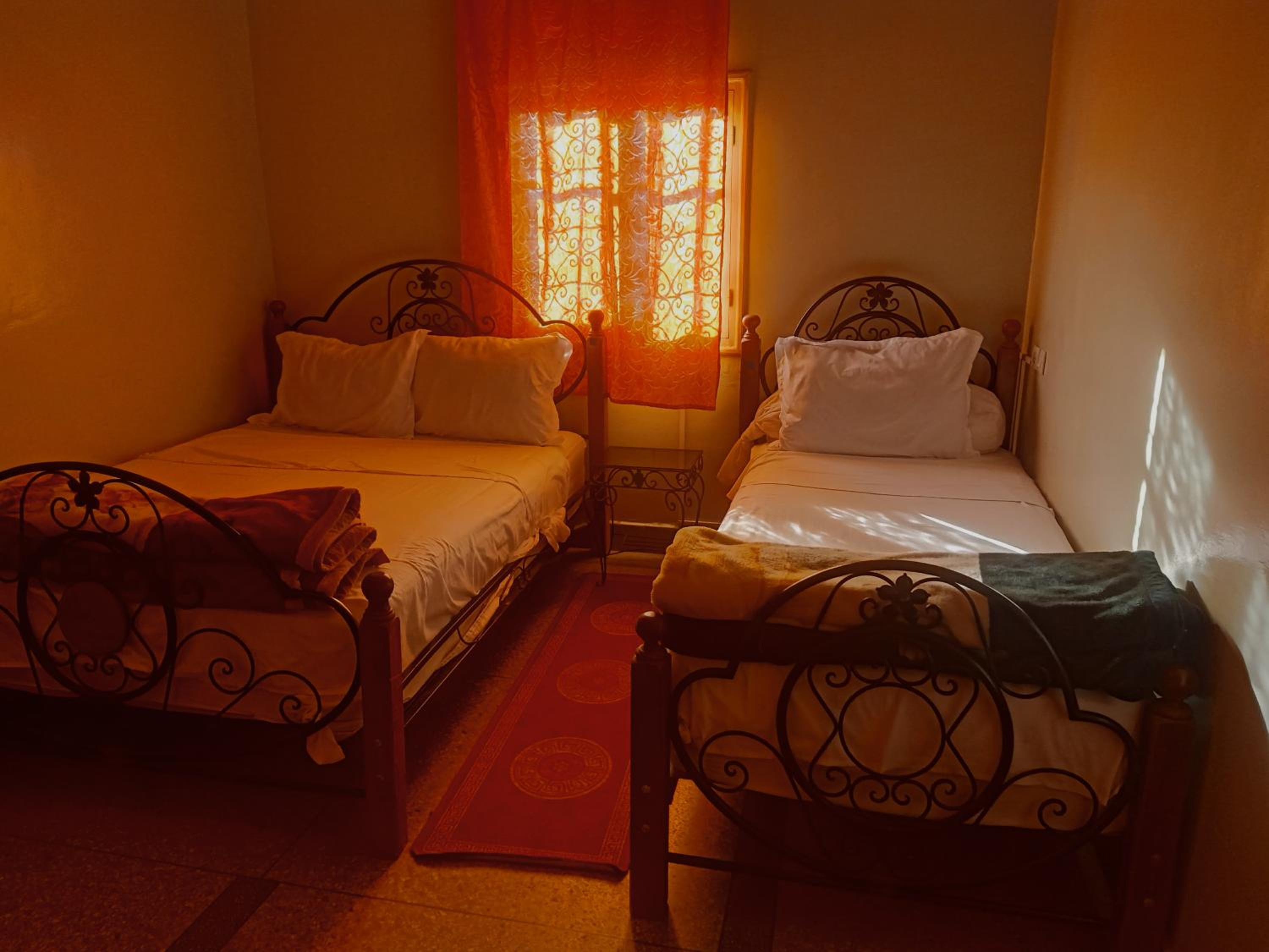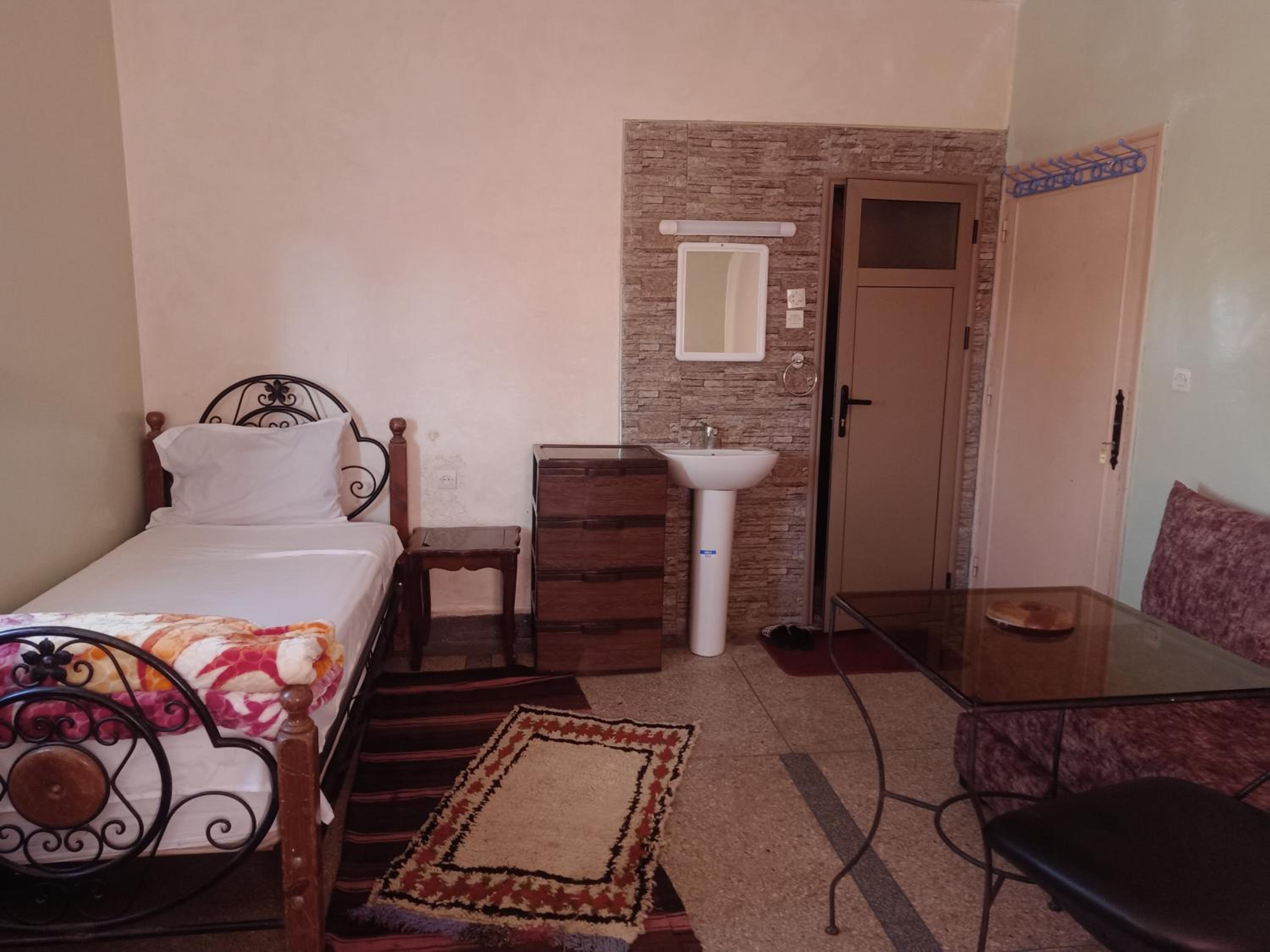 Nous avions réserver le logement pour 4 nuits à Ouarzazate. Nous avons été plutôt étonnés lors de l'accueil, en effet il a été fait par un enfant, dans un hall plutôt en travaux. Néanmoins le jeune a su se débrouiller pour nous faire remplir le papier de la taxe de séjour, nous la faire payer, nous donner notre chambre, du papier toilette et le Wi-Fi.