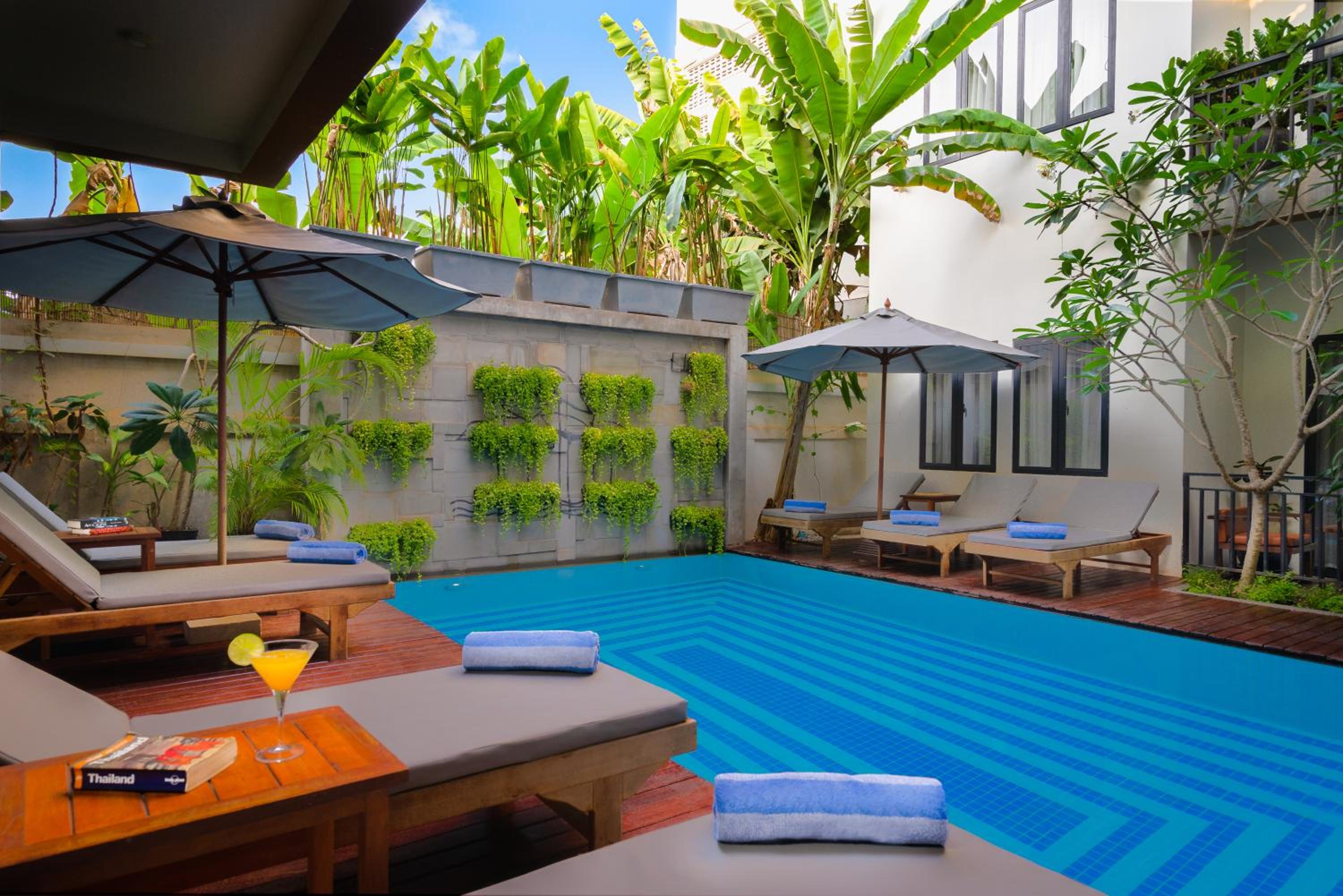 It's a nice cozy hotel with basic things available for staying. Clean bedsheets hot water in a shower and comfortable beds. The hotel is located far from the pub street which allows good night sleep. The hotel personnel is very polite and try to accommodate customers needs. We asked for airport pick up for extra money as well- good service.