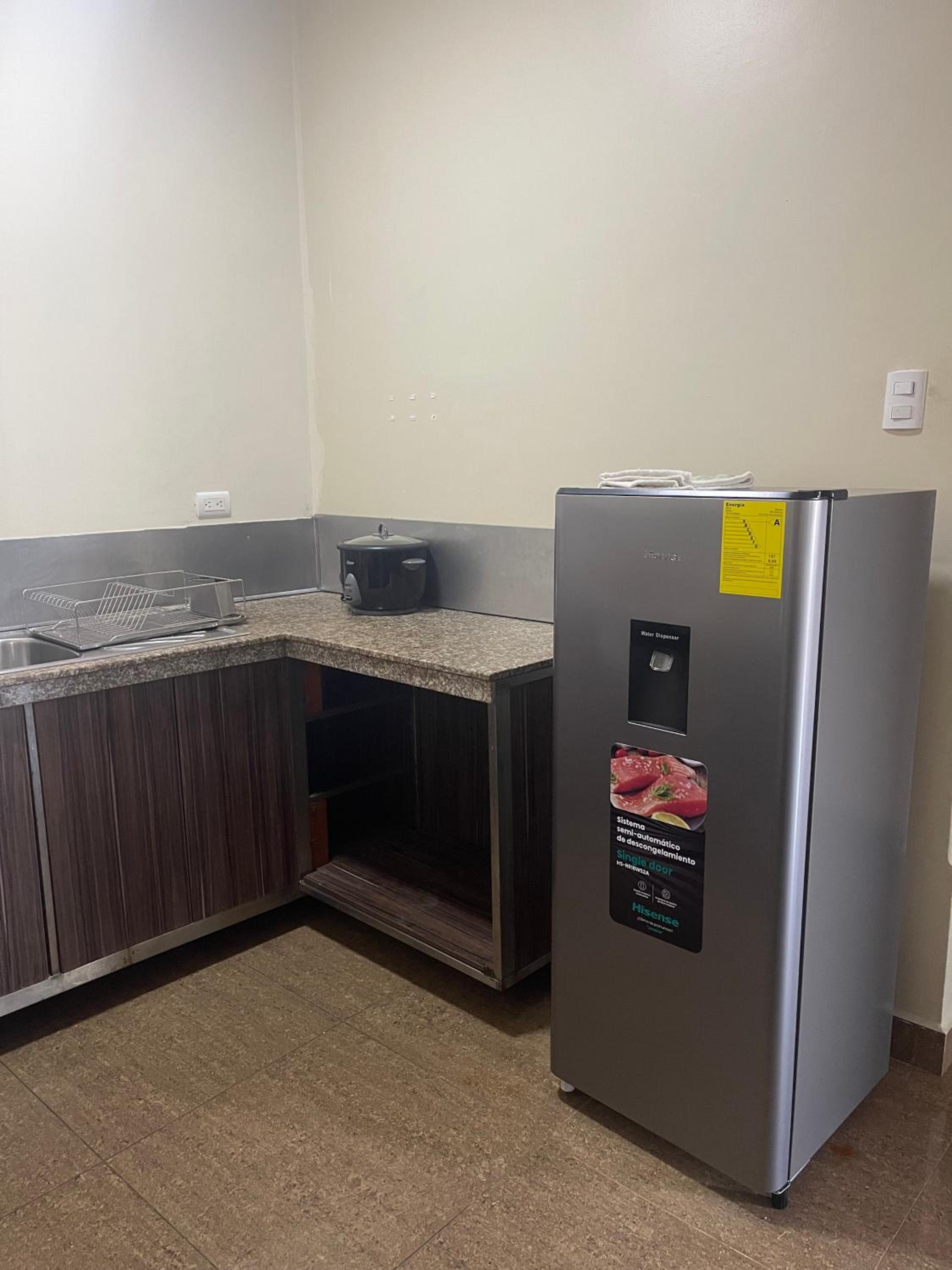 Se deben subir tres pisos por escalera y si no tienes quien te ayude subiendo la maleta, es un problema. No tiene dispensador de agua, hacen limpieza cuando te vas, no mientras estés hospedado.