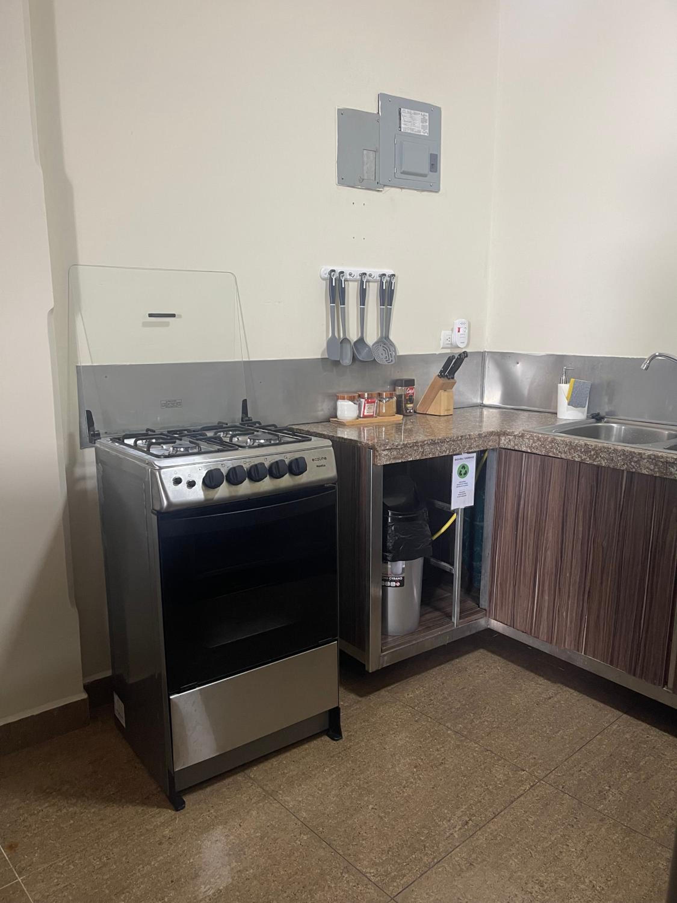 Las sábanas, toallas, el agua caliente, la ubicación, la cocina estaba bien equipada, el aire acondicionado funcionaba muy bien y la señora era muy amable.
