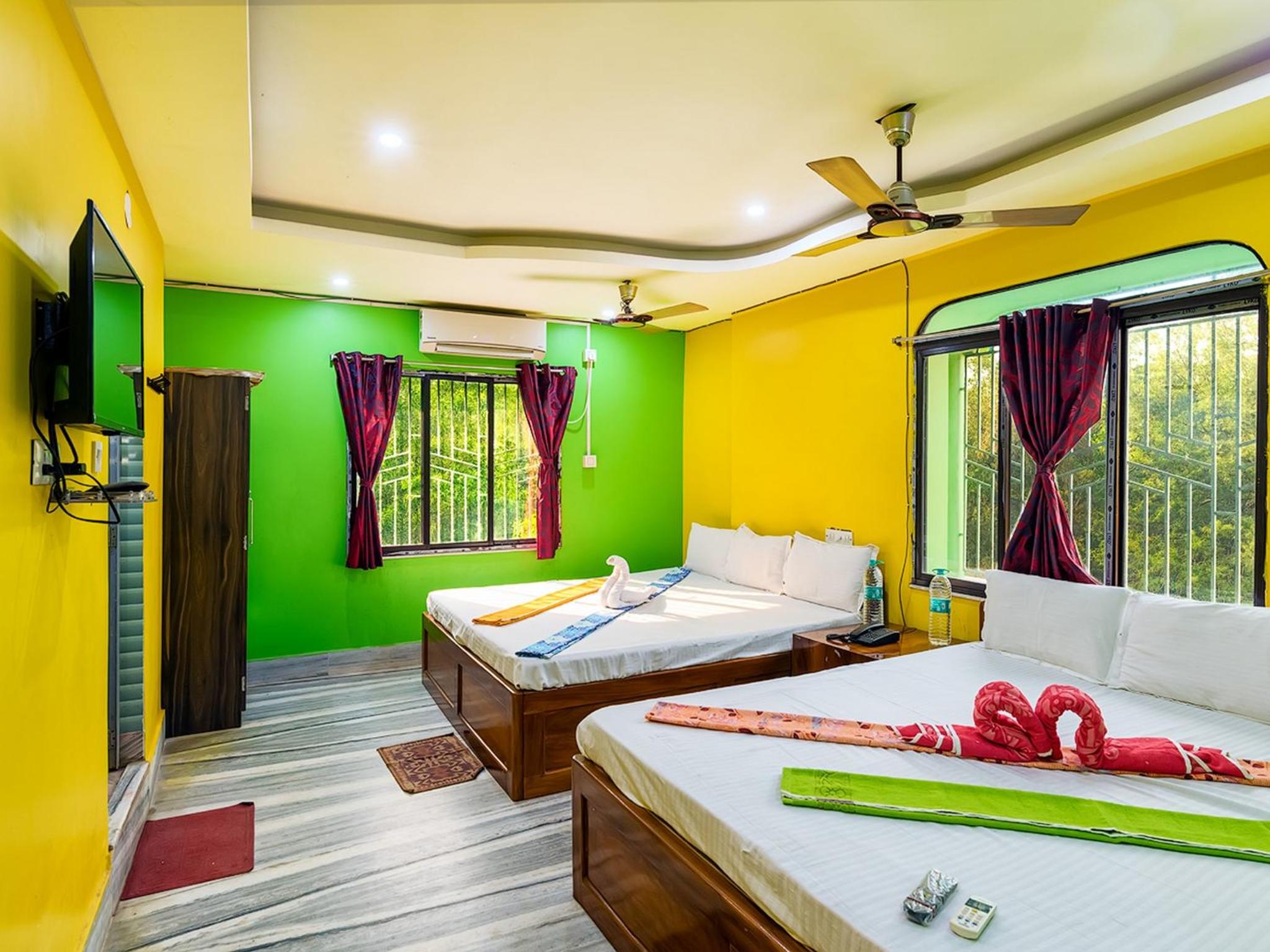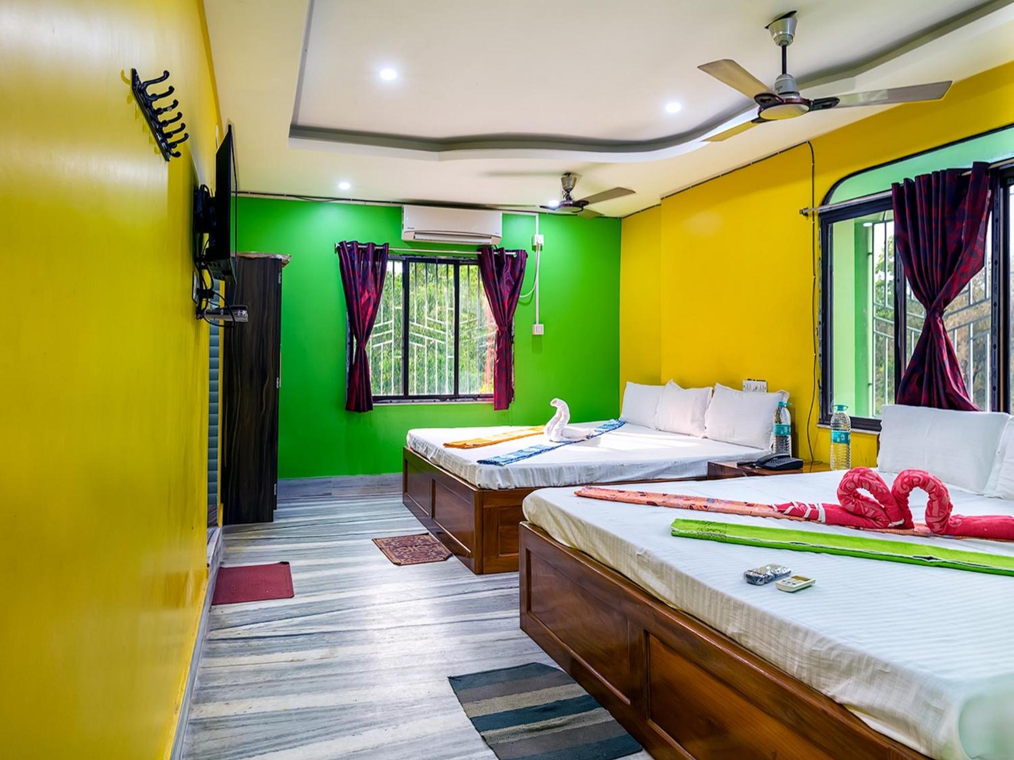 actually I booked a non AC deluxe room forest view... it was just awesome.. rooms are big also have a fine balcony with forest view, rooms and bathroom are very clean and hygienic... they also provide a big screen led tv with all our favourite tv channels.. at the time of morning and evening you can enjoy your tea and snacks in that forest facing balcony with the natural sounds of birds..