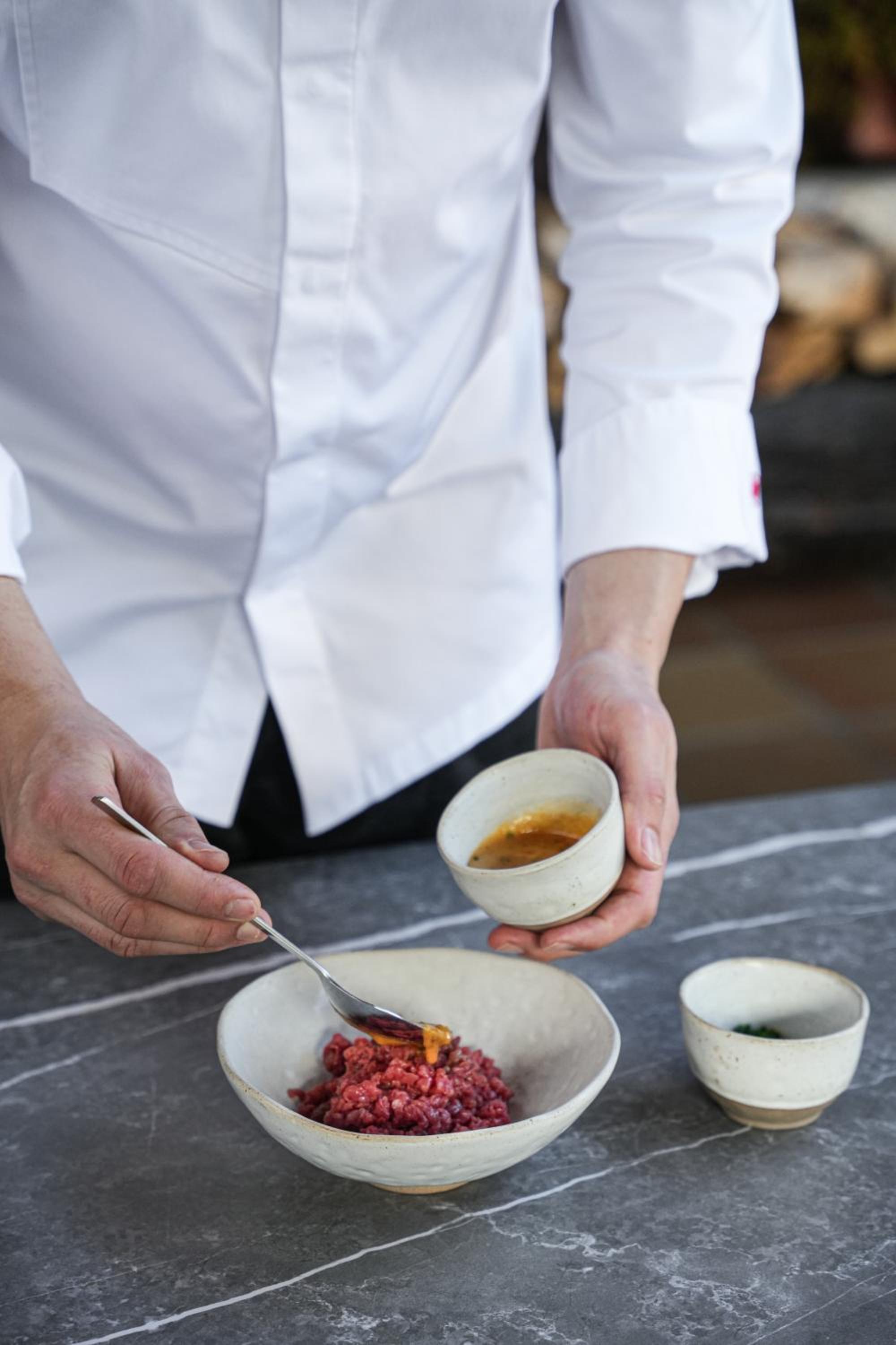 Hemos comido en el restaurante el atún exquisito.