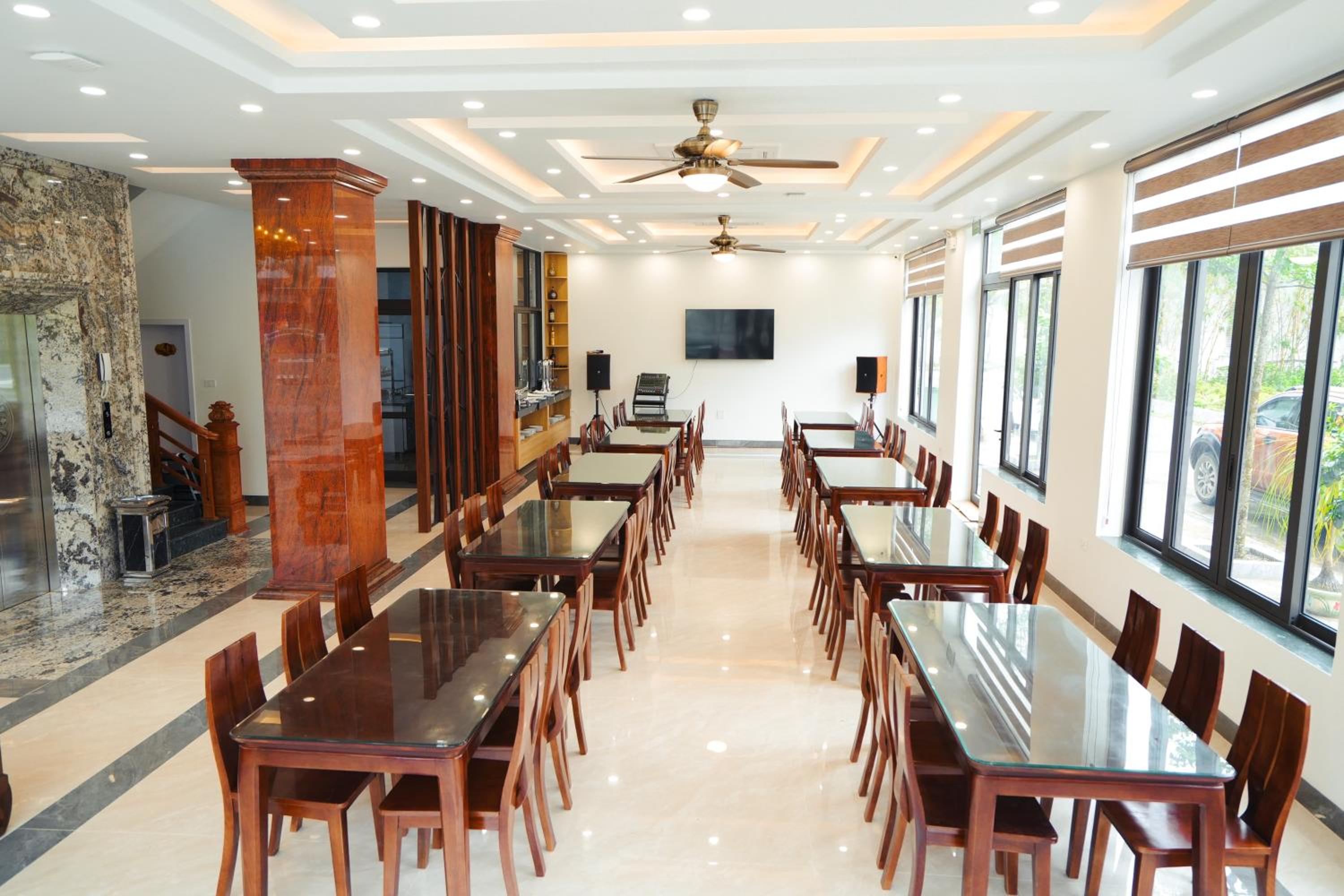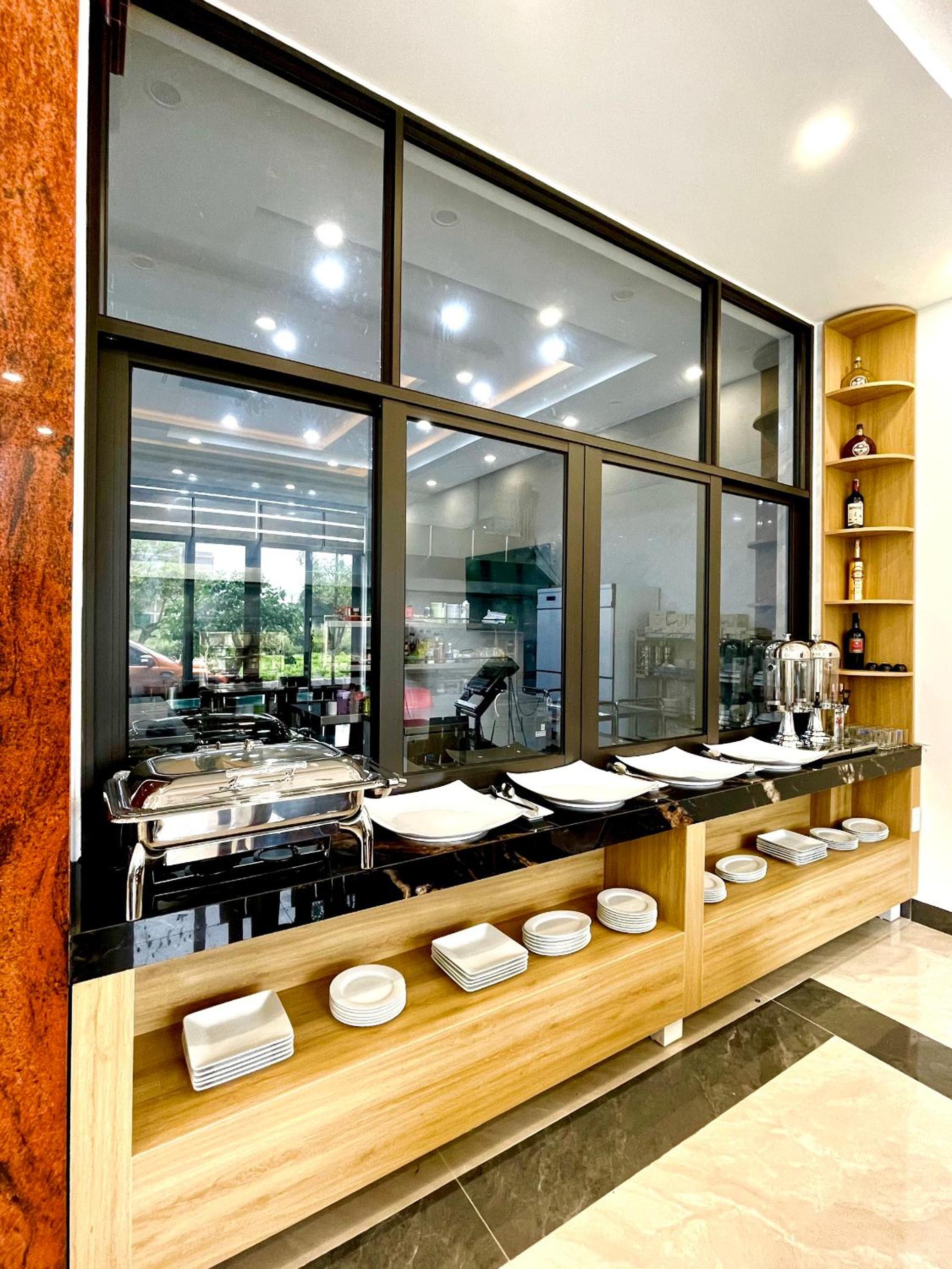 *Tầng 1: Sảnh tiếp tân, nhà hàng (bữa sáng gồm bánh mì, xôi, phở. Không bao gồm nước, nước 20-30k). Với tiêu chuẩn nhà hàng ksan 3* bữa sáng buffet, nước cơ bản có trà, cafe thì chưa đáp ứng dc