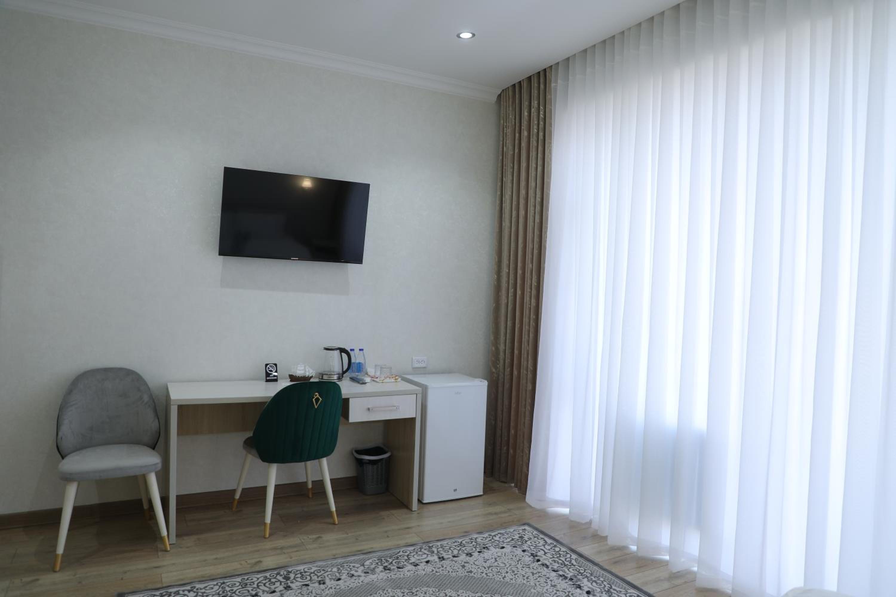 Experience comfort and convenience in our air-conditioned rooms furnished with modern amenities like a safety deposit box, flat-screen TV, and a private bathroom.