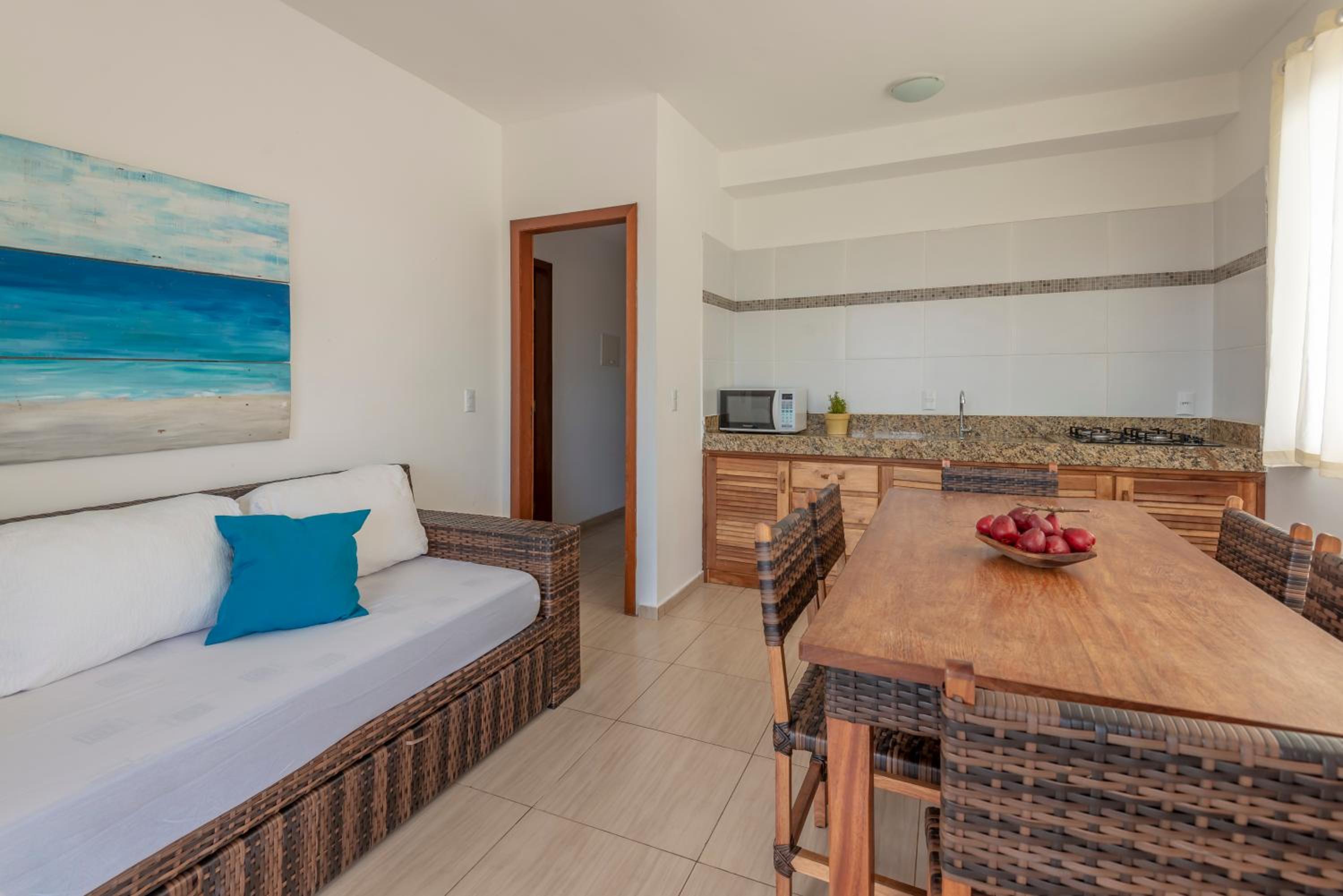 Localização ótima, o café da manhã fica do outro lado da rodovia, mas à beira da praia. Melhor praia da região, muito silenciosa, tranquila, bonita e limpa. O condomínio é lindo e limpo.