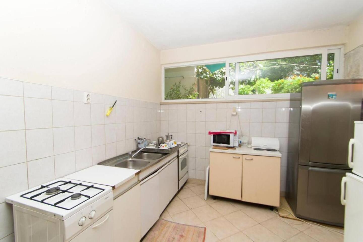 The room was in terrible condition. The equipment was old and there was dirt everywhere. The window was broken and during the storm the water was getting inside. The toilet was not hygienic. We only got 3 small towels that were barely absorbing water. We found used tissues behind the nightstand, probably from previous guests. The entire building and especially the apartment smelled terrible. There was no AC. The owner made us feel uncomfortable as two young women. We decided to cancel our last night there.