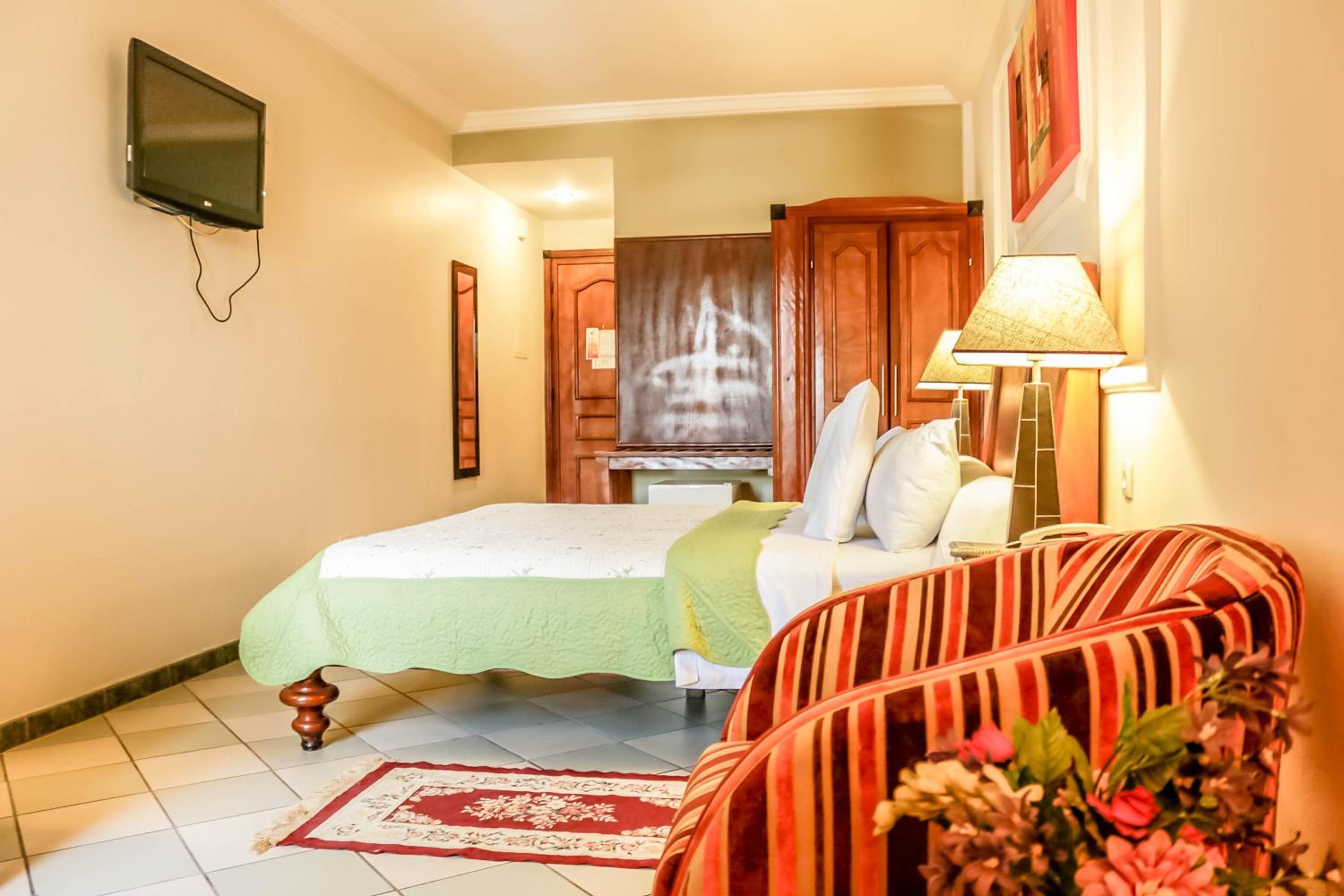 Each room at Tchero Hotel is equipped with air conditioning, a desk, a balcony overlooking the city, and a private bathroom. Guests can also enjoy in-room entertainment with a flat-screen TV and stay refreshed with a fridge in every room.