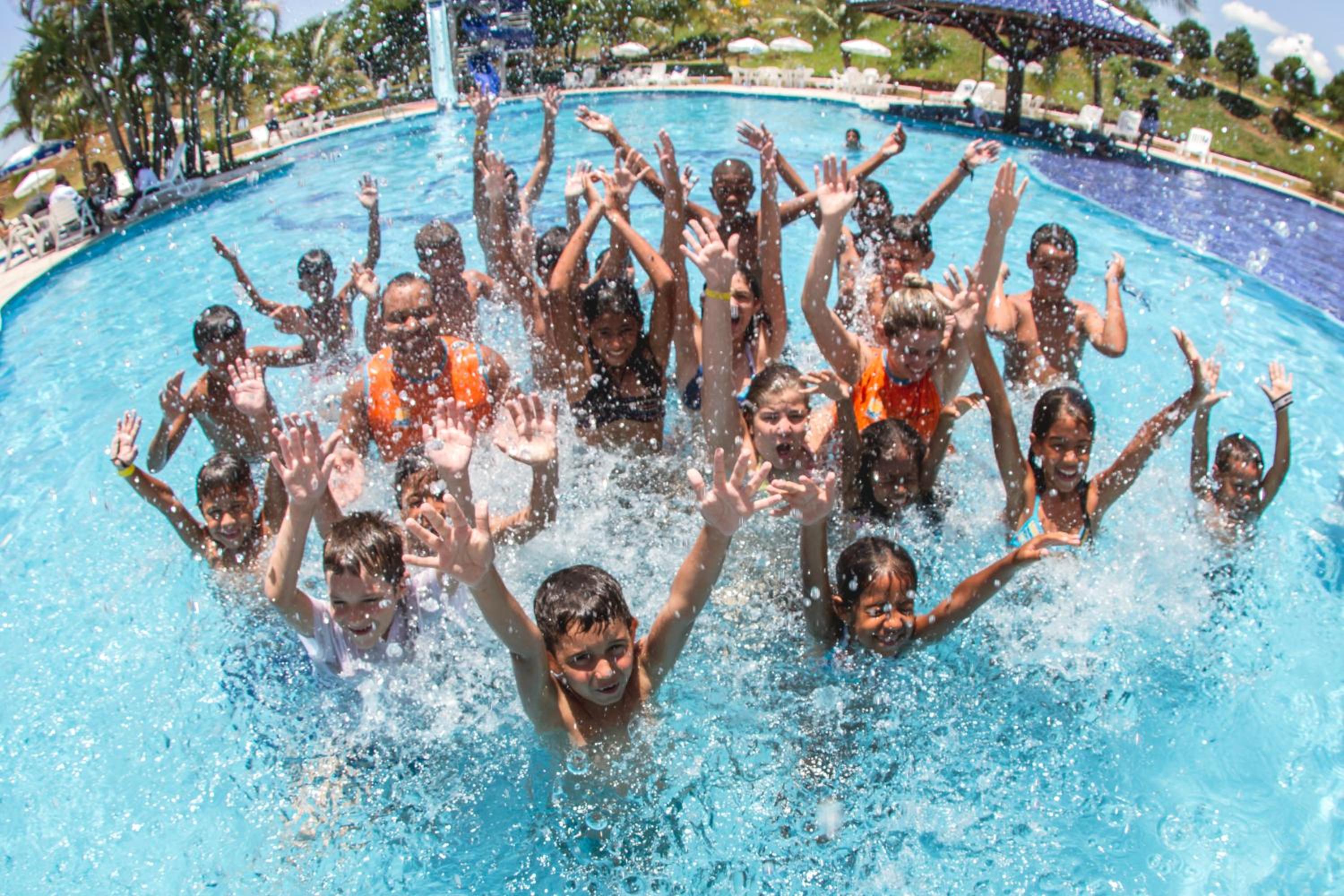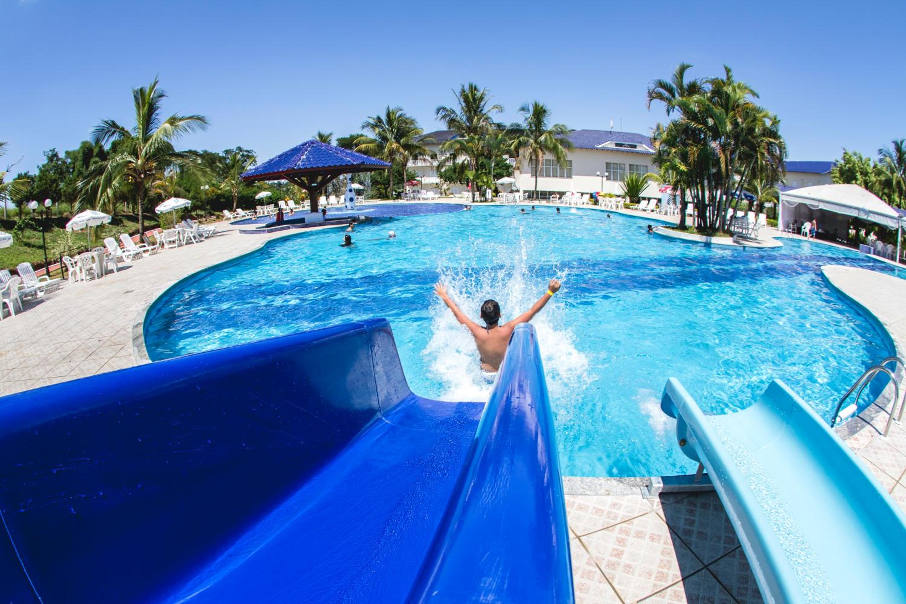 Piscinas, comidas e bebidas, espaço de lazer.