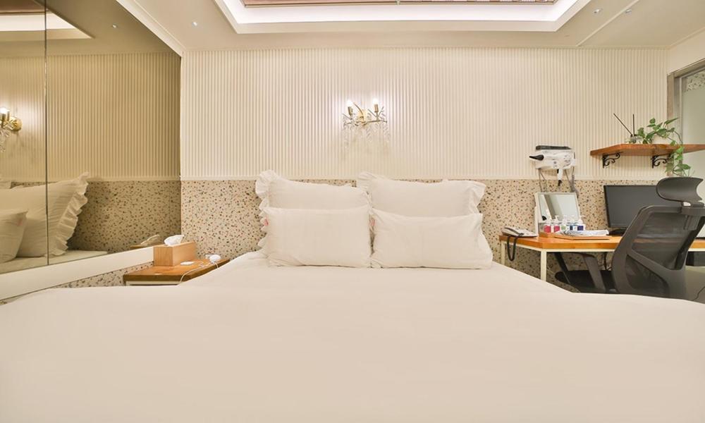 The photos on the booking internet site are really not the reality. The description says good location close to Dongdaegu station ,but no taxi driver accept to drive me there as they did not know the place. The breakfast area is located in a tiny, unheated, and dark room in the hotel garage. Breakfast consists mainly of packaged food, and the coffee machine only makes lukewarm drinks. The room was thankfully clean, but the room design was weird/bizarre.
