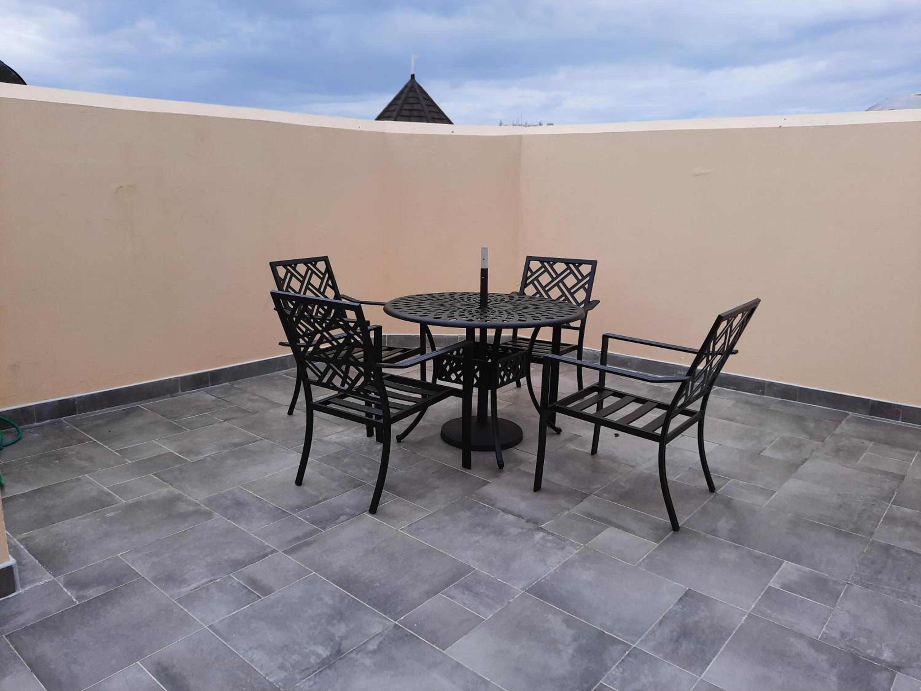 The properties should be annually refreshed. Stools on balcony were just basically a plastic, hard stained painters stool. Not impressed! Property itself needed repairs as window slats were broken, tv unit the same… I was concerned about the bedroom walls and felt a discount should have been considered to reflect the issues… but this was not given and this is a shame; for this reason I can’t recommend nor guarantee the perfect stay.