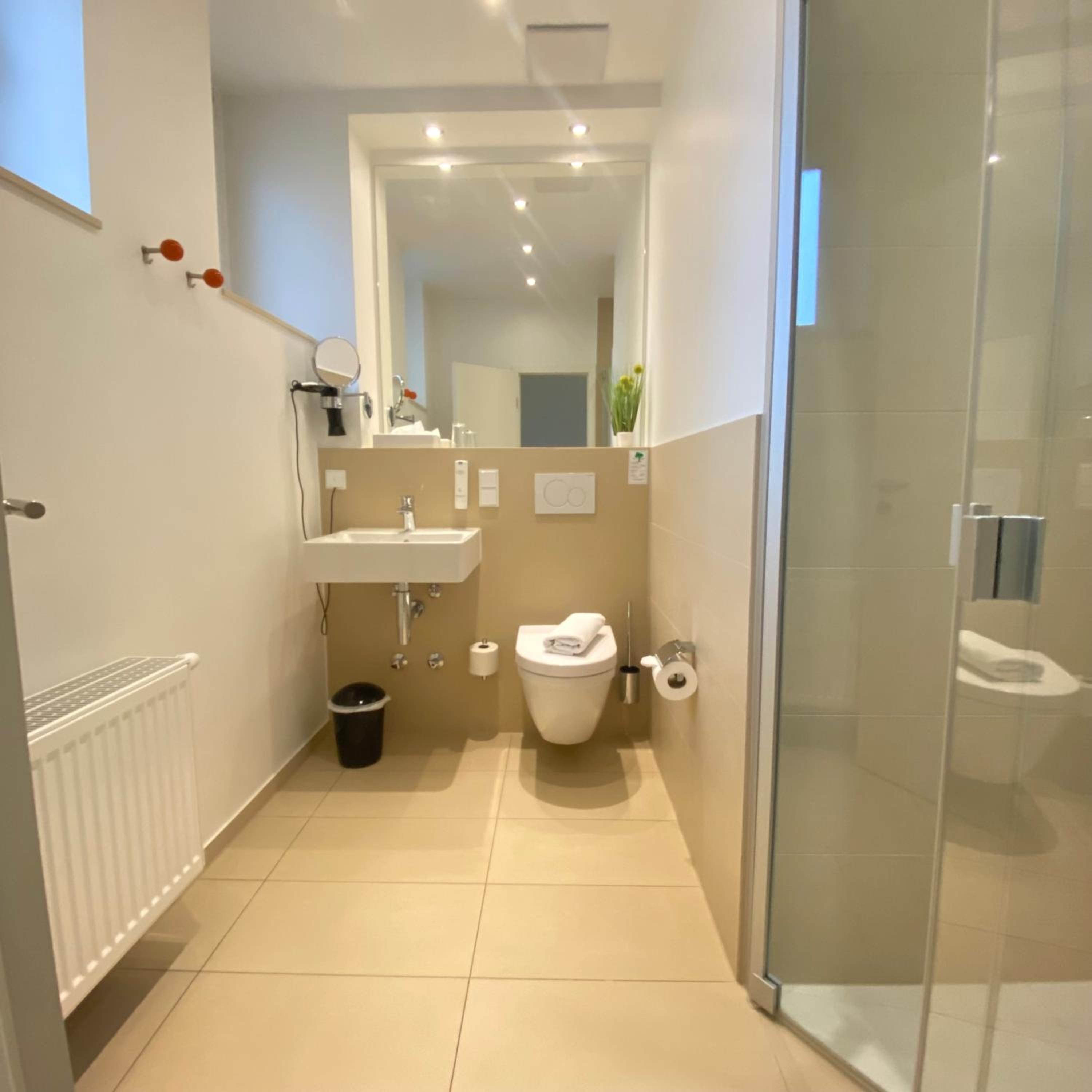 Sehr sauber und modern, klasse Ausstattung. Betten sind mega bequem. Gute Lage/ gut erreichbar.