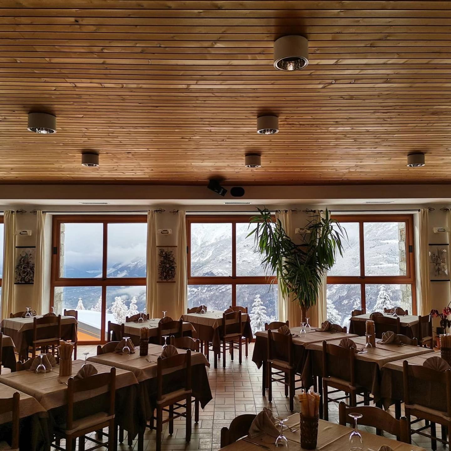 Posizione spettacolare con vista sui monti innevati della valle, personale veramente gentile e disponibile.