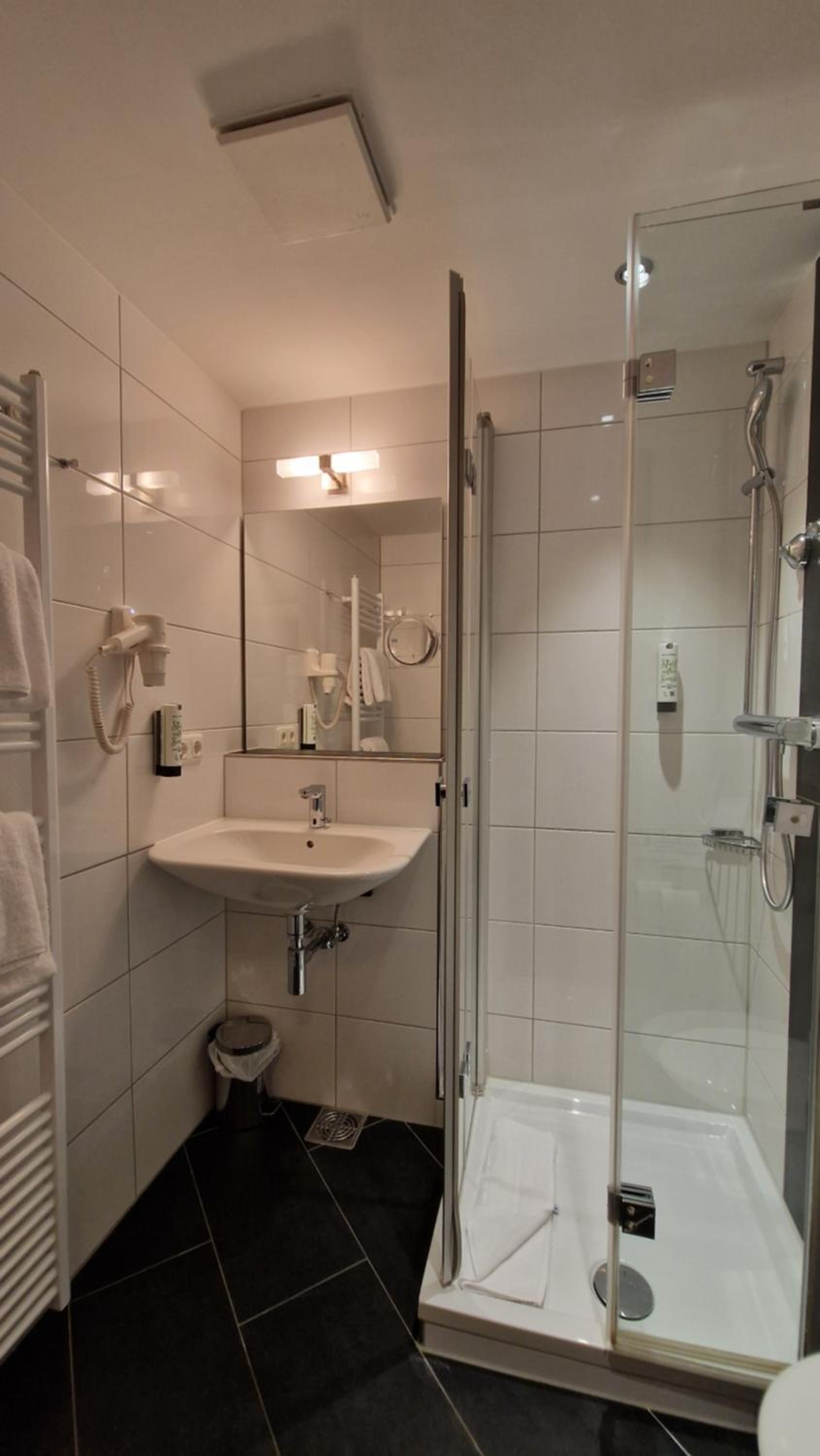 Das Einzelzimmer in Ordnung auf normalem Mittelklasse Niveau. Bad geräumig. Alle Auslegeware sauber