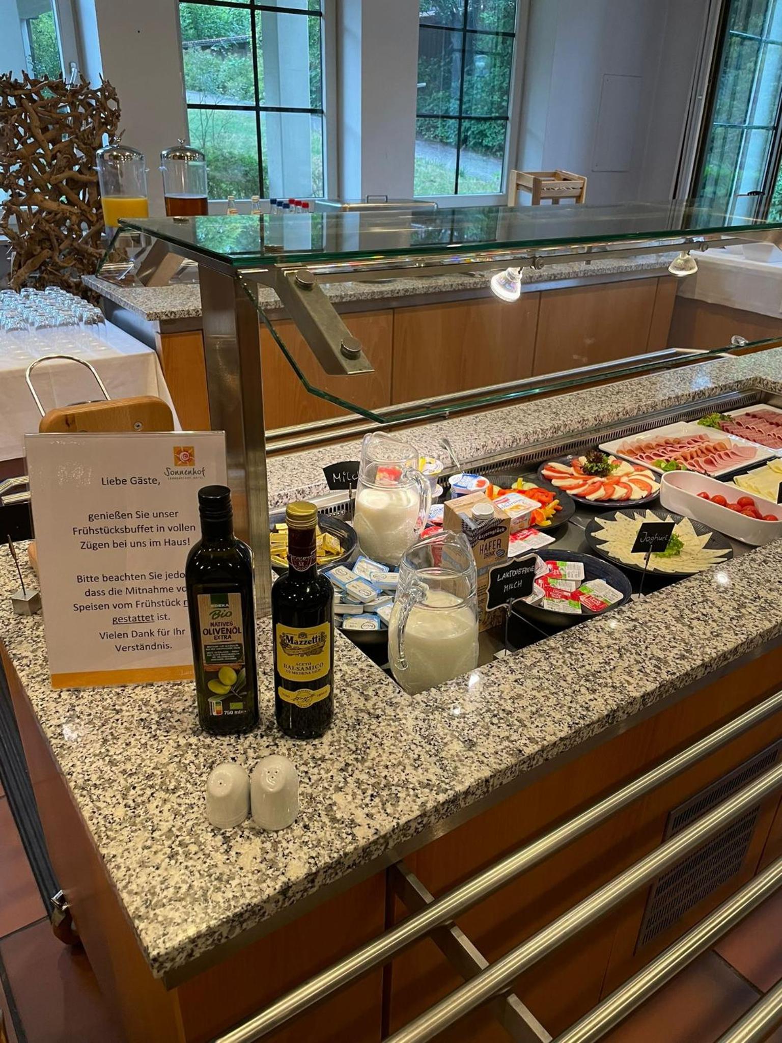 Das Frühstück war in seiner Auswahl überschaubar, wie das kleine Kämmerlein in dem das „Buffet“ präsentiert wurde. Hier war der Kollege in der Frühschicht bemüht, aber konnte einigen Mangel halt auch nicht beheben.