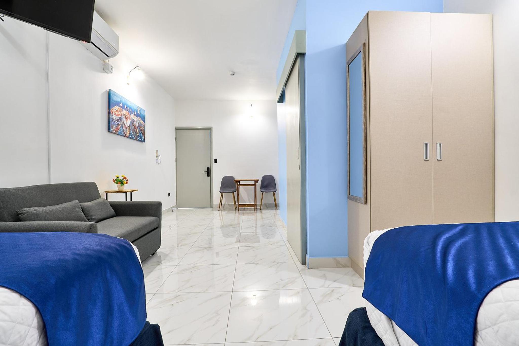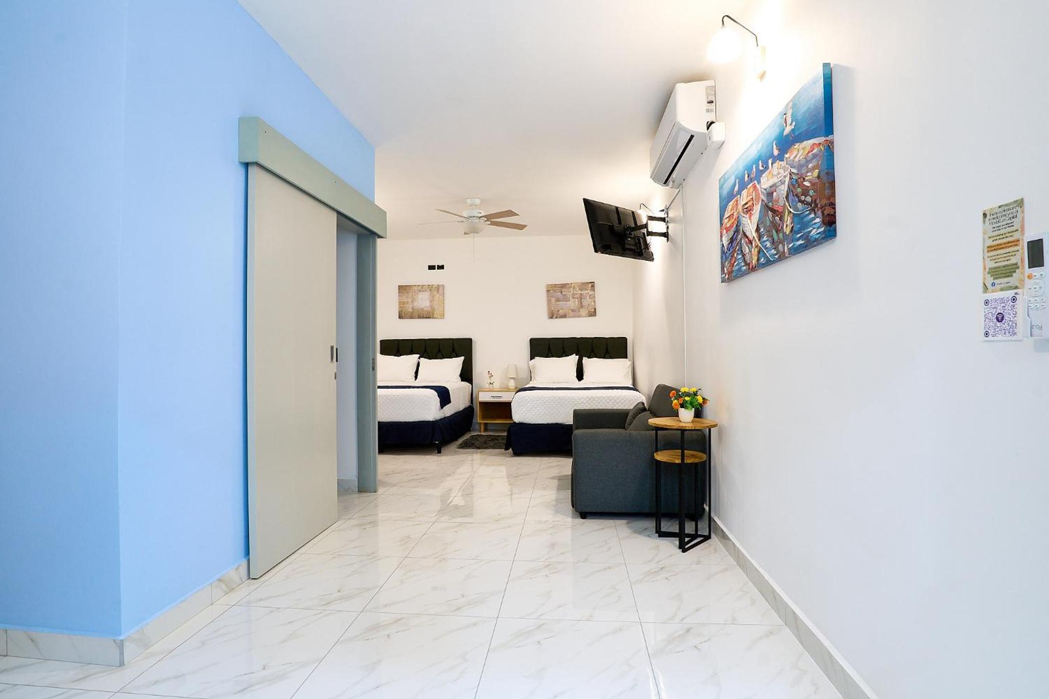 Relax and unwind in the spacious accommodations featuring a flat-screen TV, along with complimentary towels and bed linen provided for a cozy stay.