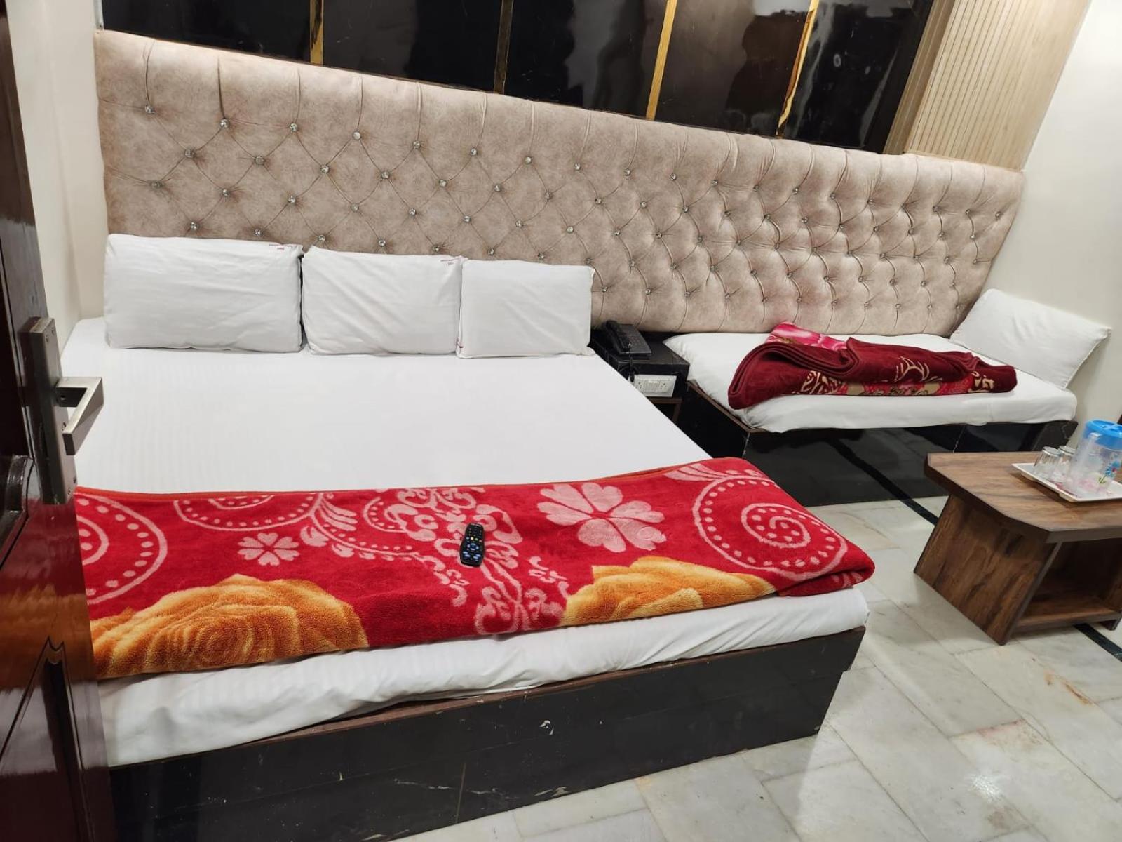 The room was not as shown in the picture. The room was very small, the toilet and bathroom were very small and old. The street was very dirty during the rainy season and non-vegetarian food was served. The room was stated to be 25 square meters but it was about 10 square meters. Slippers were not given for the bathroom, nor were towels given. The housekeeping staff was called for cleaning but he did not come. The same boy was ordered to serve food who brought very poor quality food and charged 70 rupees more than the quoted price. No parking space was there. Never order food from housekeeping staff, literally you can't eat that food.