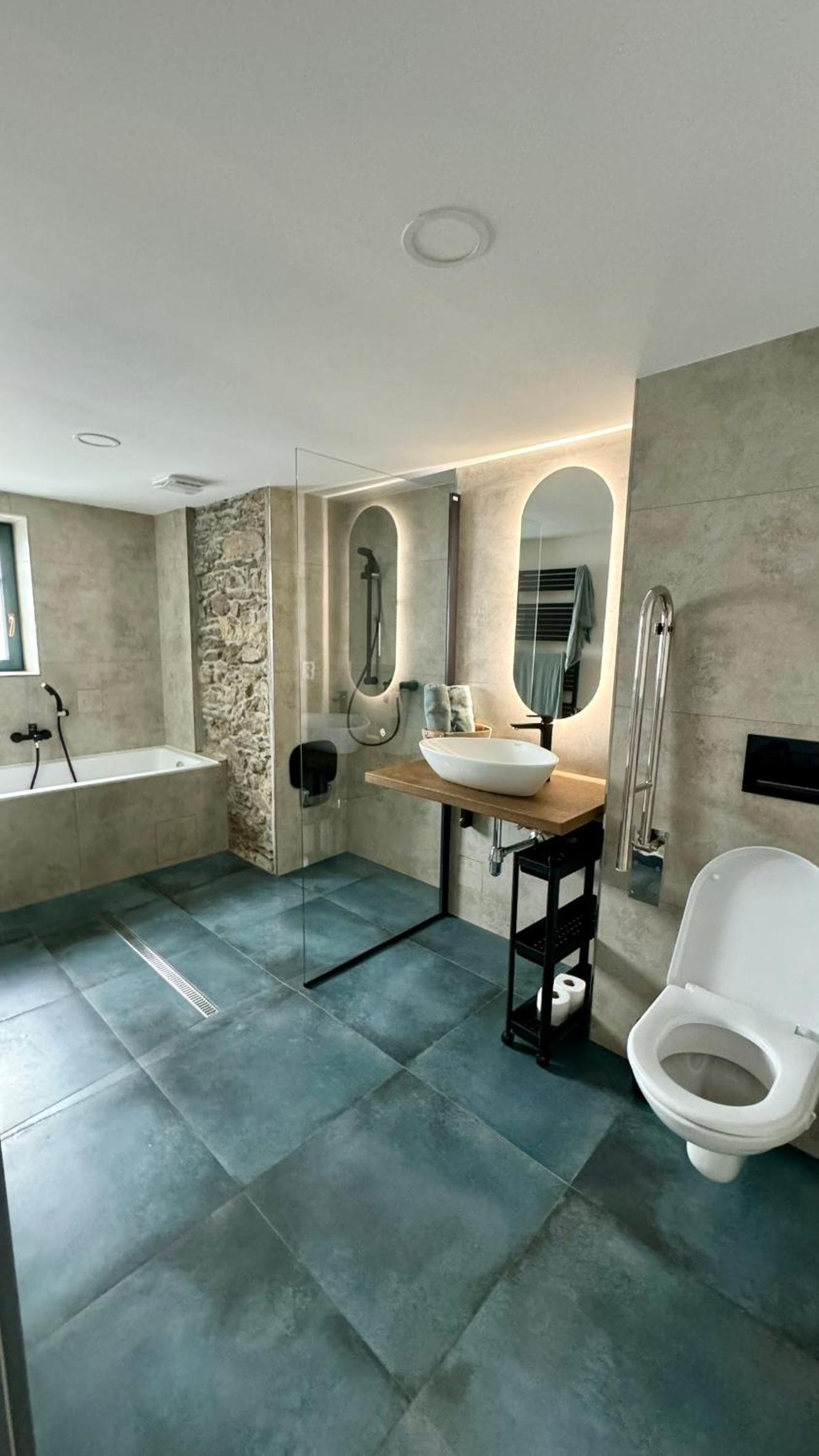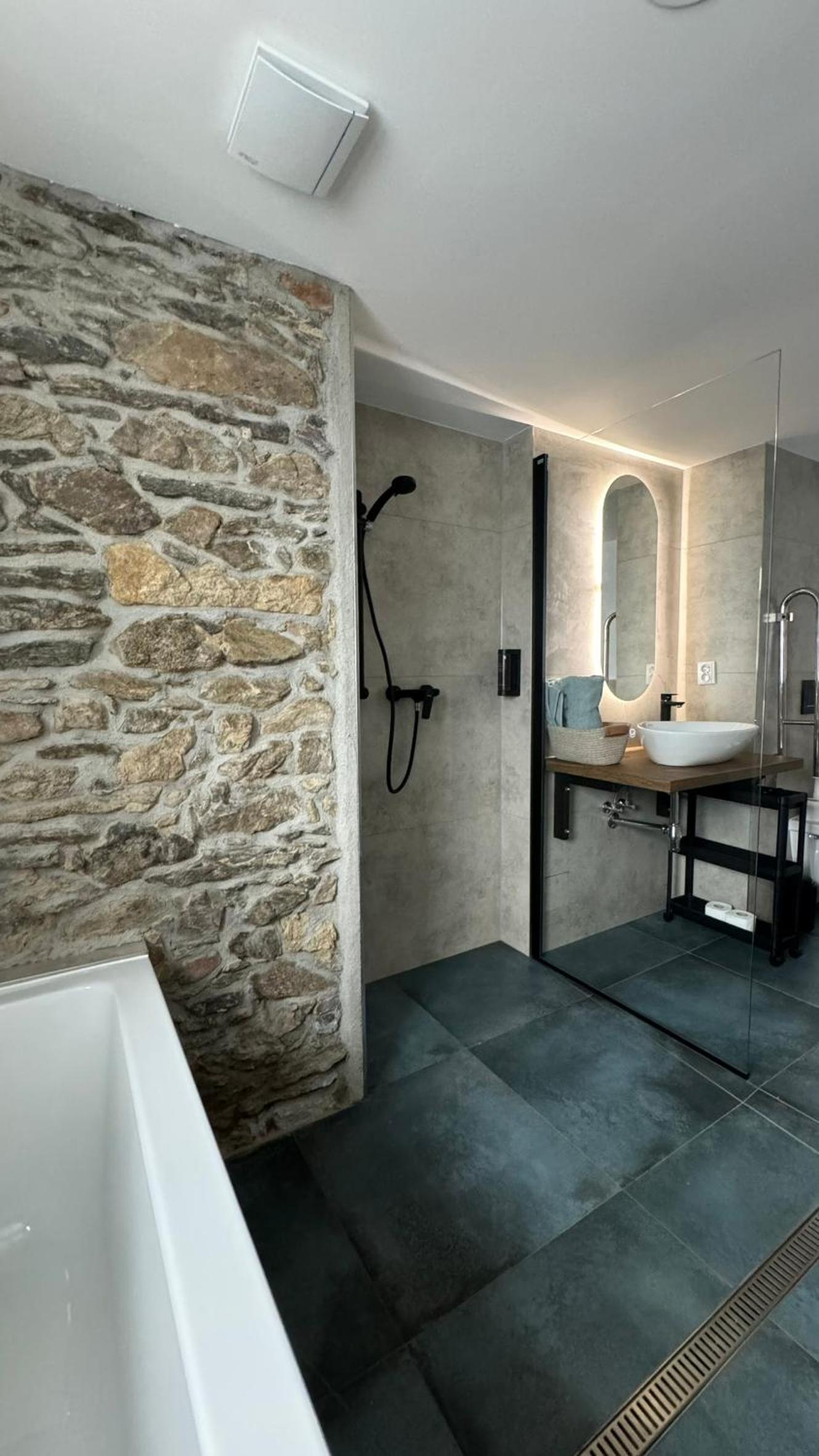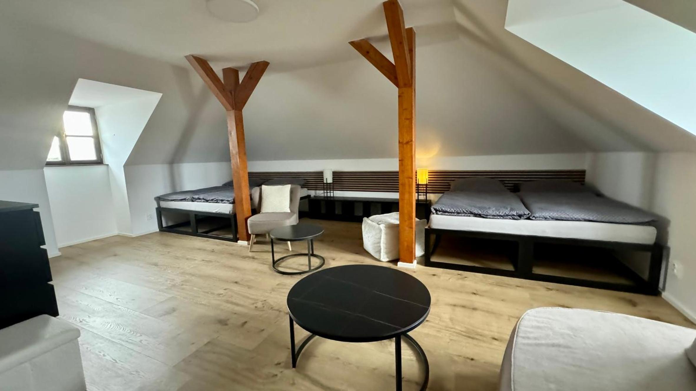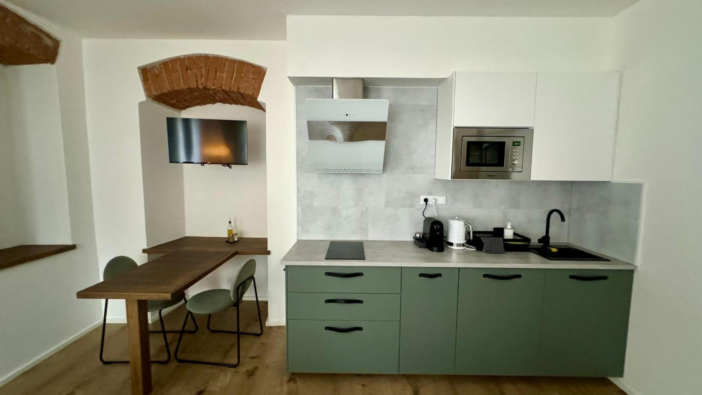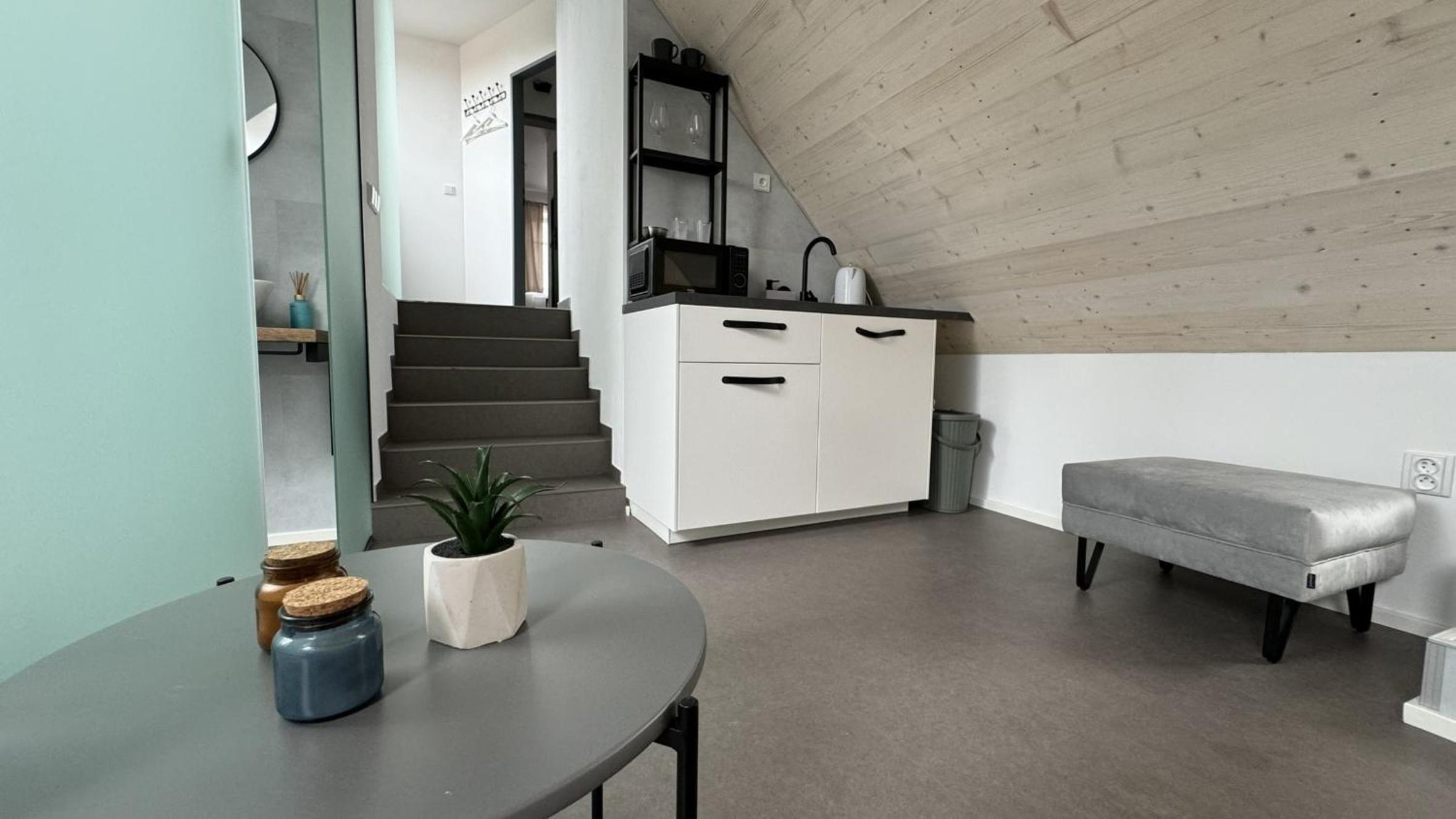 Skvělá lokalita ve velice klidné vesnici, ideální základna pro výlety, jak za kulturou - kousek Český Krumlov nebo České Budějovice, nebo do přírody. Kolem nádherné lesy a louky. Pro milovníky golfu, kousek i golfové hřisťě Český Krumlov, nádherné rybníky. Kousek vodné dílo Římov se zříceninou historického hradu Velešín. My byli na prodloužený víkend s loveckým psem, který si užil nádherné vycházky. Apartmán dobře vybavený, moderní, ale s respektem k původní architektuře. Pani na recepci velice milá.