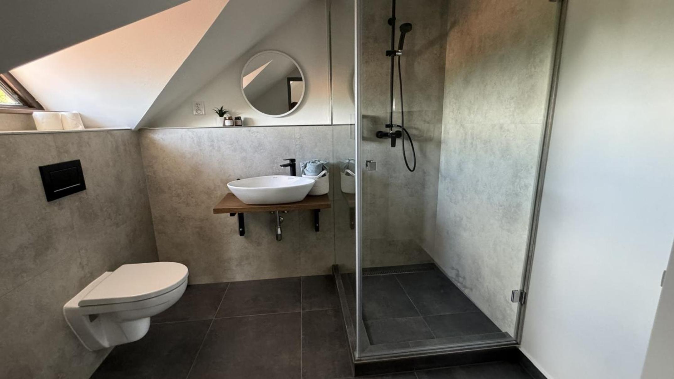 Дуже чисто . Прекрасний персонал . Користувались сауною та джакузі із задоволенням . Є кухня спільна . Гарне розташування і милому містечку , з гарним лісом та величезною річкою влтава зовсім поруч . Гарний вид з вікон .