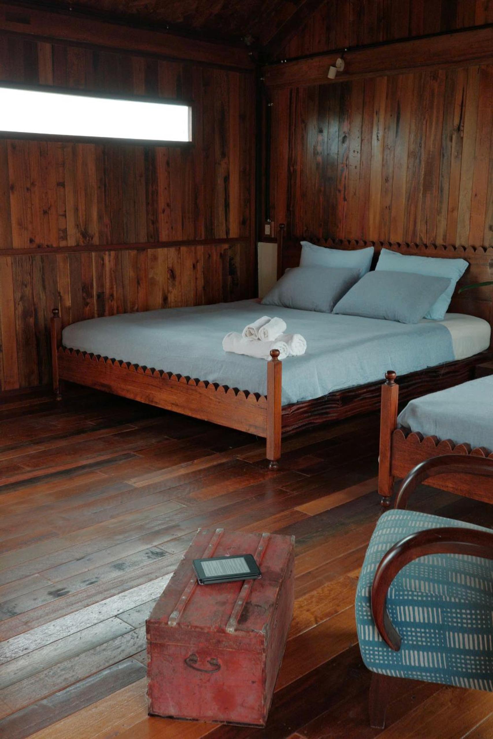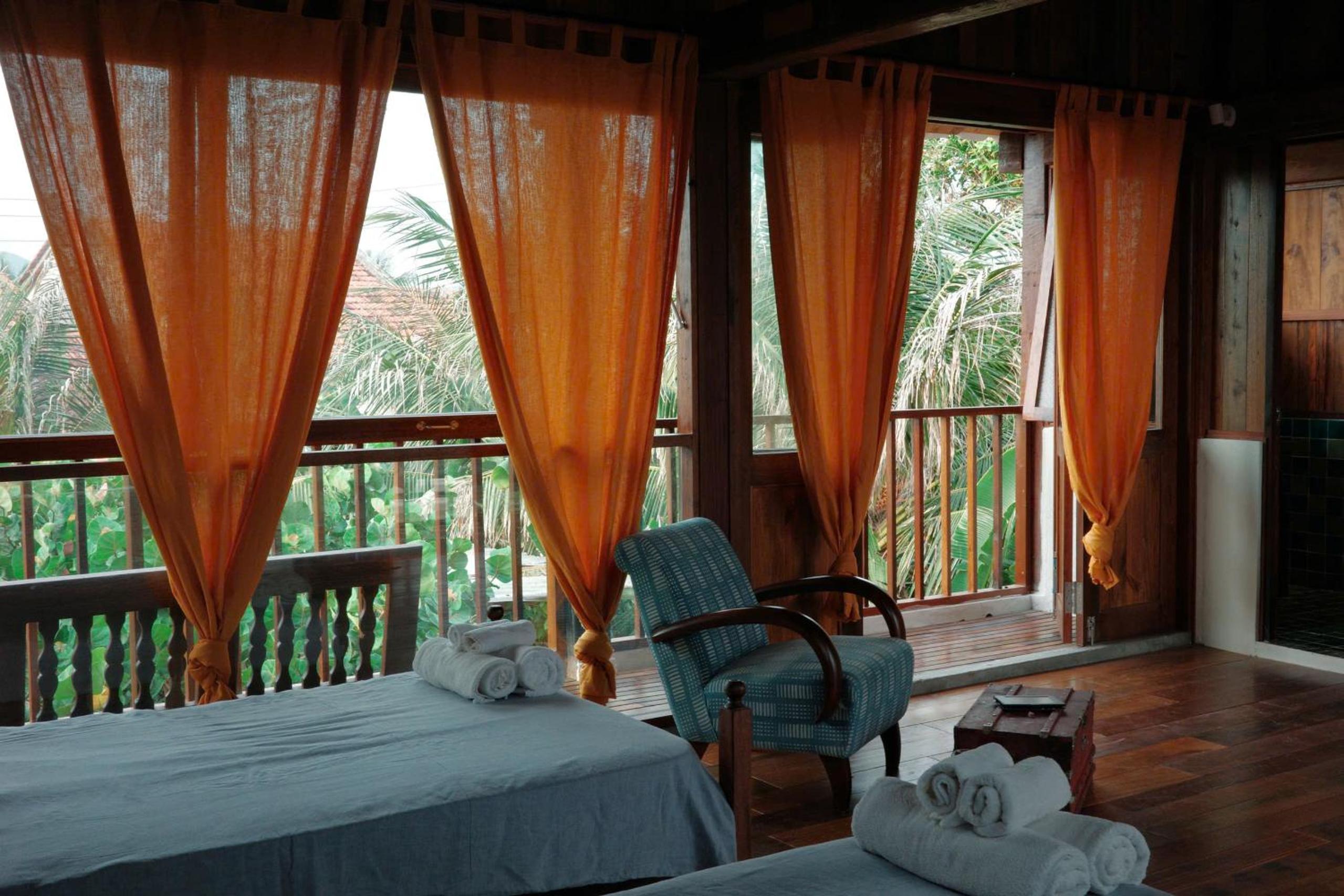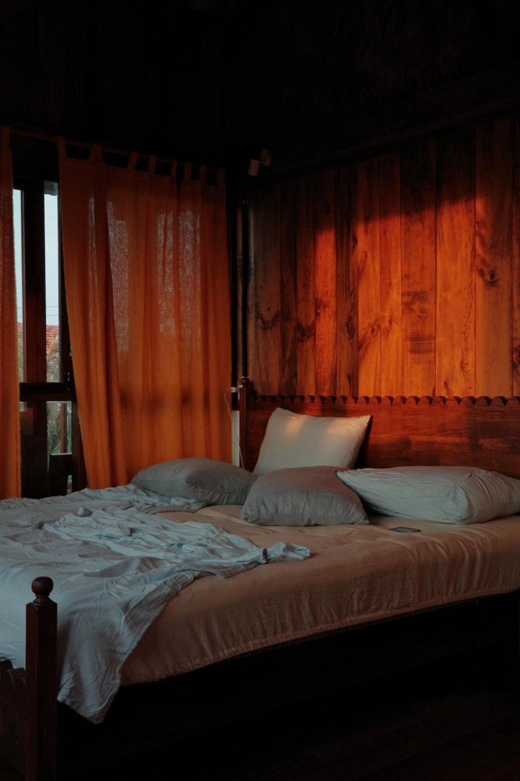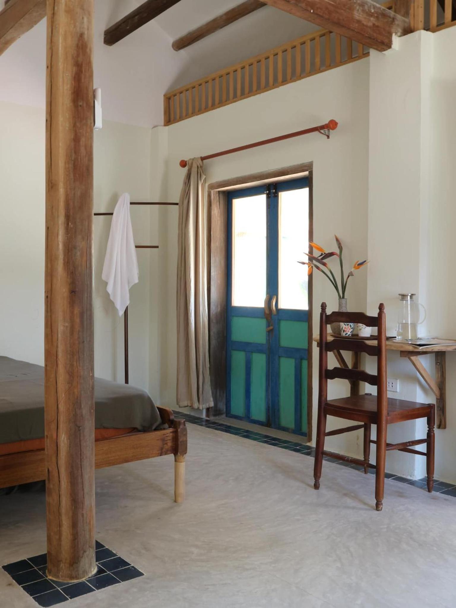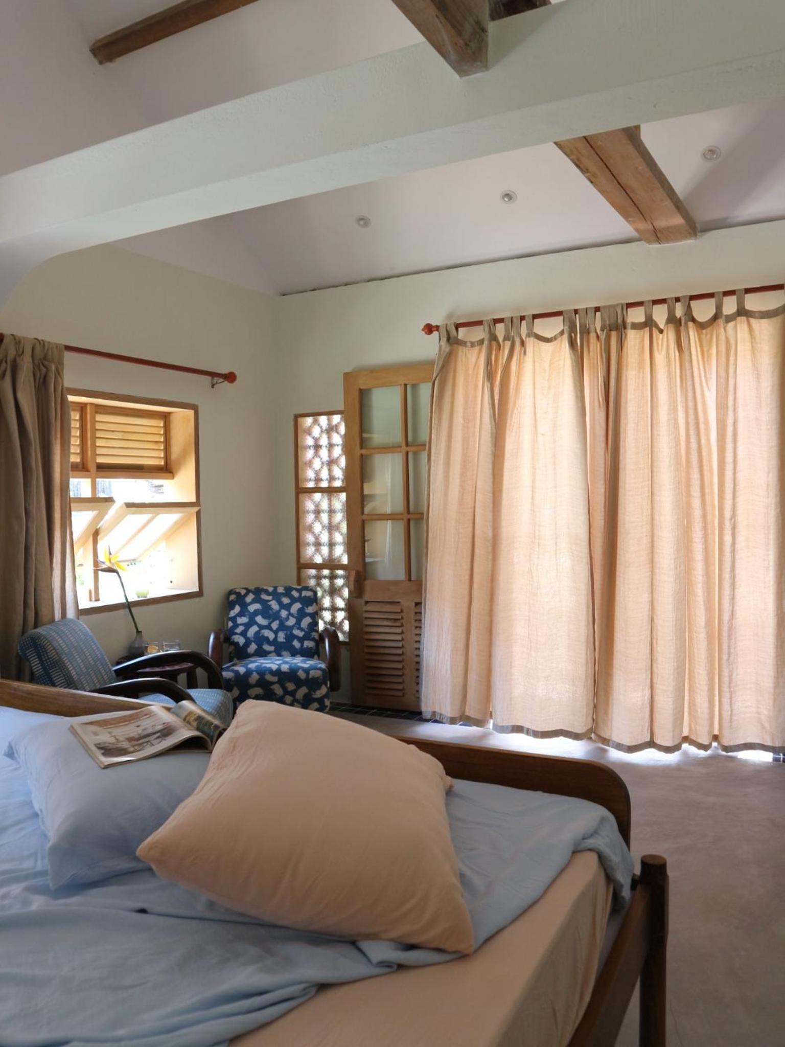 Les chambres à l’étage avec balcon sont très belles mais dotées de grandes fenêtres . Les éclairages extérieurs à proximité et l’absence de rideaux occultants rendent le sommeil difficile.