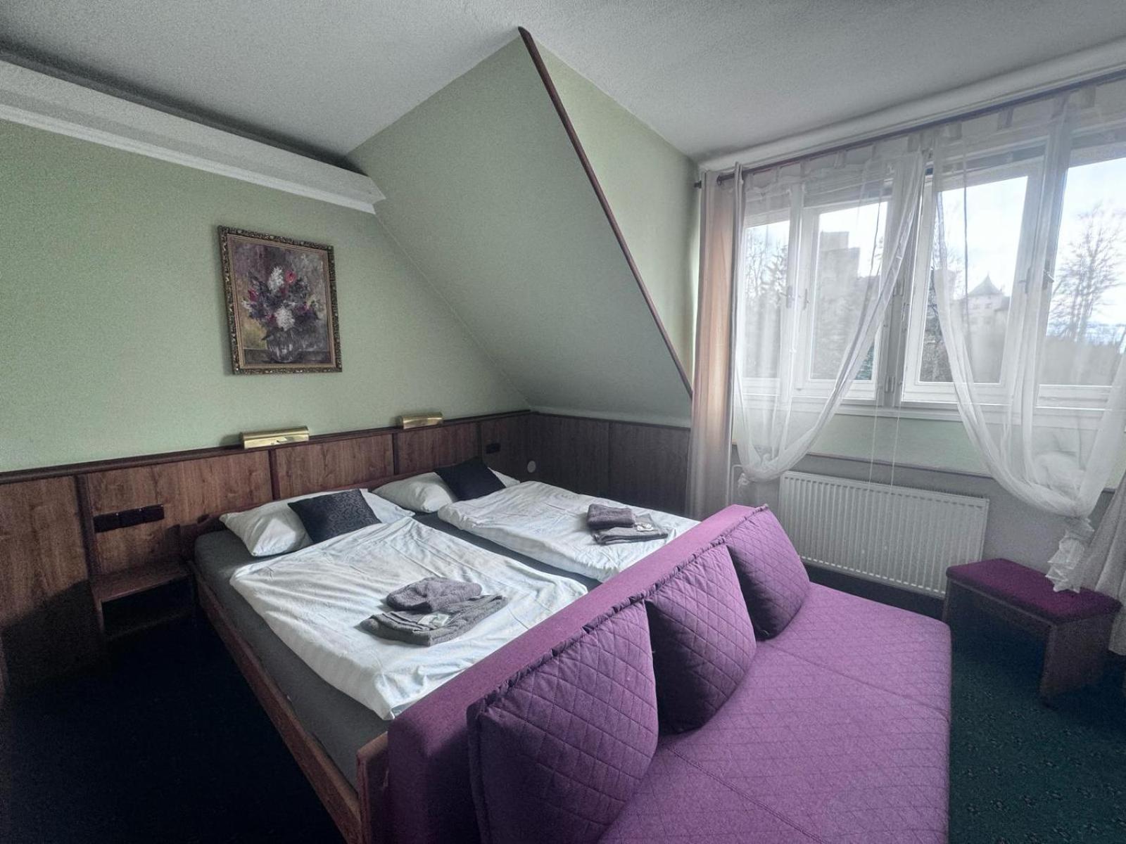 Kouzelné místo a nedělní příjezd, kdy tam nebyla ani noha a měli jsem penzion i personál jen pro sebe se povedl. A byli úžasní, co nám na očích viděli jsme měli a byli velmi vstřícní. Ubytování krásné, čisté a pohled z okna na hrad, byl dokonalý.