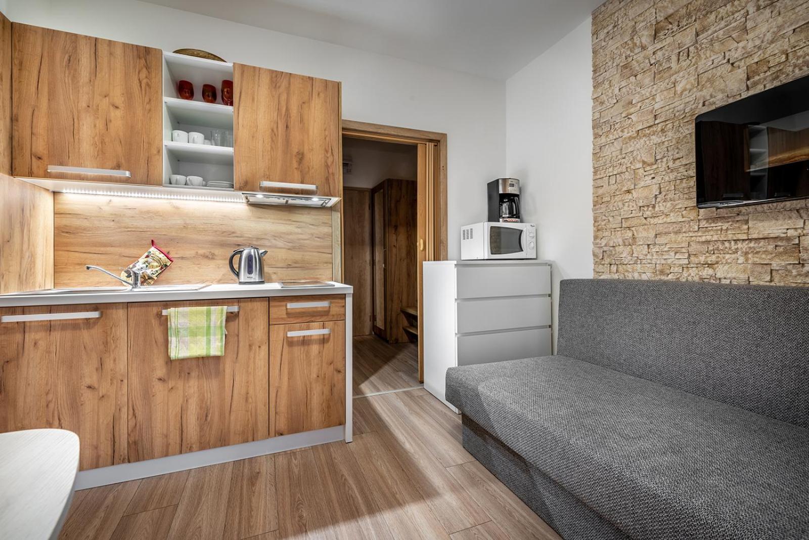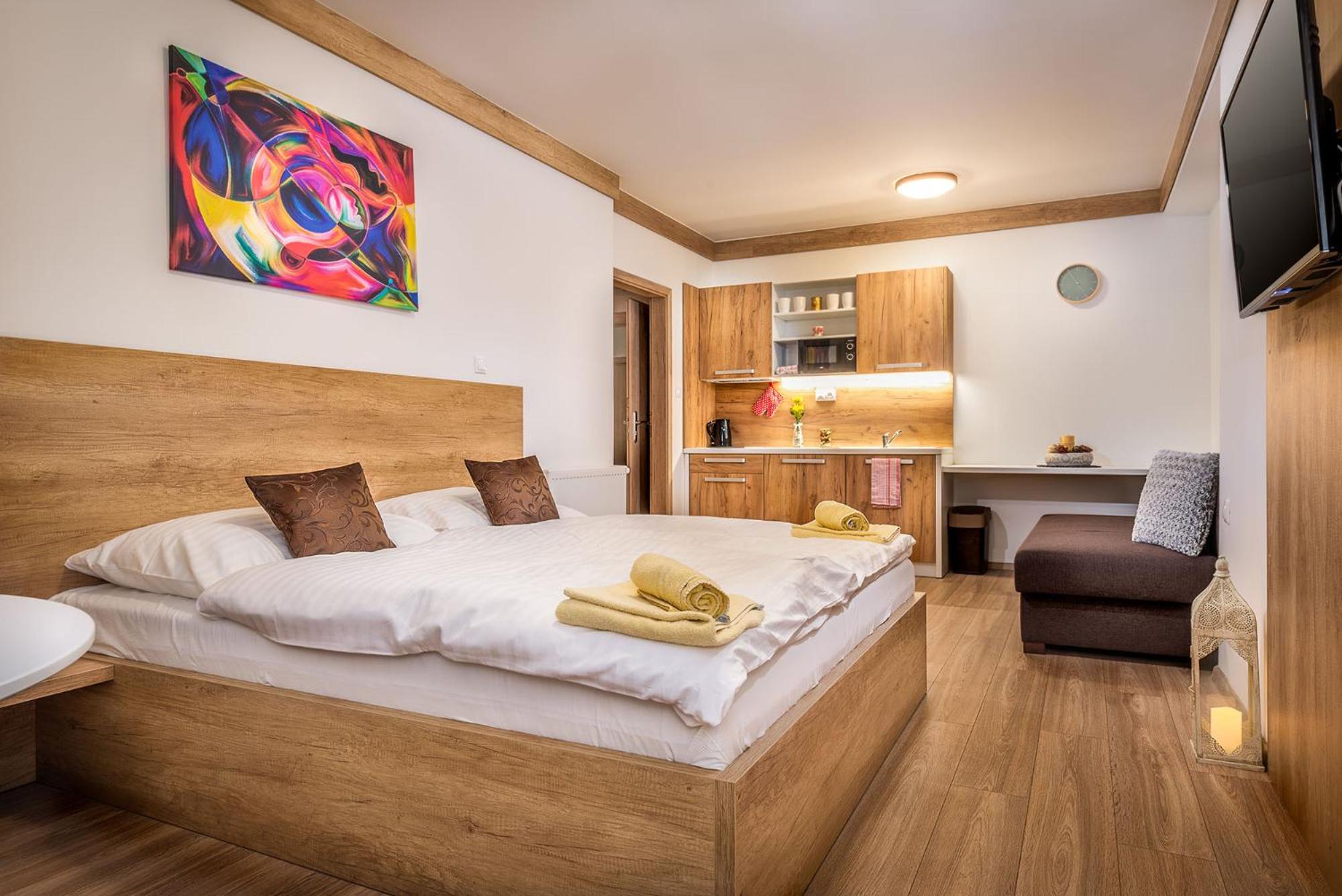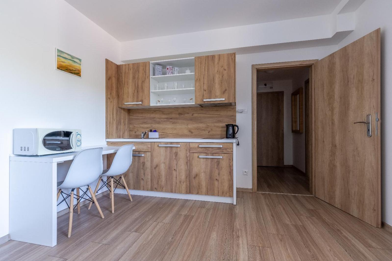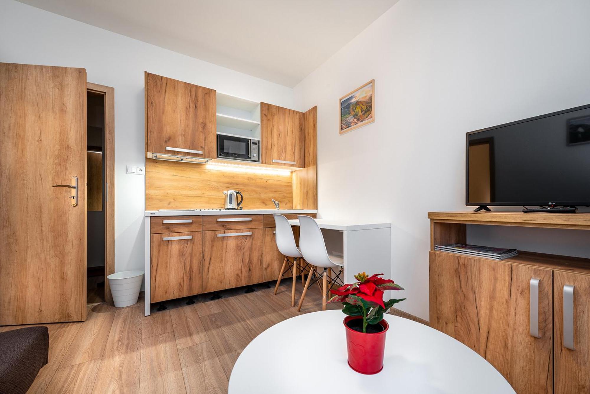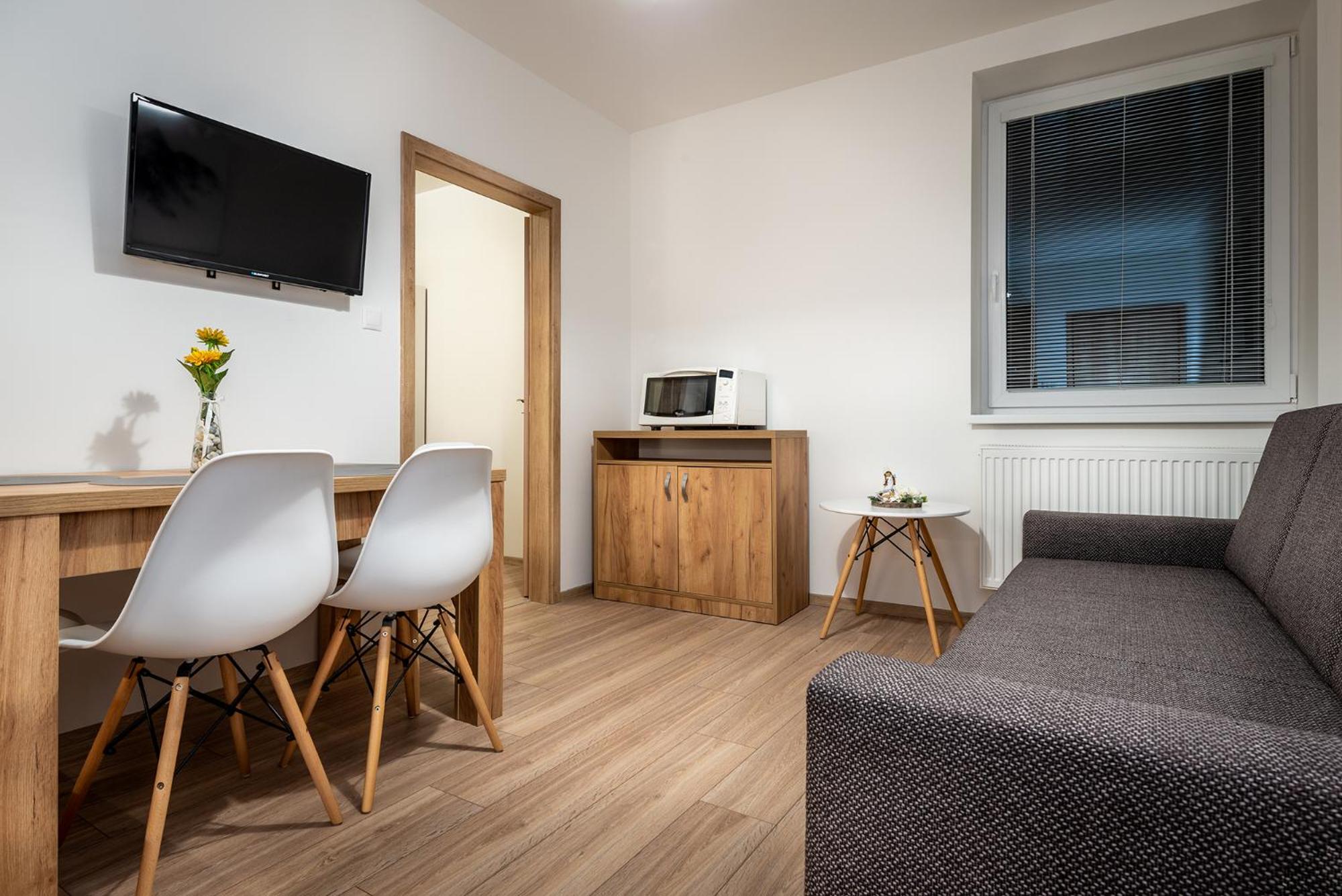 W apartamencie niczego nie brakowało. Strefa wellness bardzo przyjemna i dobrze wyposażona. Personel bez problemu zgodził się na późniejsze zameldowanie. Pokoje zastaliśmy bardzo czyste i pachnące. Jednak największą zaletą naszego pobytu była Pani właścicielka. Pomagała nam jak tylko mogła. Mieliśmy pewne problemy z autem i stanęła na wysokości zadania, aby tylko nam pomóc. Zdecydowanie dobra osoba na dobrym miejscu.