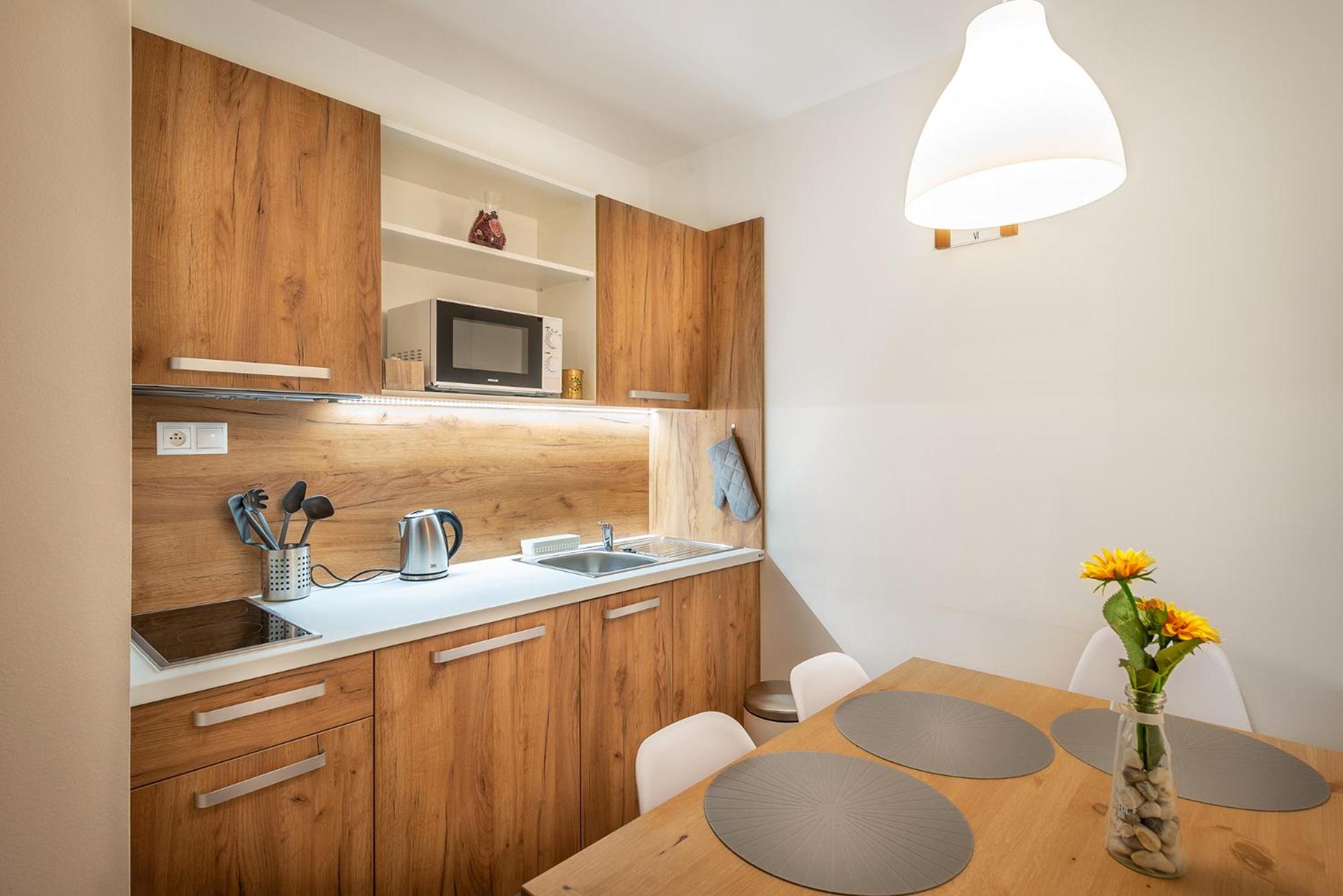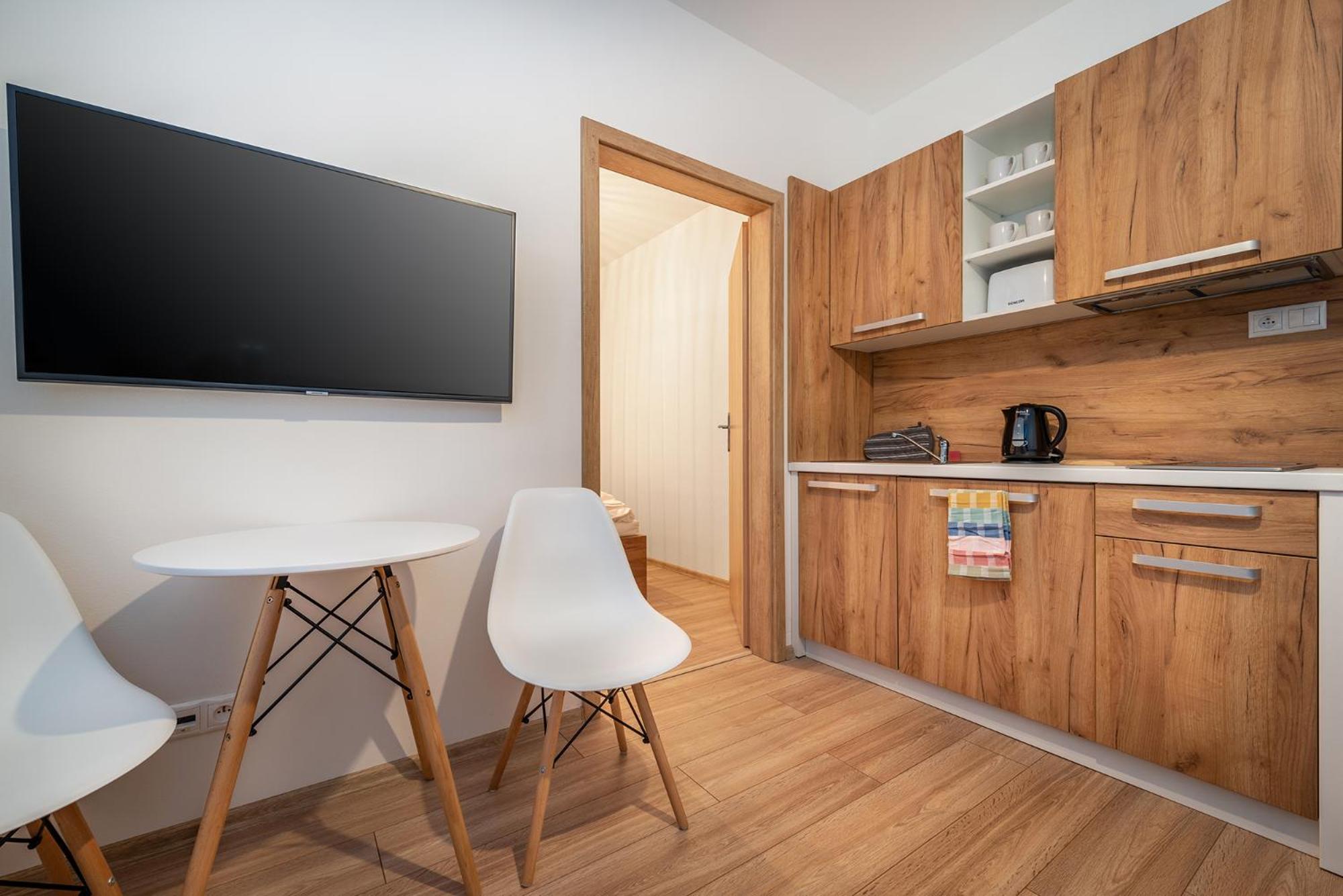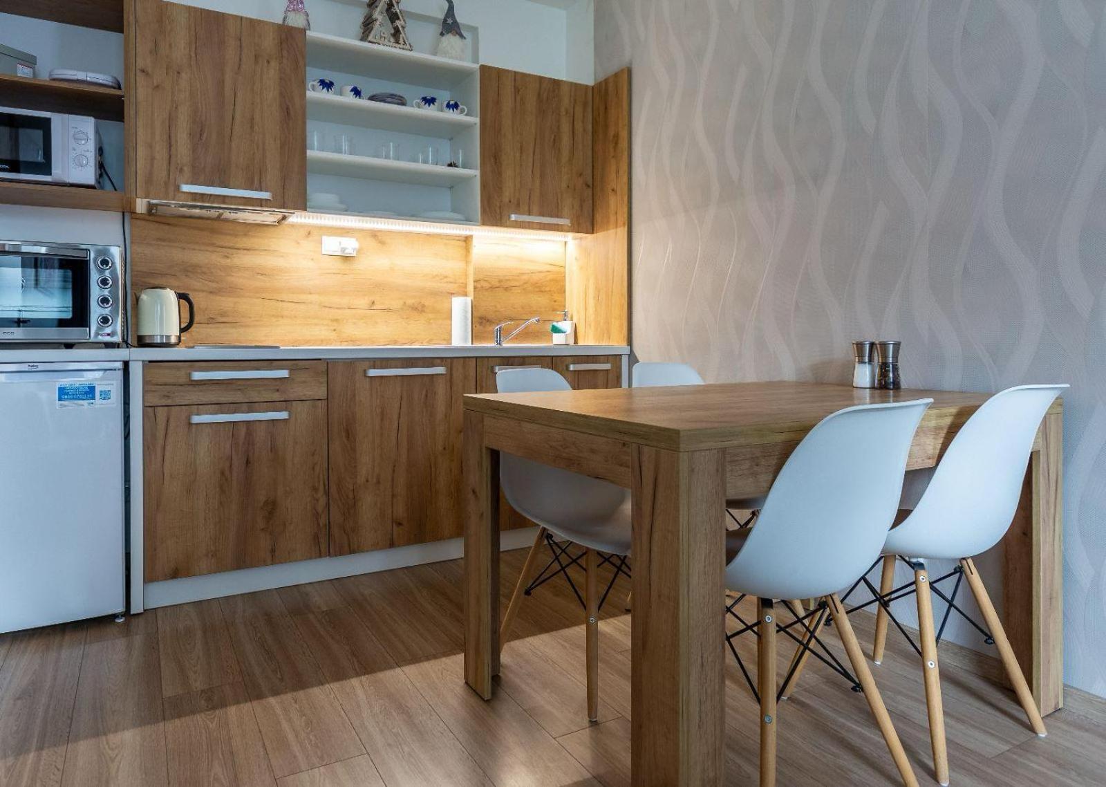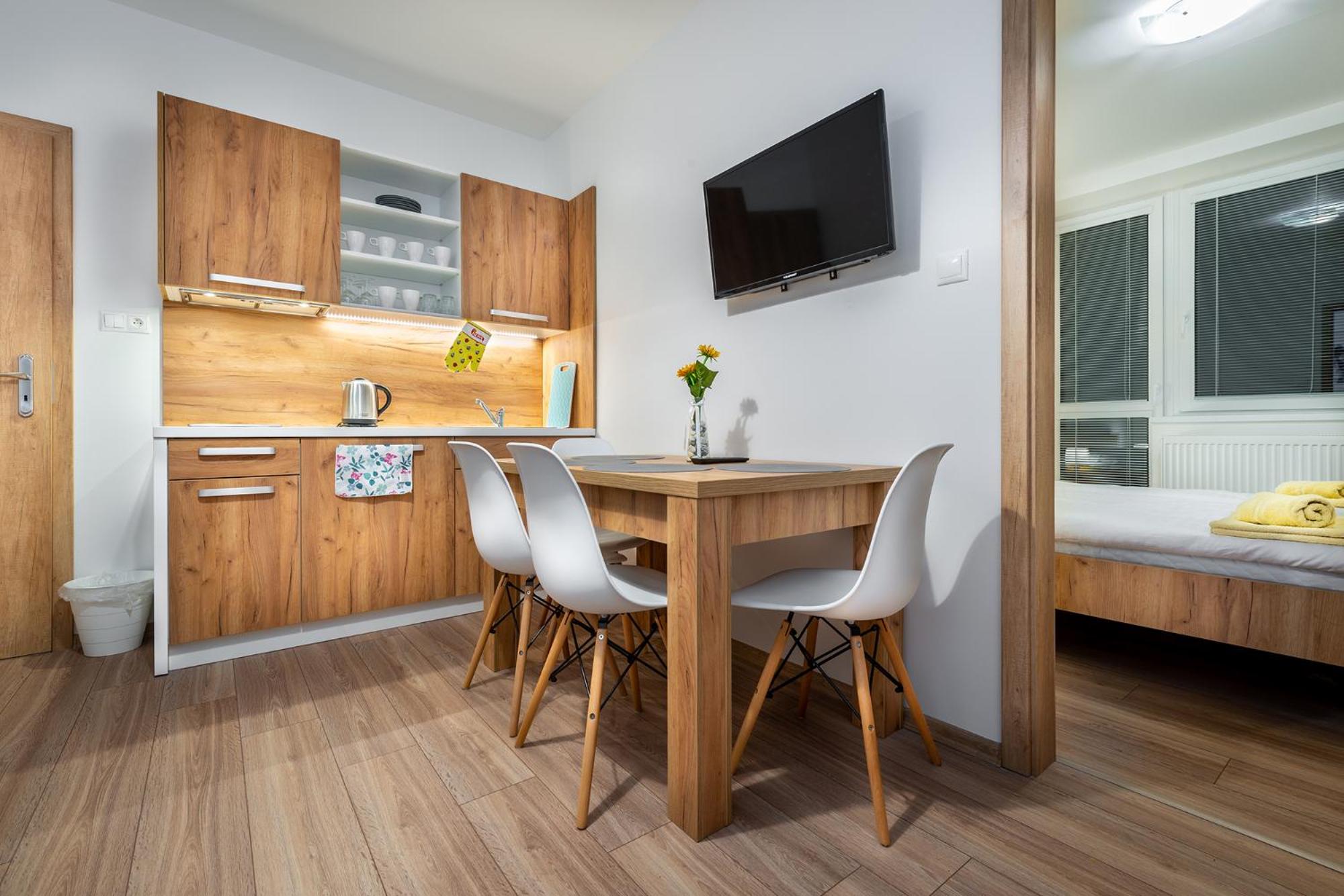 W apartamencie niczego nie brakowało. Strefa wellness bardzo przyjemna i dobrze wyposażona. Personel bez problemu zgodził się na późniejsze zameldowanie. Pokoje zastaliśmy bardzo czyste i pachnące. Jednak największą zaletą naszego pobytu była Pani właścicielka. Pomagała nam jak tylko mogła. Mieliśmy pewne problemy z autem i stanęła na wysokości zadania, aby tylko nam pomóc. Zdecydowanie dobra osoba na dobrym miejscu.