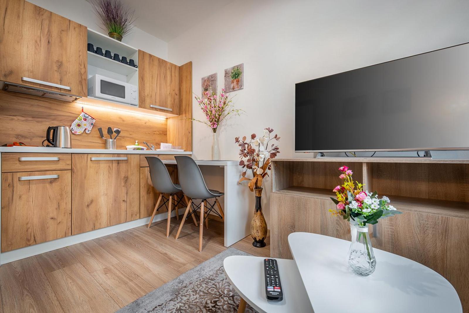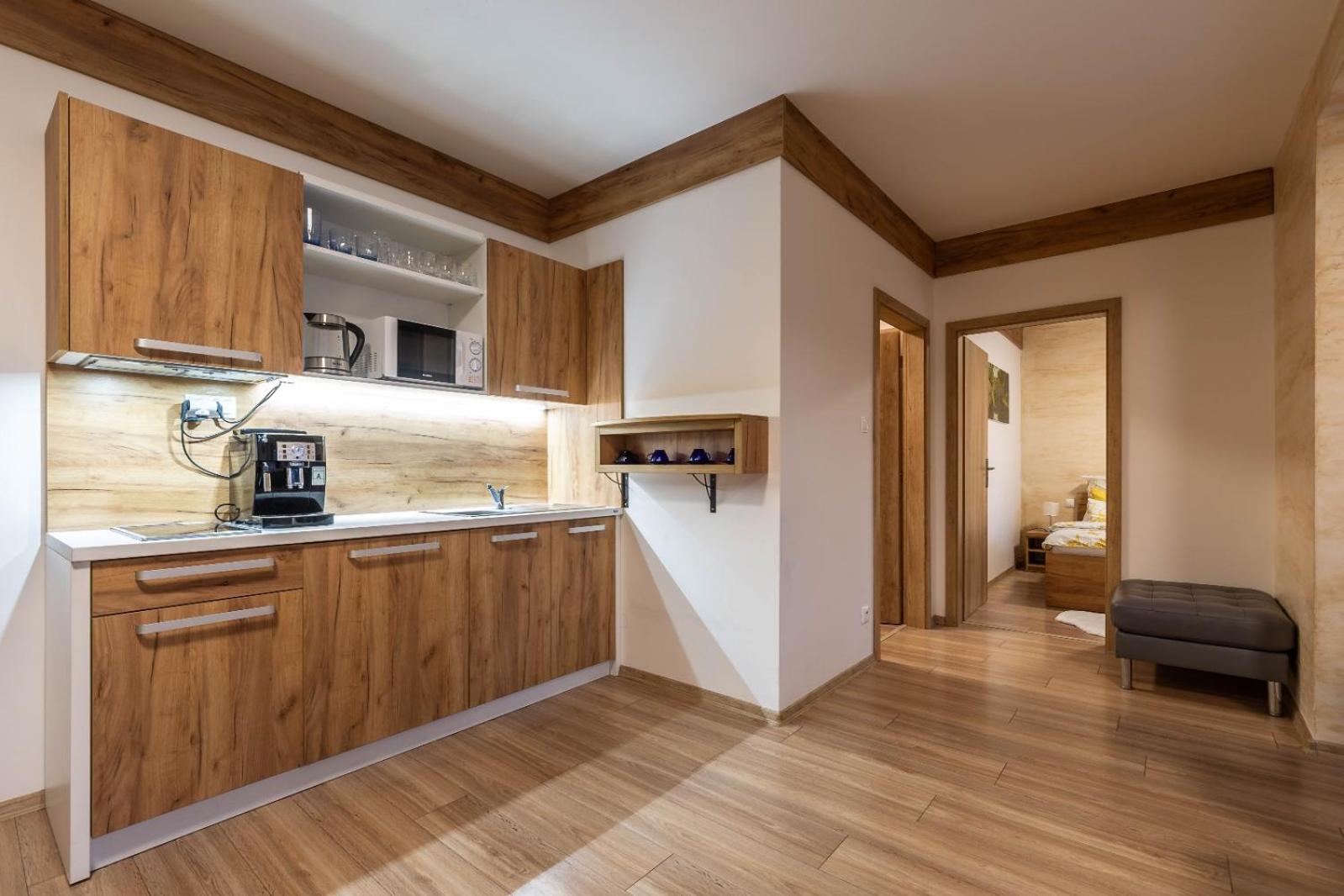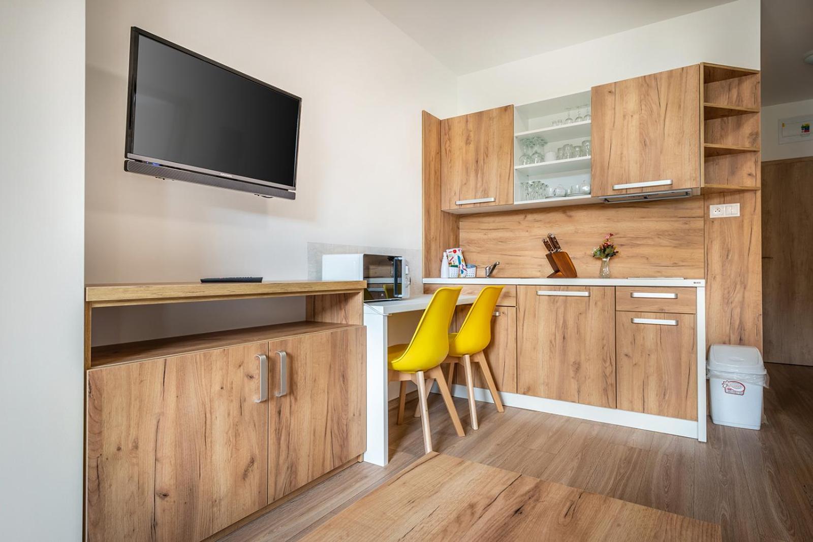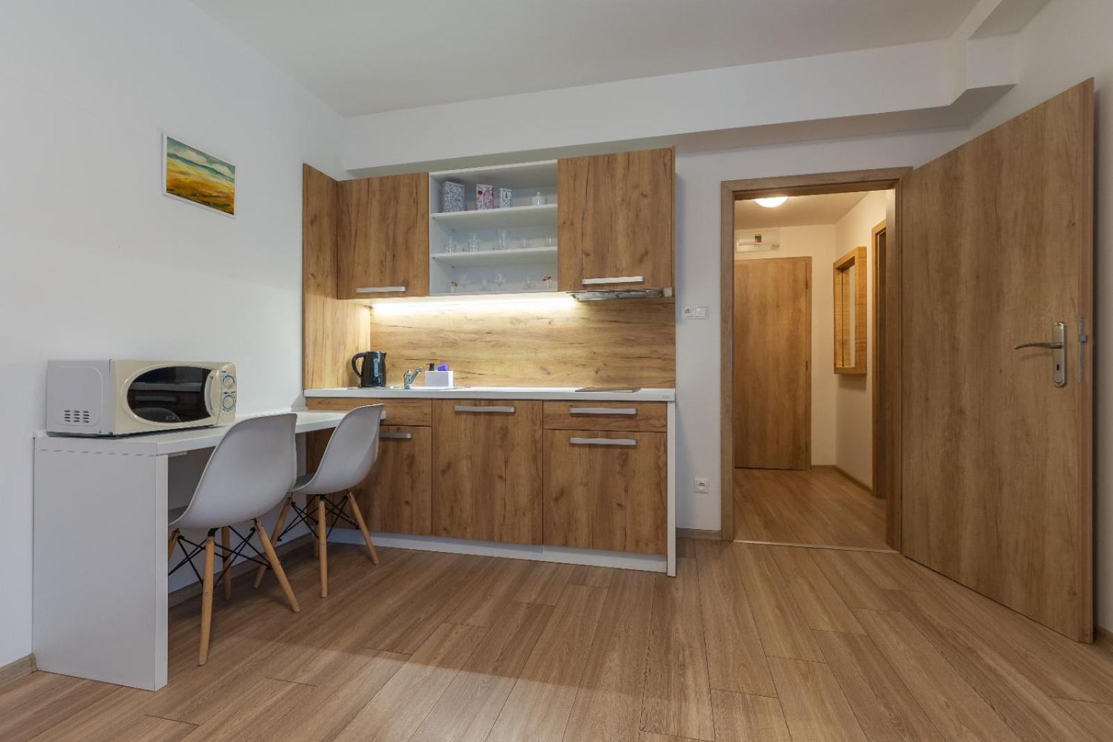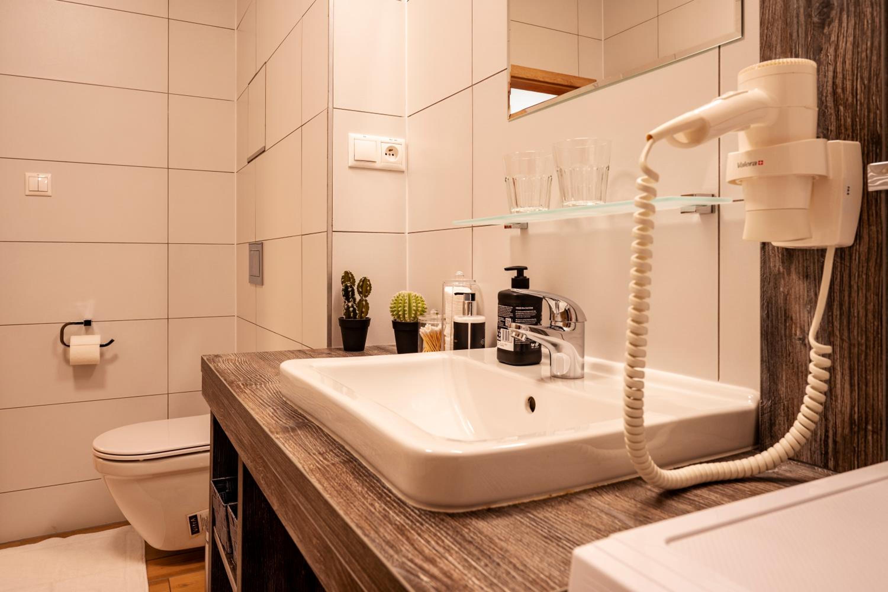 W apartamencie niczego nie brakowało. Strefa wellness bardzo przyjemna i dobrze wyposażona. Personel bez problemu zgodził się na późniejsze zameldowanie. Pokoje zastaliśmy bardzo czyste i pachnące. Jednak największą zaletą naszego pobytu była Pani właścicielka. Pomagała nam jak tylko mogła. Mieliśmy pewne problemy z autem i stanęła na wysokości zadania, aby tylko nam pomóc. Zdecydowanie dobra osoba na dobrym miejscu.