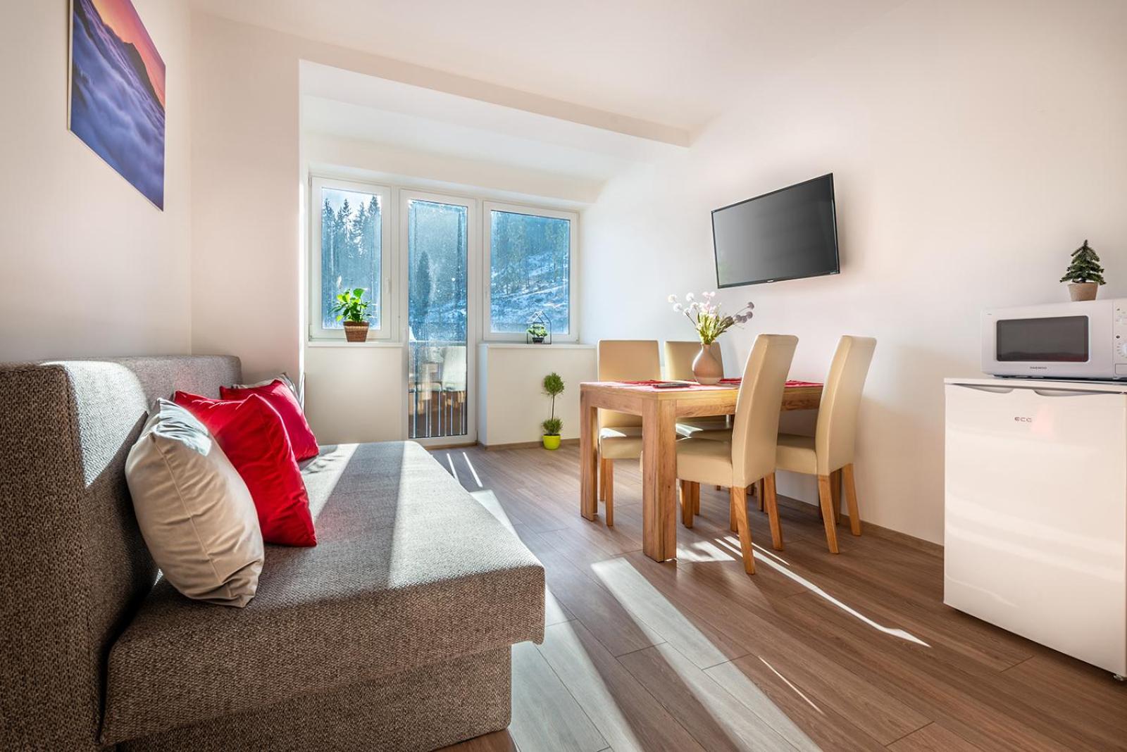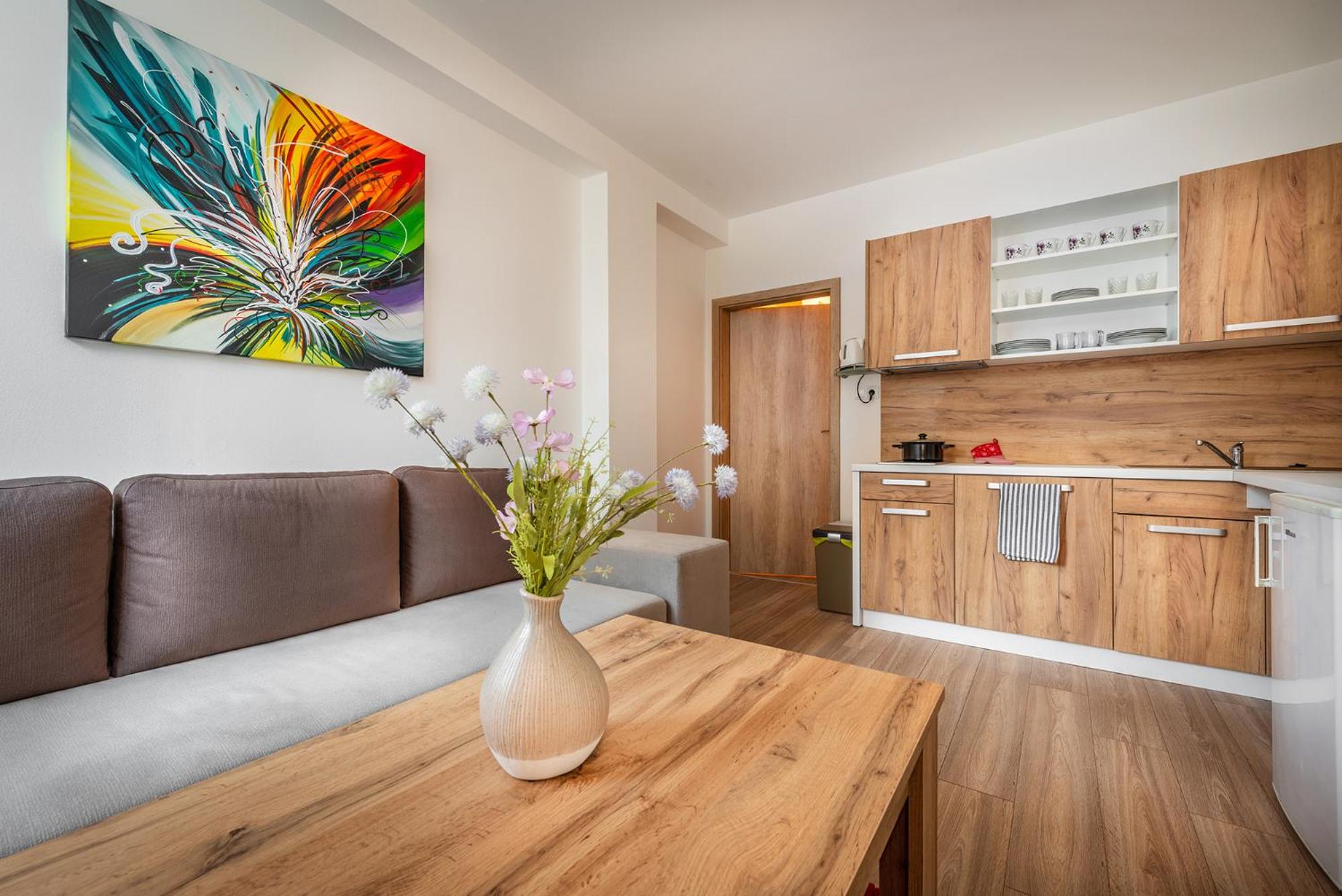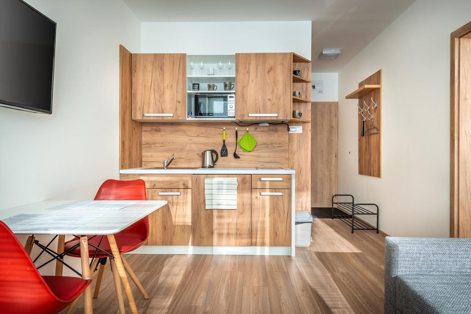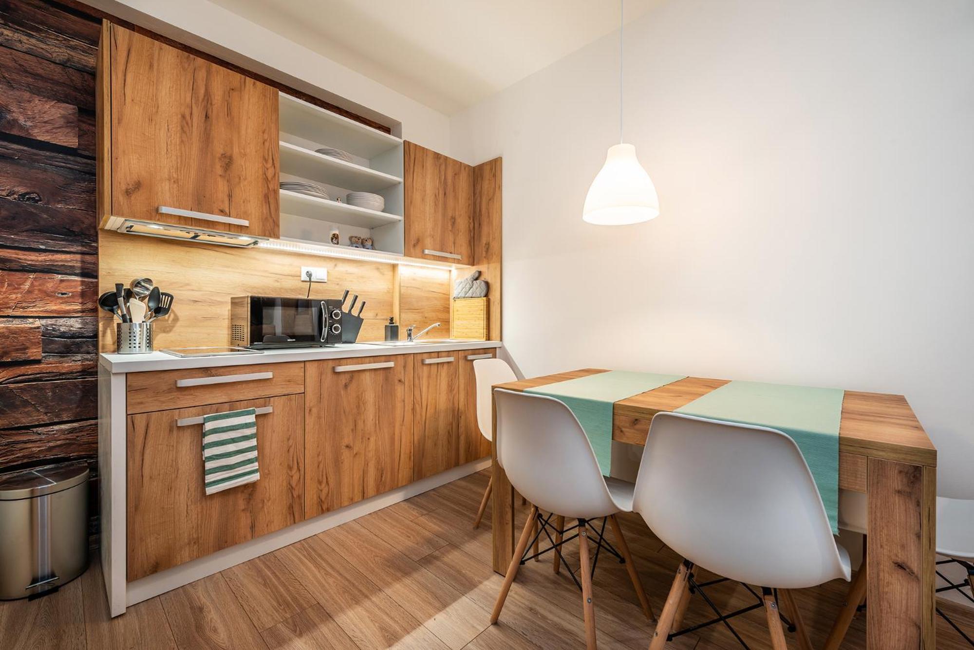 W apartamencie niczego nie brakowało. Strefa wellness bardzo przyjemna i dobrze wyposażona. Personel bez problemu zgodził się na późniejsze zameldowanie. Pokoje zastaliśmy bardzo czyste i pachnące. Jednak największą zaletą naszego pobytu była Pani właścicielka. Pomagała nam jak tylko mogła. Mieliśmy pewne problemy z autem i stanęła na wysokości zadania, aby tylko nam pomóc. Zdecydowanie dobra osoba na dobrym miejscu.