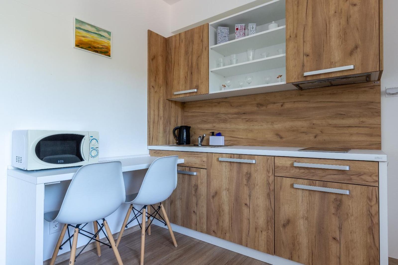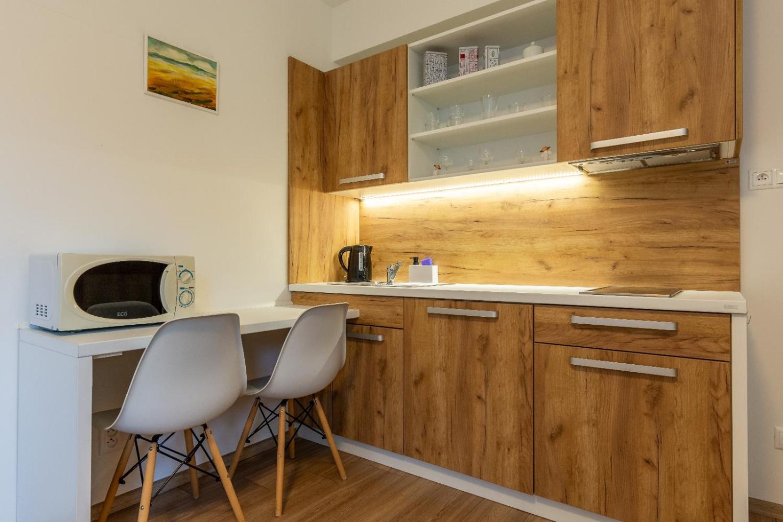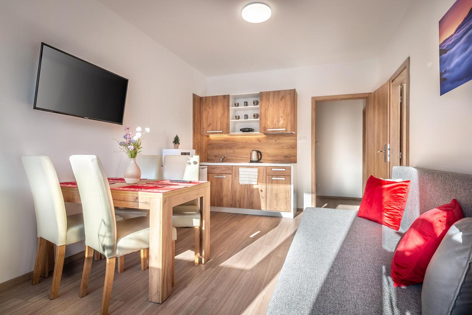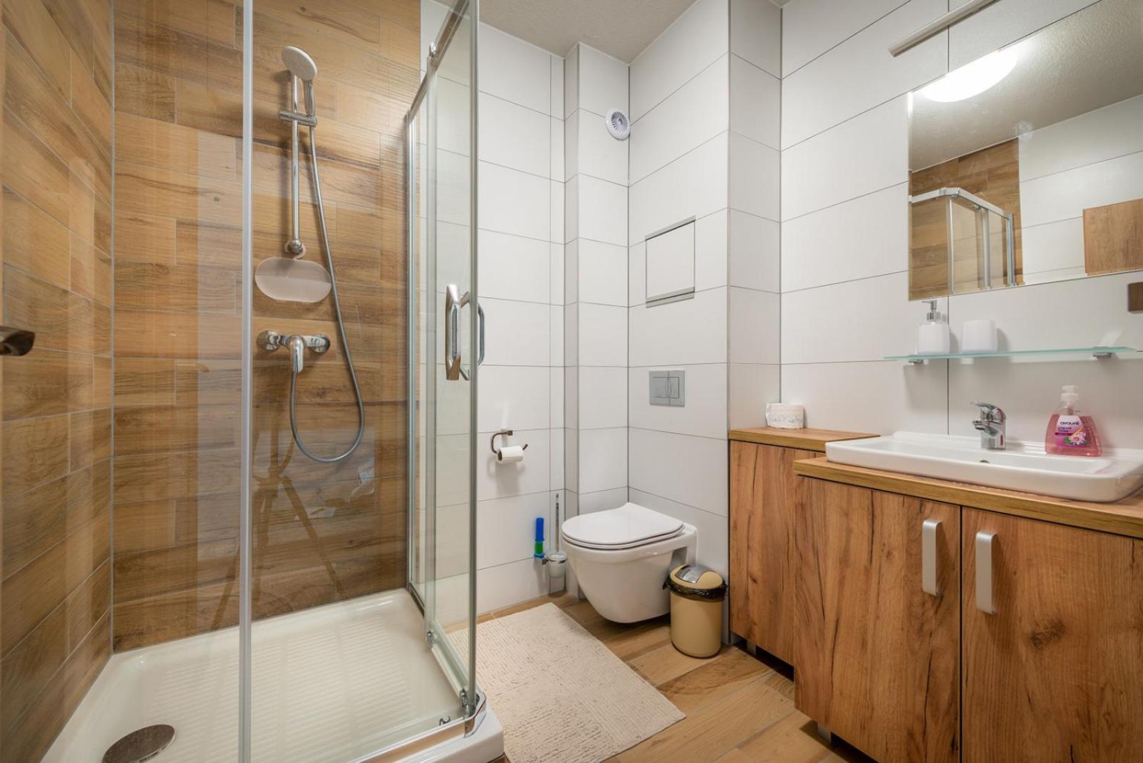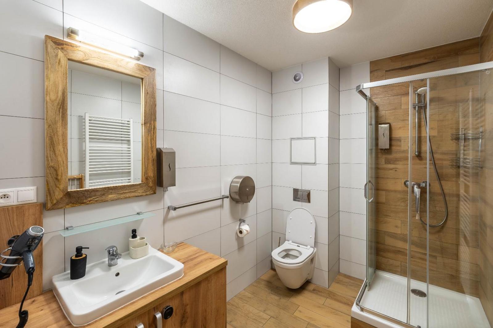 W apartamencie niczego nie brakowało. Strefa wellness bardzo przyjemna i dobrze wyposażona. Personel bez problemu zgodził się na późniejsze zameldowanie. Pokoje zastaliśmy bardzo czyste i pachnące. Jednak największą zaletą naszego pobytu była Pani właścicielka. Pomagała nam jak tylko mogła. Mieliśmy pewne problemy z autem i stanęła na wysokości zadania, aby tylko nam pomóc. Zdecydowanie dobra osoba na dobrym miejscu.