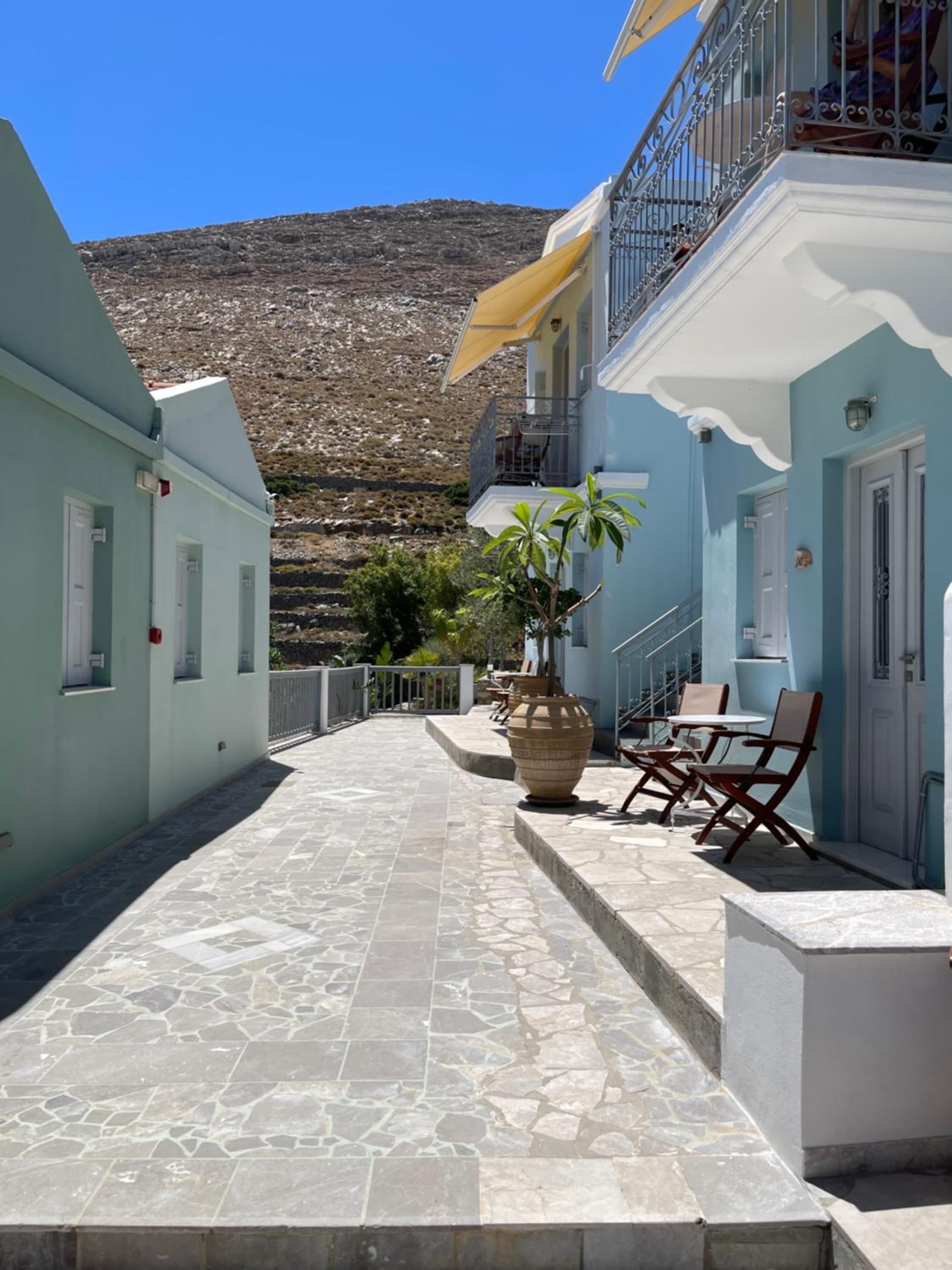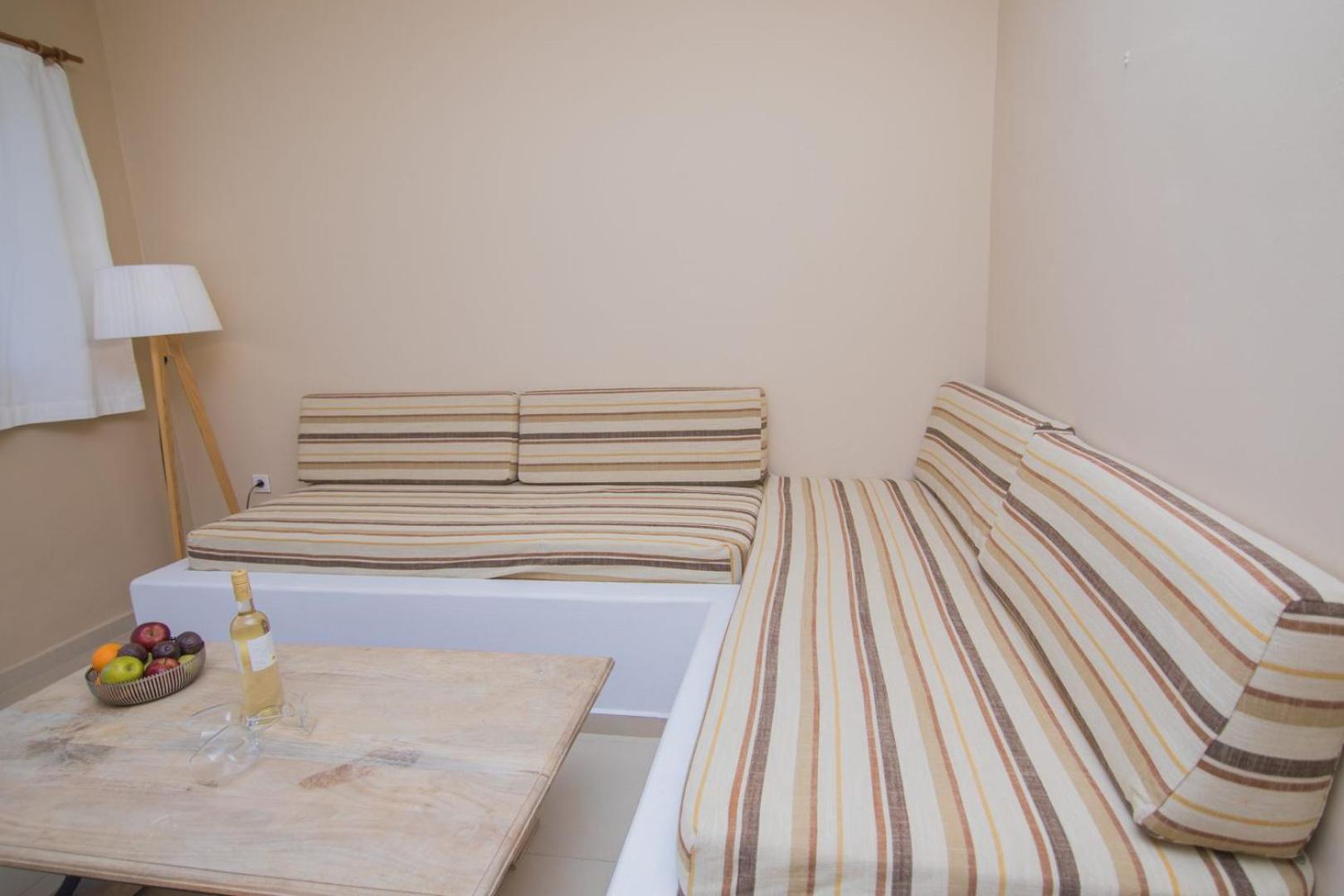 Gli appartamenti sono a circa 2,5 km dal centro il che garantisce una piacevole tranquillità ma implica che senza un mezzo proprio di trasporto diventi scomodo, anche se esiste un servizio transfer a pagamento ad orari fissi. Consiglio di noleggiare uno scooter che in ogni caso aiuta a spostarsi nell'isola. Colazione varia e buona. Disponibili e gentili tutti i ragazzi dello staff.