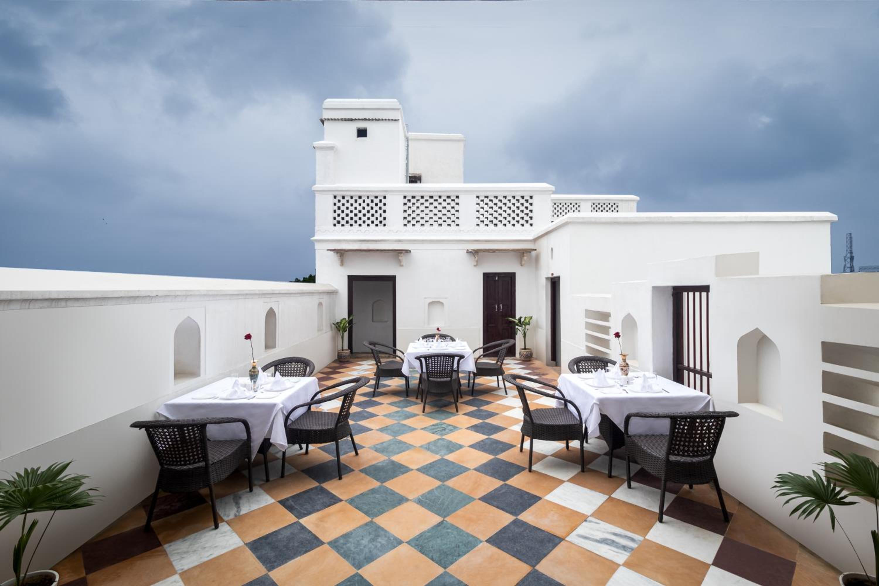 Luxurious Amenities: Enjoy an outdoor swimming pool, fitness centre, and terrace during your stay at WelcomHeritage Badi Kothi.
