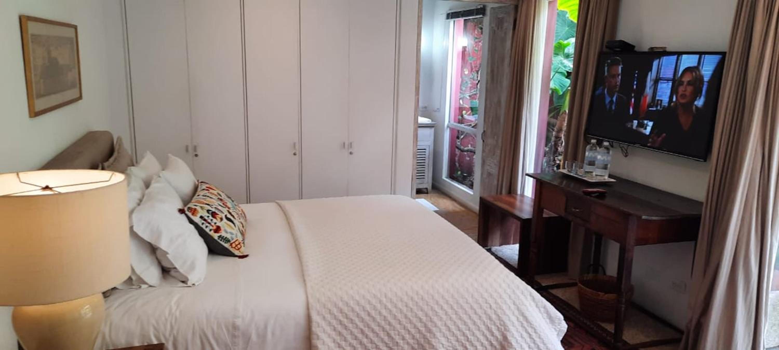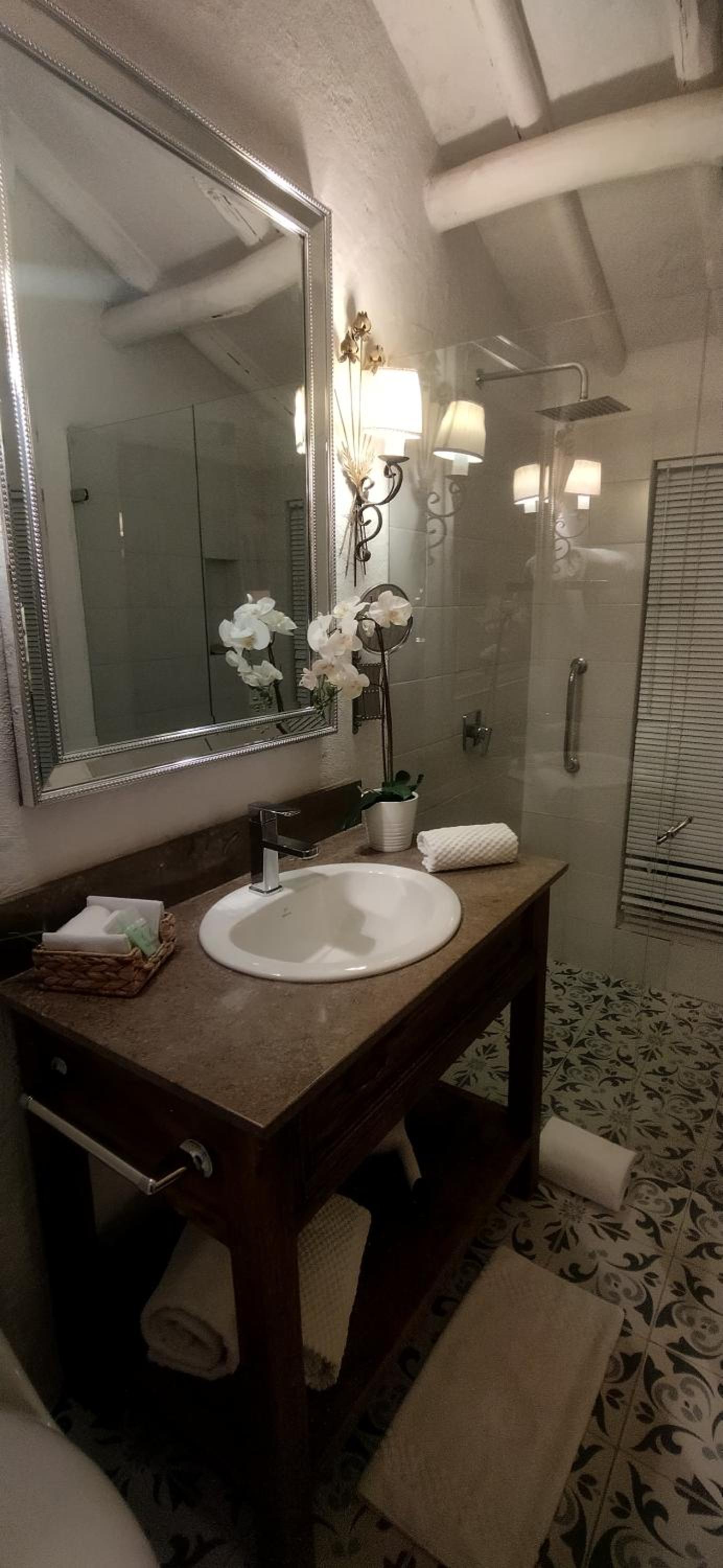Indulge in our well-appointed units featuring a flat-screen TV, safety deposit box, and luxurious bathroom amenities. Enjoy the comfort of a private patio with outdoor furniture, perfect for unwinding after a day of exploring Bogotá.