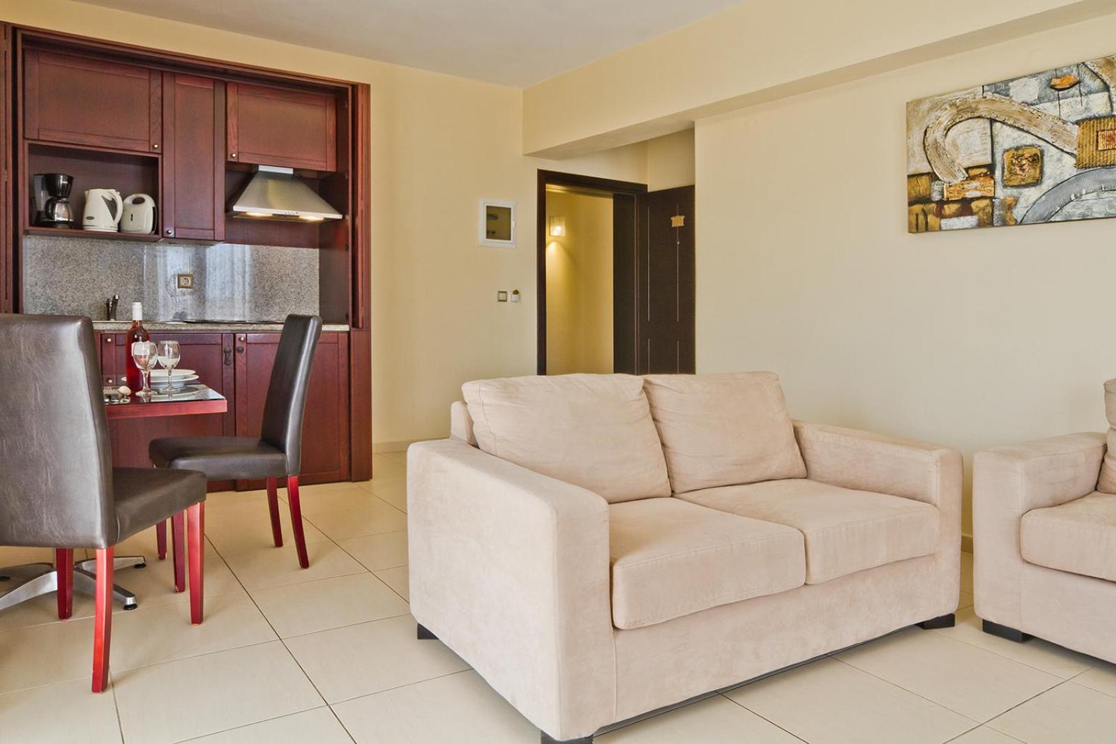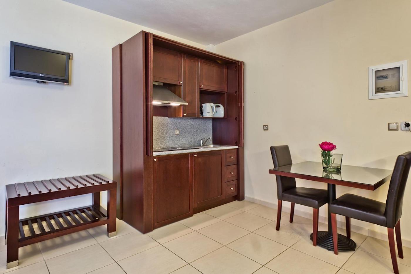 The studios and apartments are tastefully decorated with modern furnishings, equipped with a kitchenette, LCD TV, and other essential amenities for a comfortable stay.