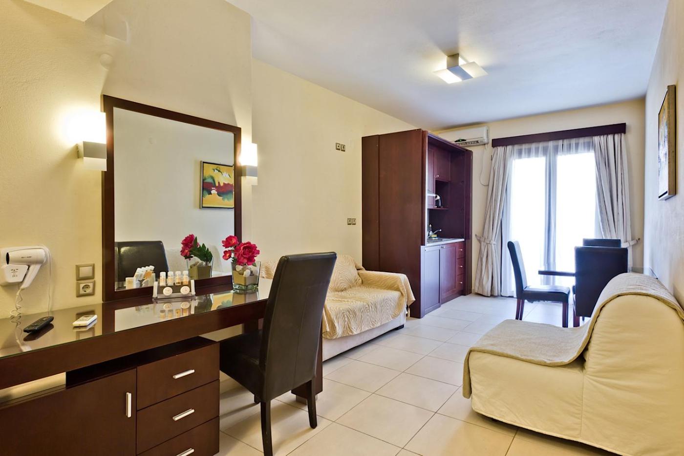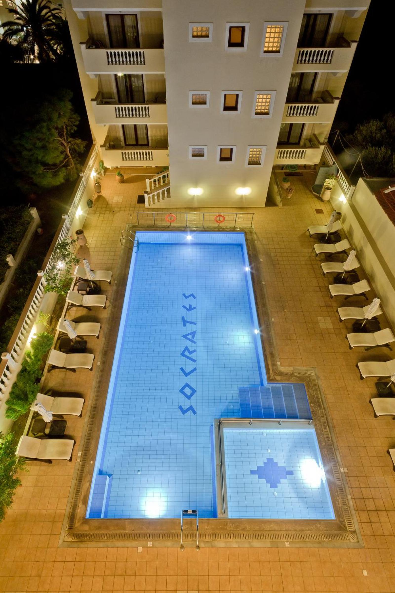 Socrates Hotel Apartments are very nice apartments , big size room , comfy beds, they have a good swimming pool for adults and your little ones to.