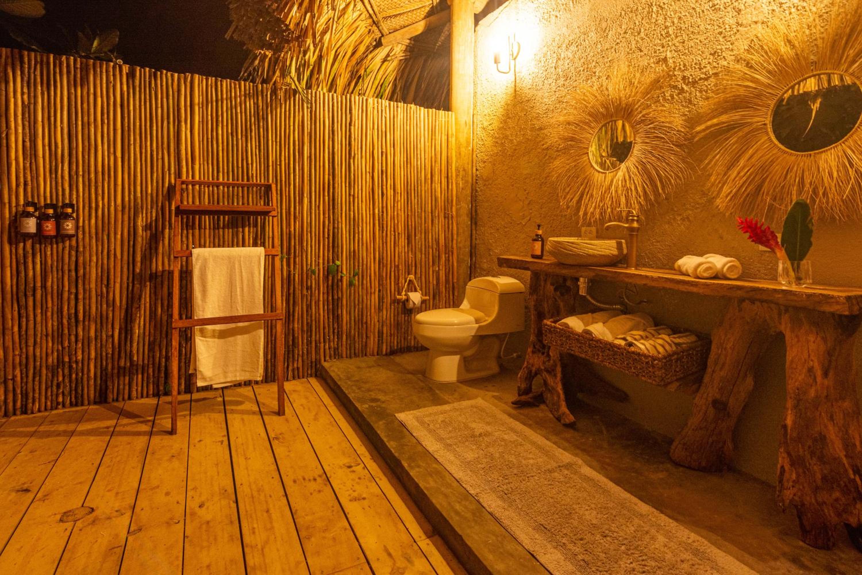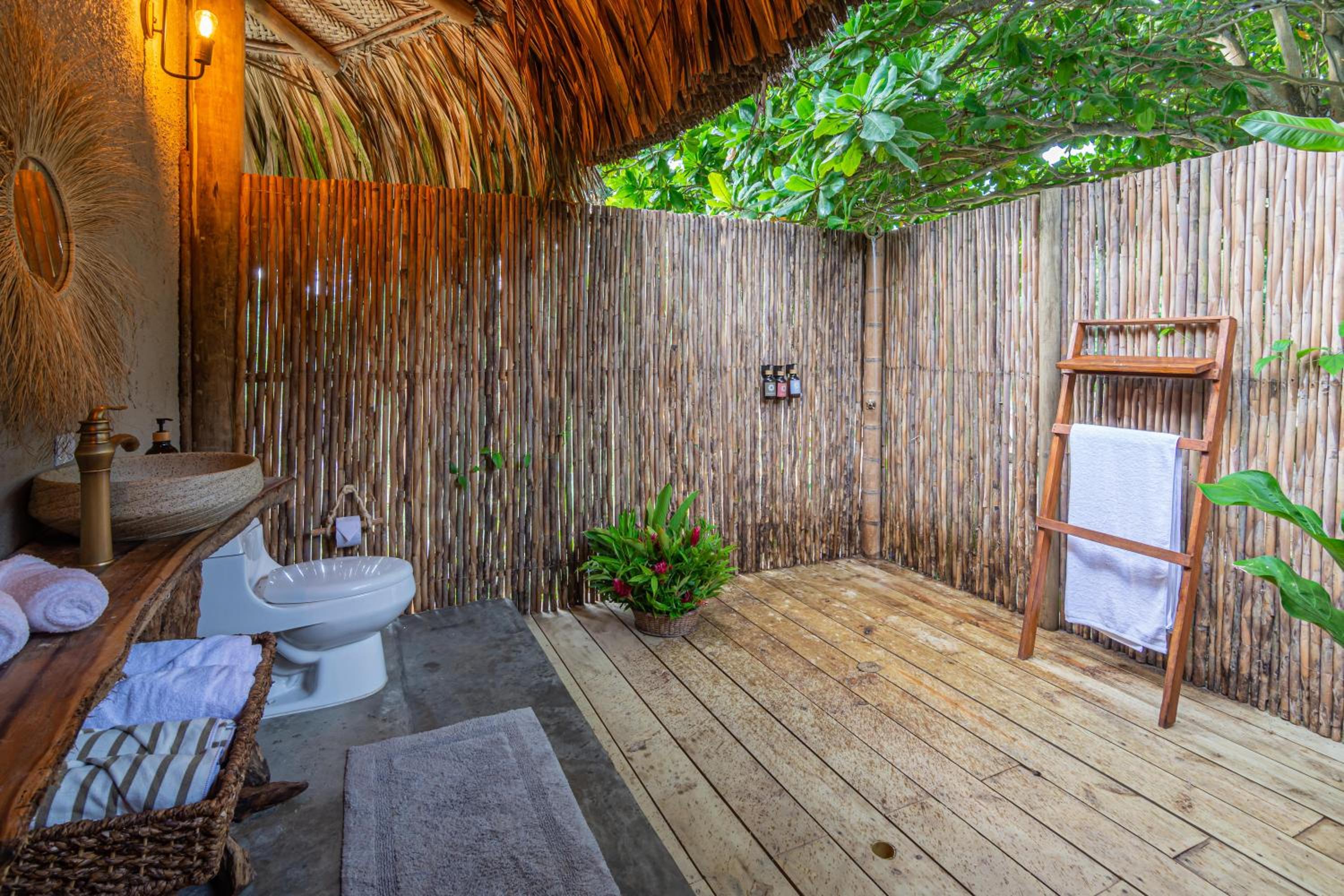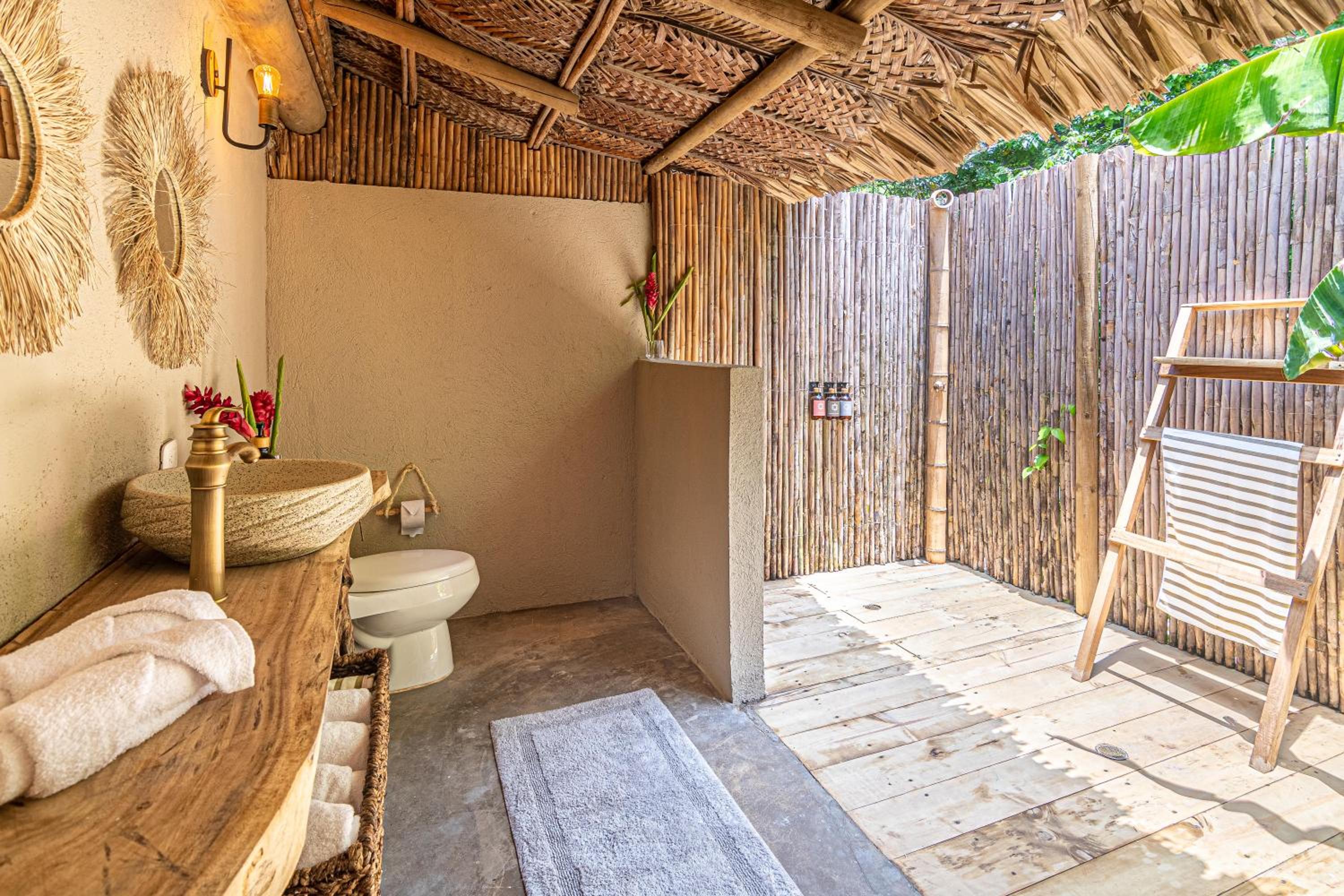 The doors did not close properly, with slits allowing mosquitoes to enter - which is not enjoyable. There was no net for the bed to counter this. The shower and bathroom are outside, which provides a nice experience. This becomes very interesting if you have to go to the bathroom in the middle of the night, having to navigate all kinds of bugs. There was also no hot water.