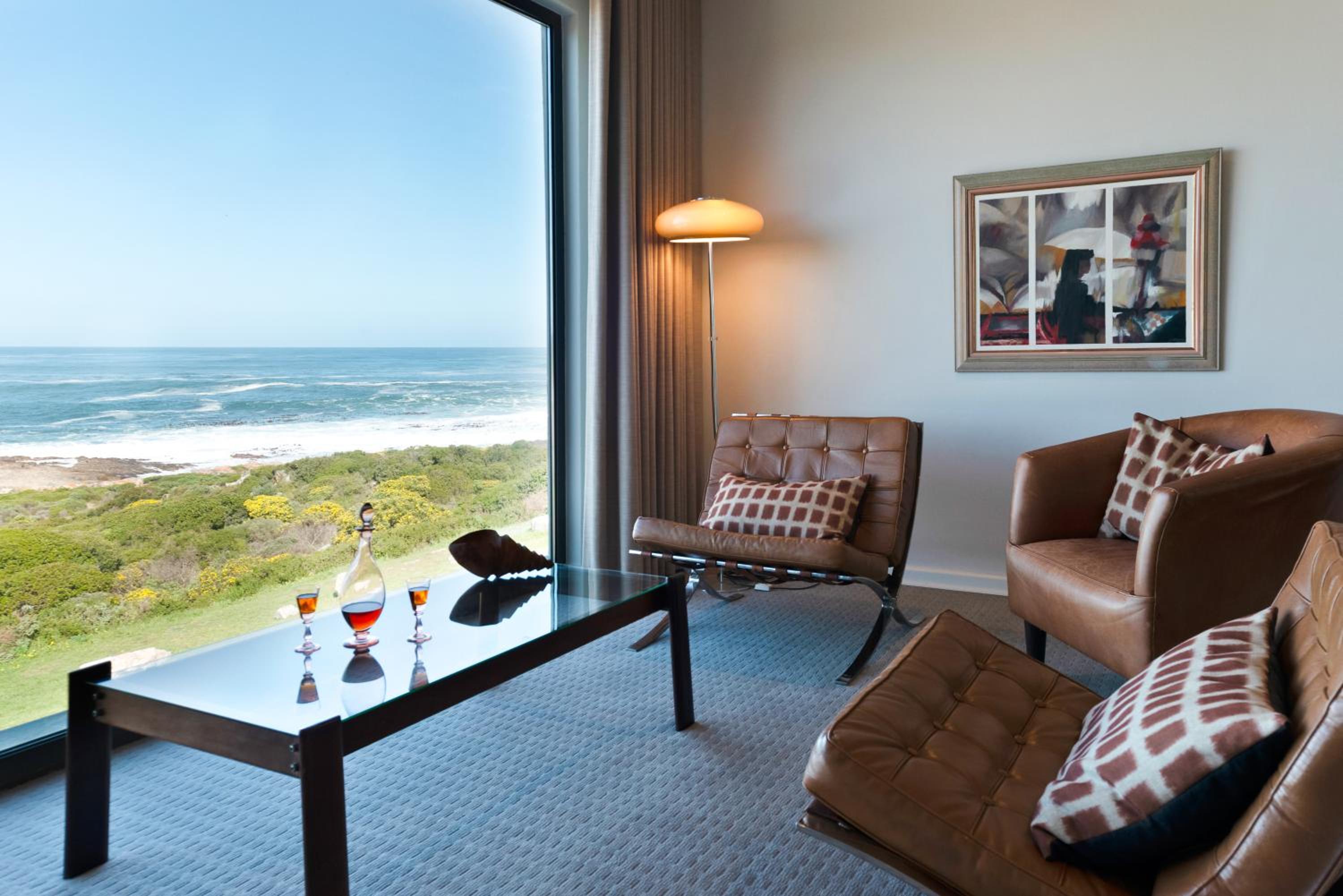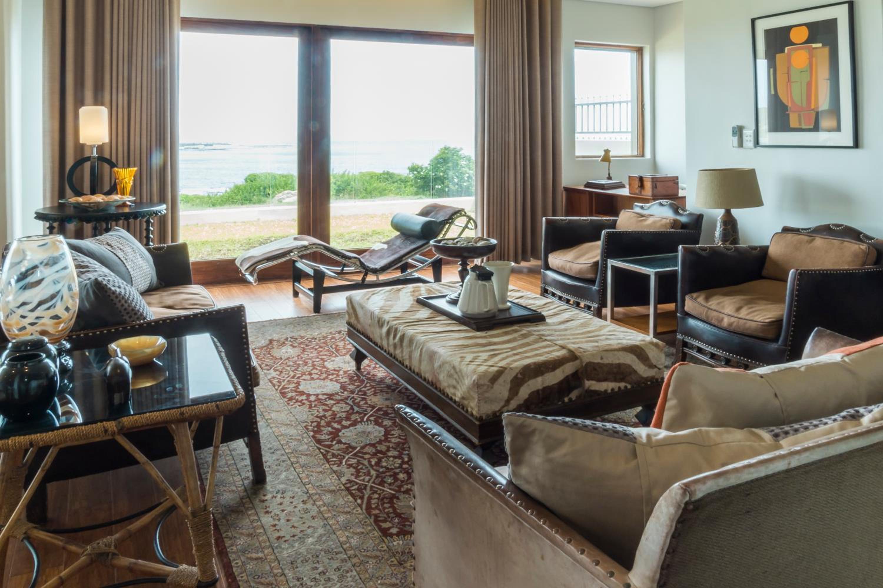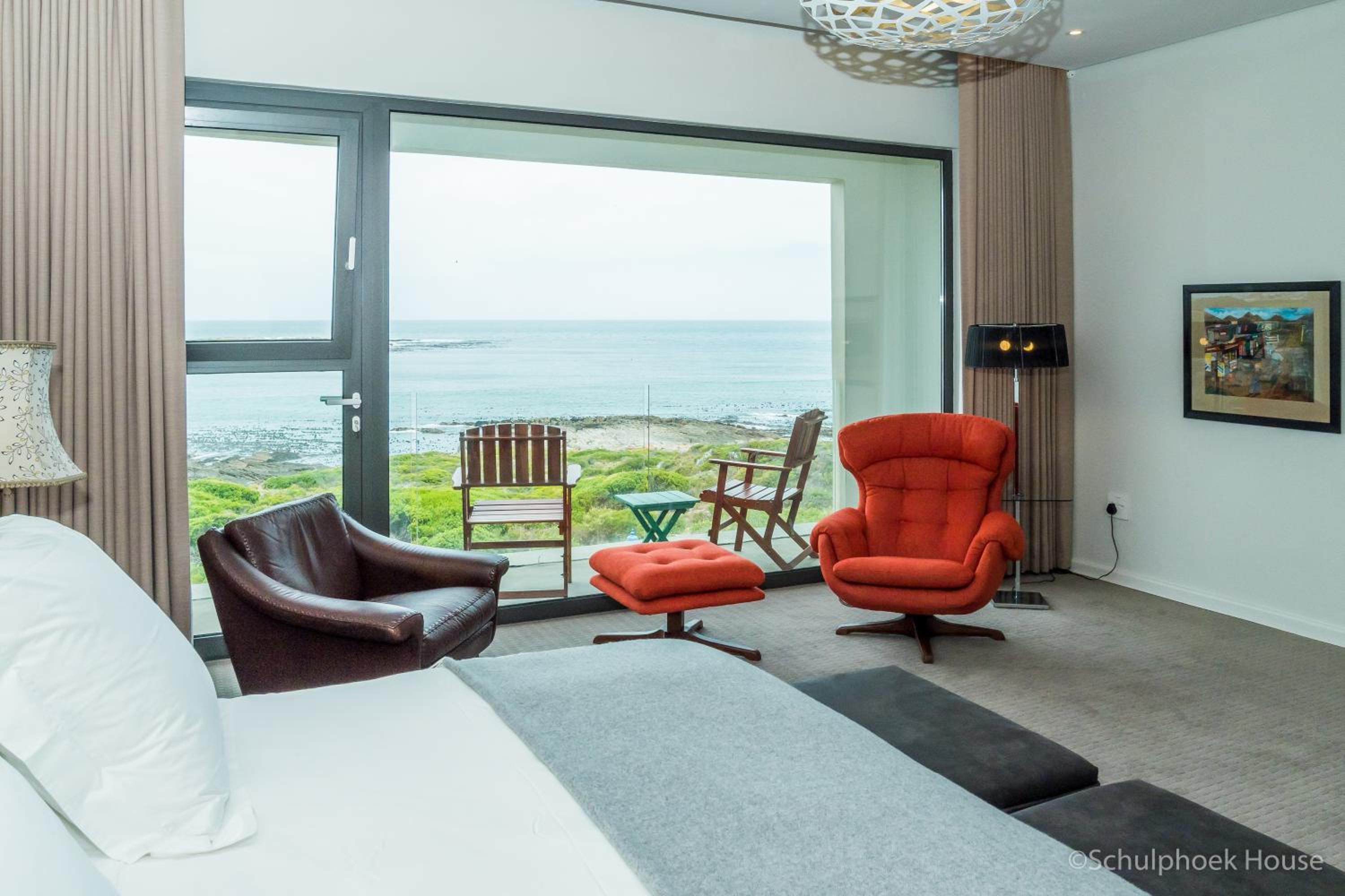 Luxurious Accommodations: Schulphoek Seafront House boasts elegantly decorated rooms with original mid-century art and furniture, offering modern amenities and comfort for guests.