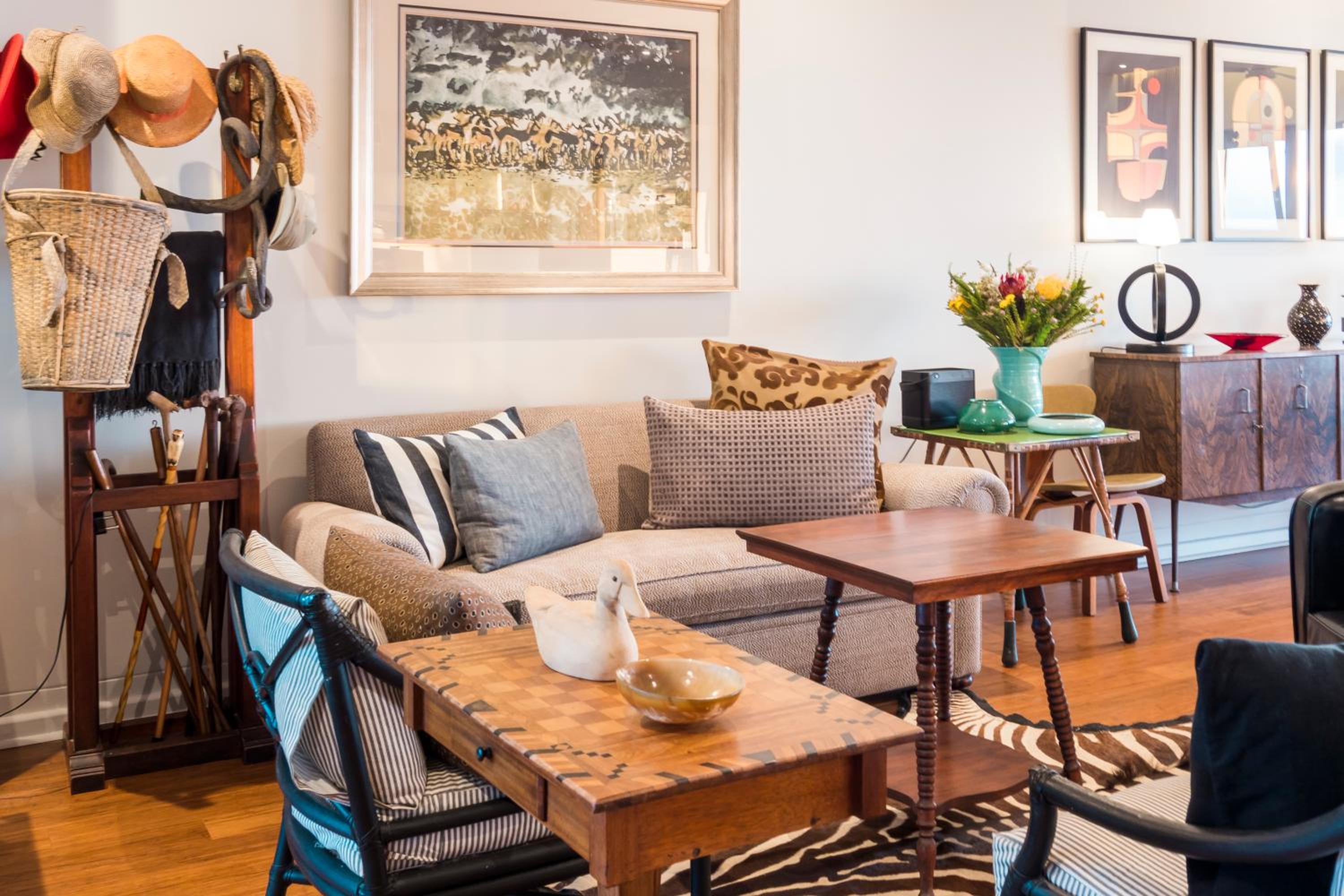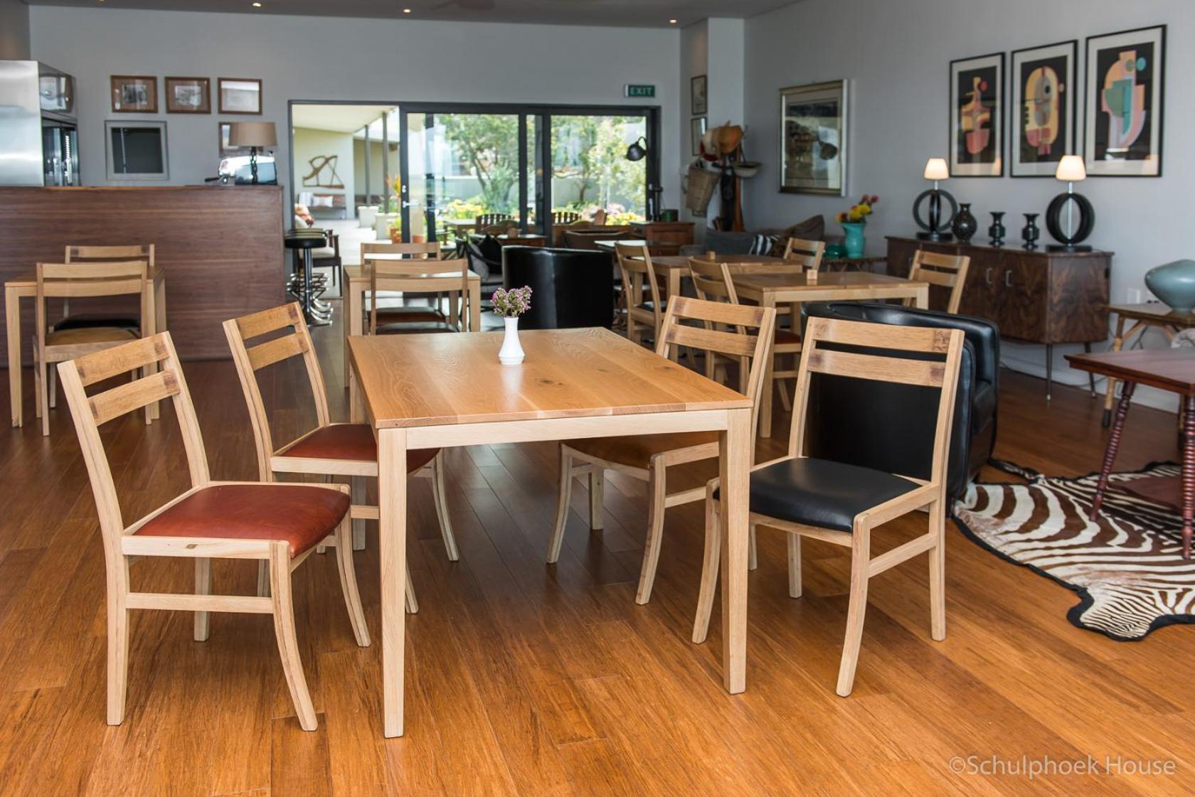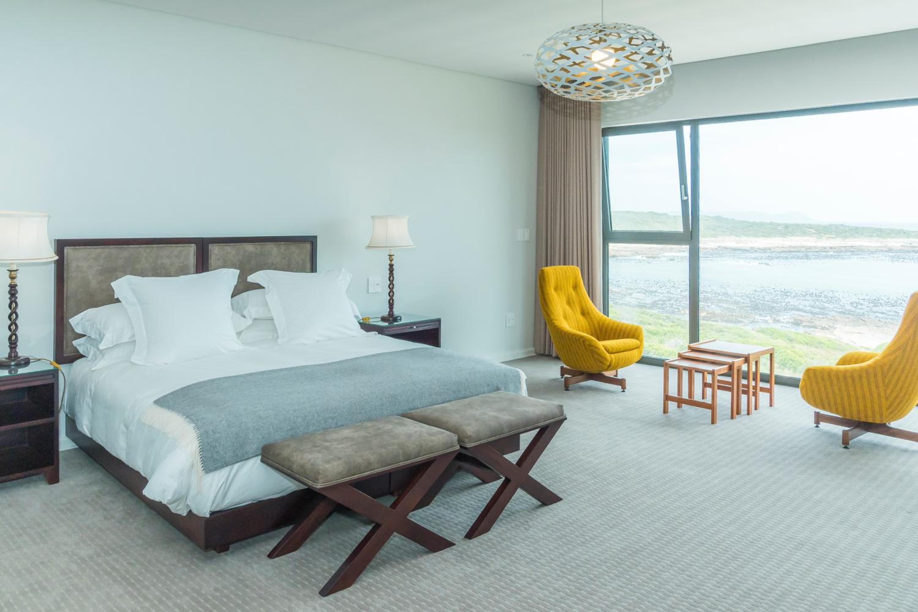 Luxurious Accommodations: Schulphoek Seafront House boasts elegantly decorated rooms with original mid-century art and furniture, offering modern amenities and comfort for guests.