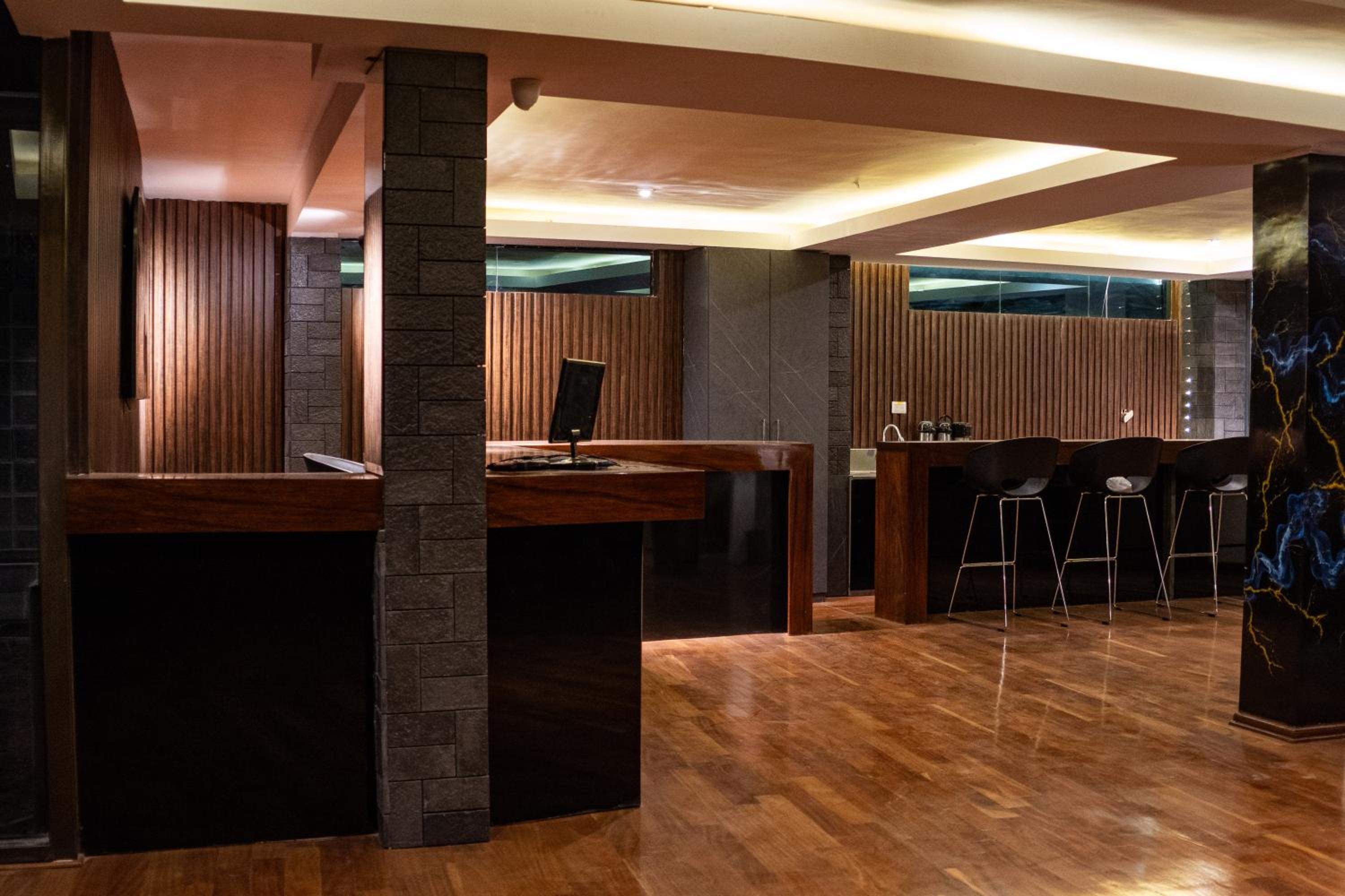 El acceso al hotel empieza en el tercer piso, hasta allí, hay que subir por escaleras.