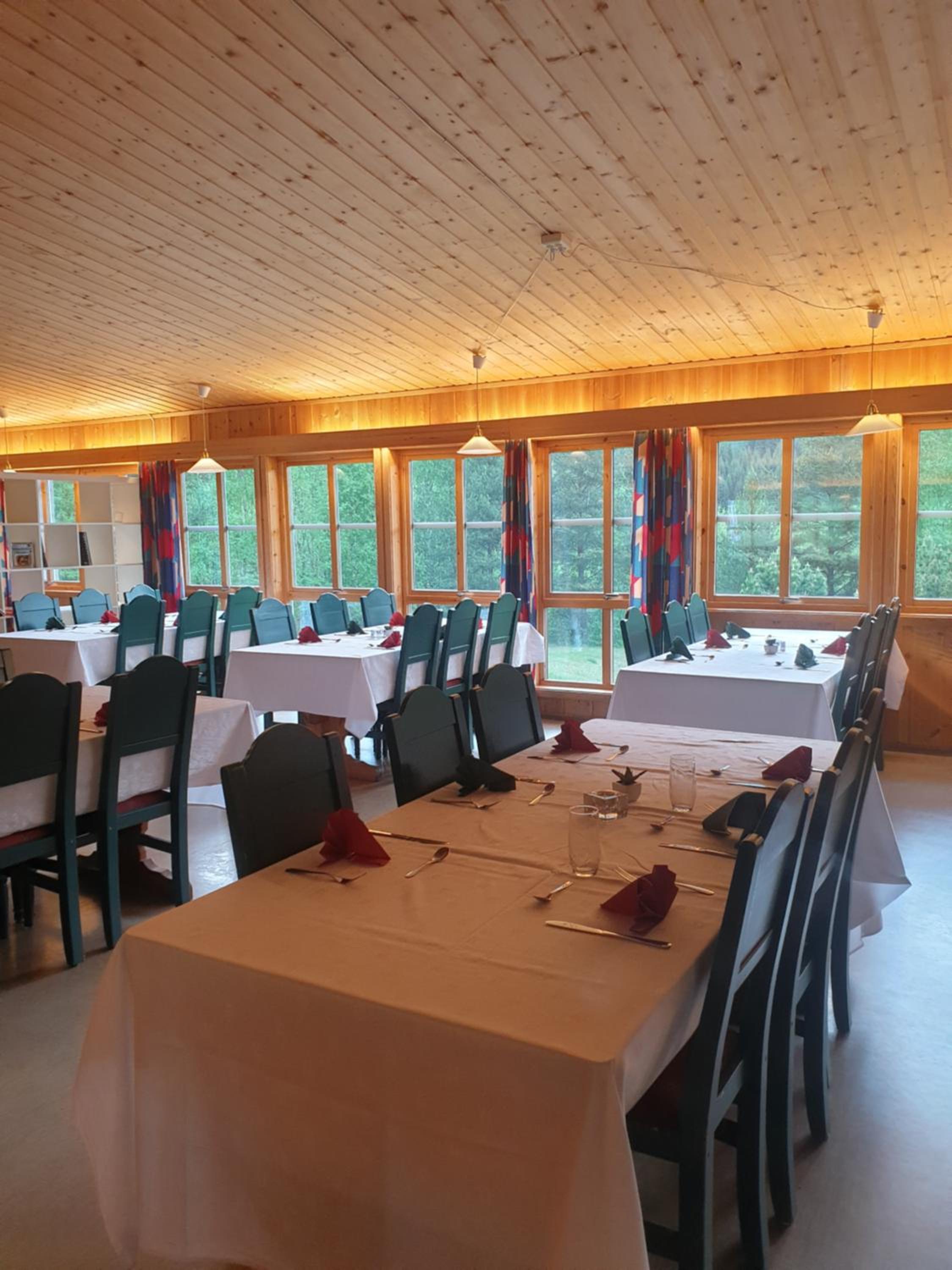 Ingen bemanning tilgjengelig etter kl 23. Vi låste oss ute og var ingen mulighet å få kontakt med bemanningen. Endte med at vi måtte vekke en av gjestene og spørre om de kunne låse oss inn. Fikk ingen informasjon om at det ikke var bemanning etter 23. Store fuktskader i taket og sliten betjening.