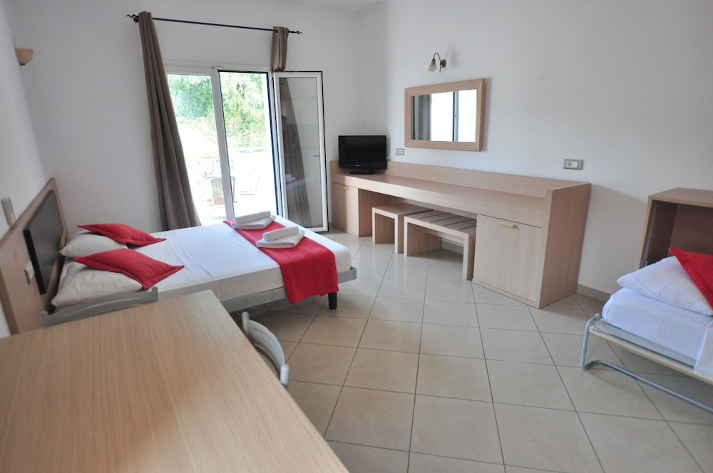 Arrived late one evening to check in. Reception demanded the tourist tax in cash. Reception staff quite grumpy and not friendly or welcoming. No mention of the need for cash in the booking confirmation or any correspondence beforehand so wasn't carrying enough with me. Offered to pay card and they said no but get cash tomorrow and pay tomorrow. I thought ok no problem. However, 10am next morning cleaner comes barging into 4 of our rooms without knocking or any warning whilst still sleeping to handover a note demanding the tourist tax needs paying. Completely unacceptable. Rooms were ok but scruffy. Bathroom not great and shower didn't drain properly meaning standing in a puddle whilst showering. Bathroom drain had funny smell. Breakfast was ok. Coffee terrible - some of the food ok, some not really edible but enough to get a breakfast together. Overall the place is ok as a cheap option but a lot more attention to detail is needed and the barging into rooms is completely unacceptable. Pools and outdoor areas are nice. Feels like the rooms and especially the bathrooms need a revamp.