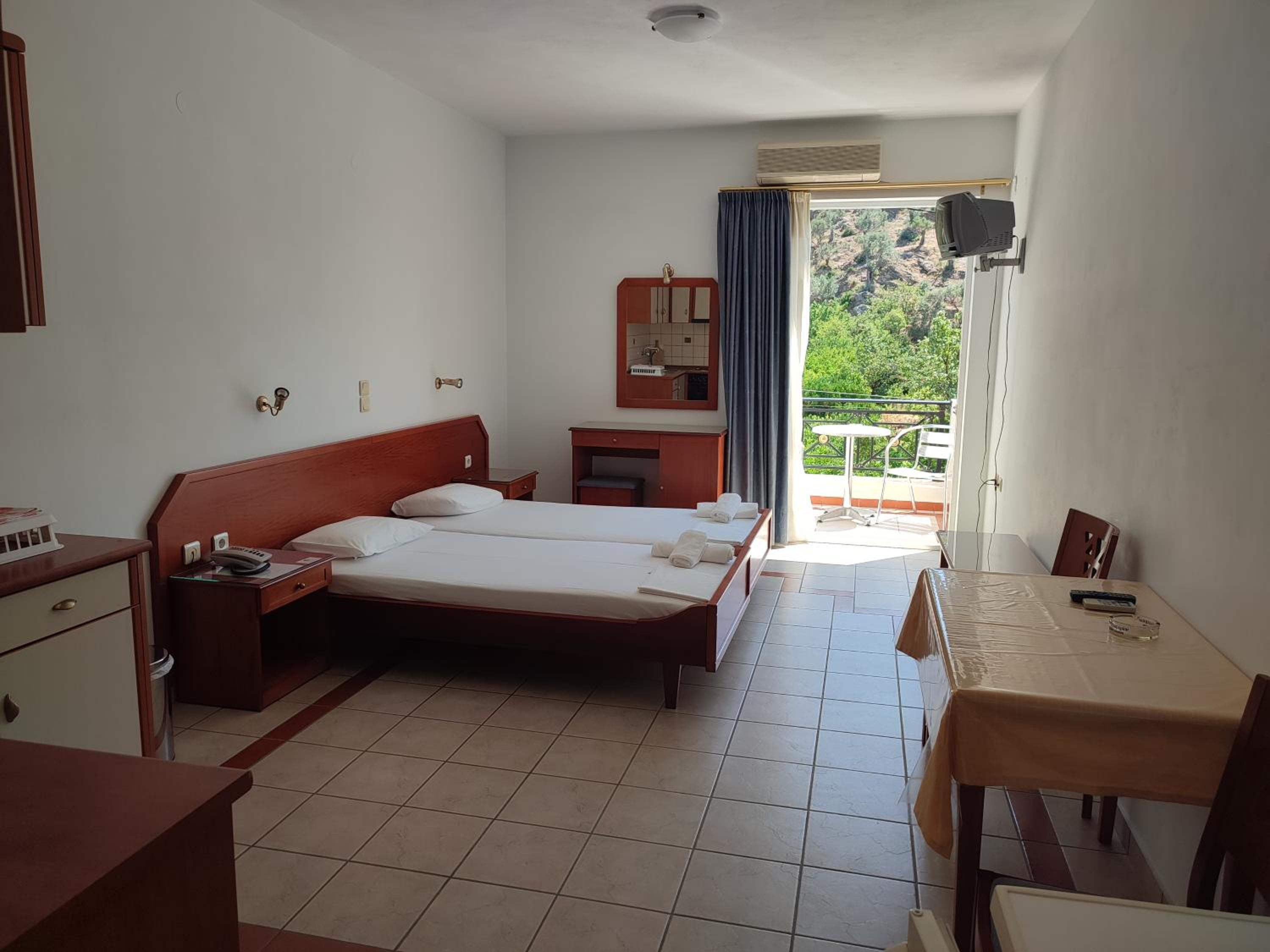 Resepsiyondaki hanımefendi çok güler yüzlü ve yardımseverdi. Odalar çok temiz, mutfağı eksiksizdi. Eski olmasına rağmen eşyalar bakımlıydı. Daha çok kalmalı bir tatilde kesinlikle geleceğimiz bir otel.