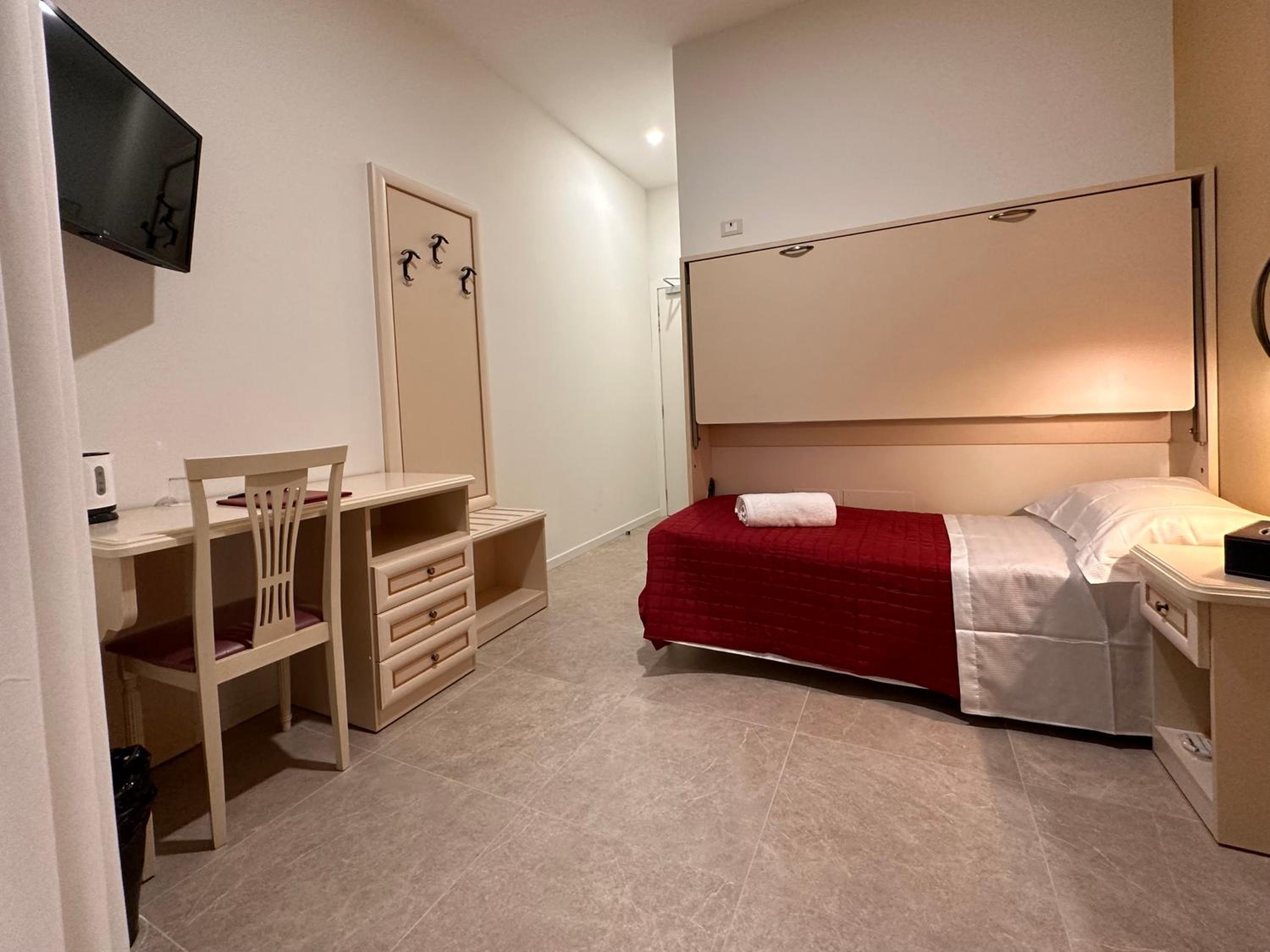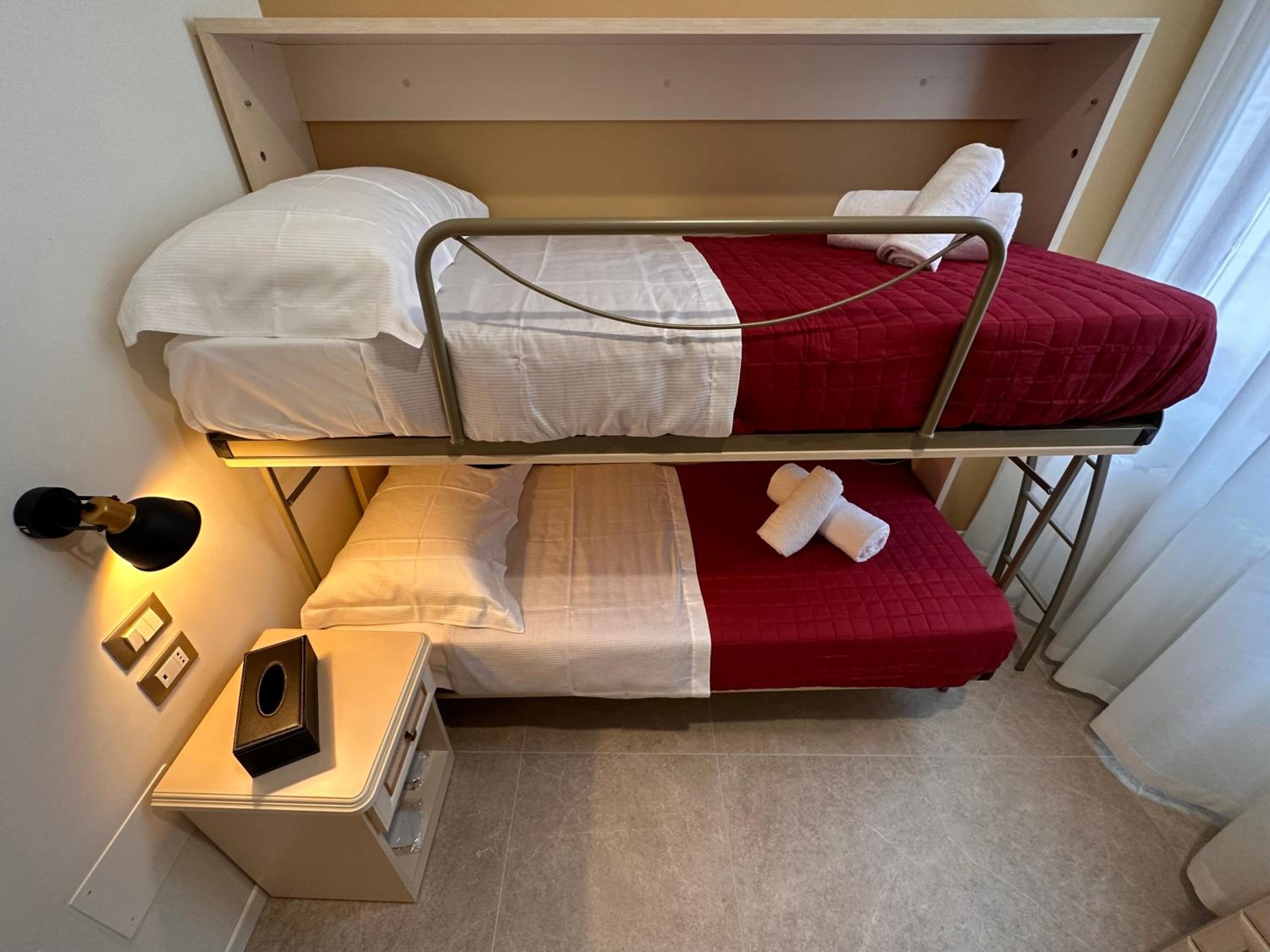 the room is very nice, it's a rare case where the booking.com photos look worse than the actual thing. it's well equipped with everything you need, everything is new and clean. people at the reception were nice and helpful. the hotel is right next to the vaporetto stop, and the sea view is just wonderful!