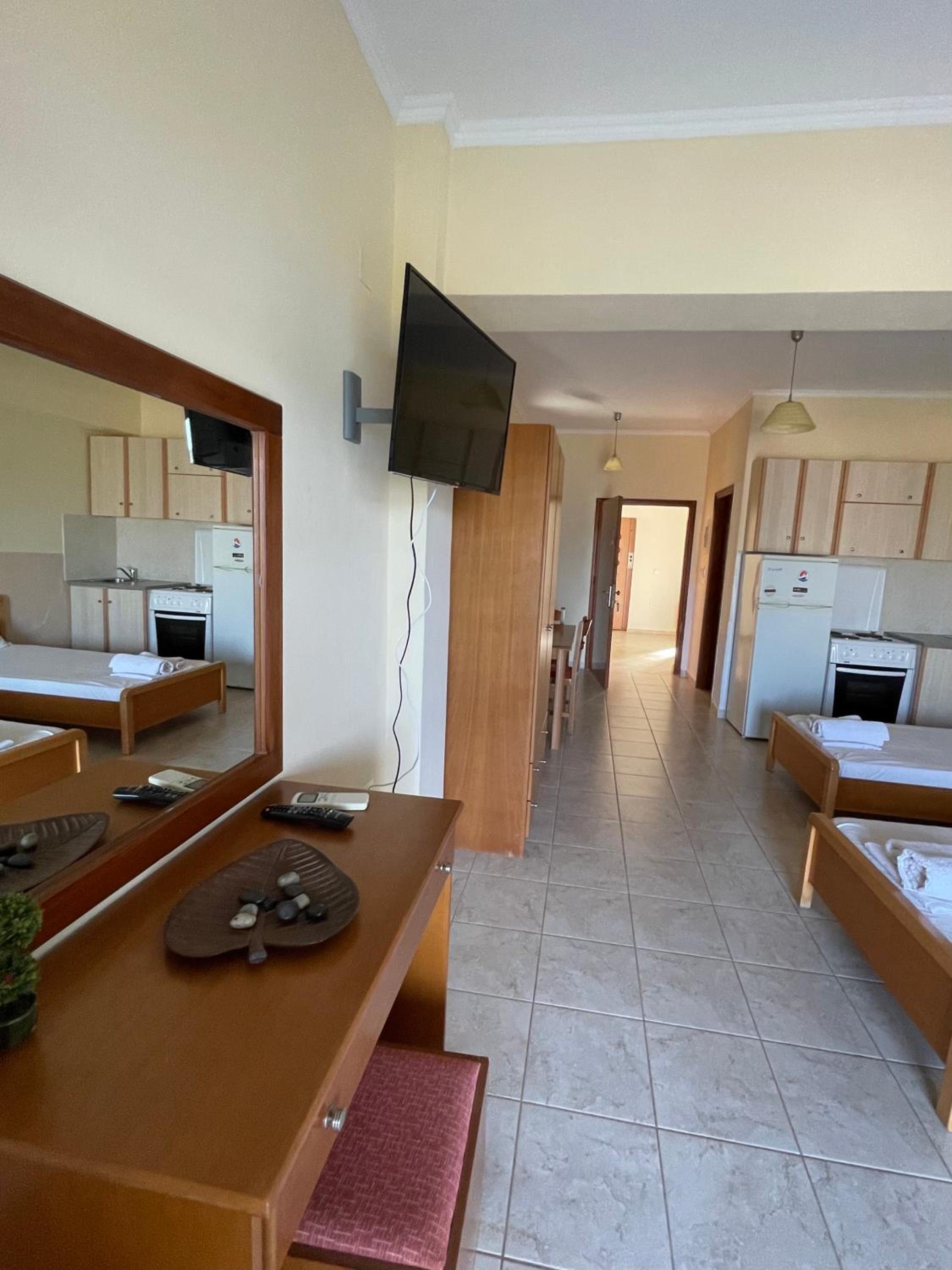 The way the owner, Nikos, takes care of the customers , is ideal. He could not care more for our needs. The rest of the crew is orchistrated under his commands, eventhough he is away, for rather longer than it is expected. The location is quiet, staying around the pool is the relaxing meaning of having vacation.