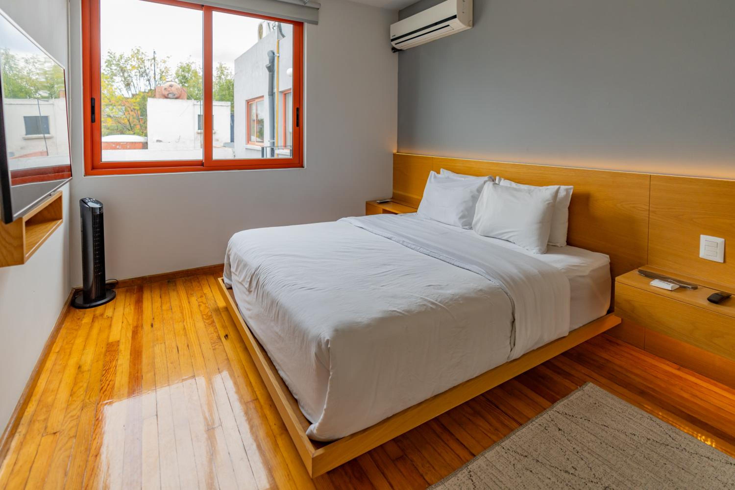Our scores on comfort and value are lower because of the following two factors. Knowing it could be hot in CDMX during our stay, we specifically picked an apartment with air conditioning. However, in our unit, the one air conditioner in the bedroom did not work. Unfortunately, we had very warm weather in CDMX our first 3-4 days. The apartment had 3 large floor fans/air purifiers, but those, of course, only moved air around. There are no shades in the living room so from morning until mid afternoon, the sun heated up the apartment. (We could close blinds in the bedroom which helped in the late afternoon for that room). Although the nights were cooler, the apar and the apartment remained uncomfortably warm until maybe 3am. After the first night, we went down to reception to report the air conditioning wasn't working. When we returned later that day, we were told it was broken and needed a part. It wouldn't be fixed for our 6 day stay. We asked if there was any kind of discount, but didn't receive one.