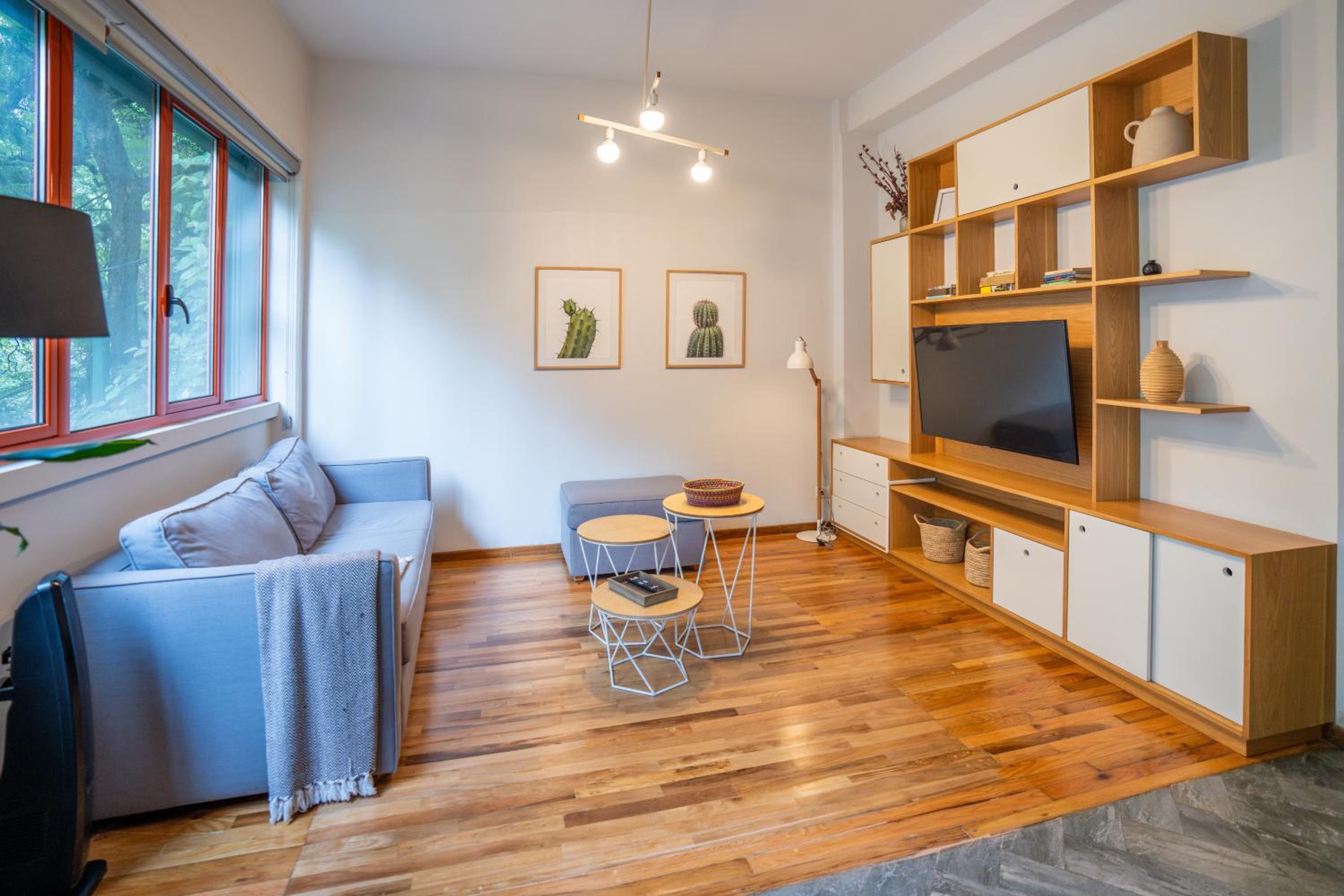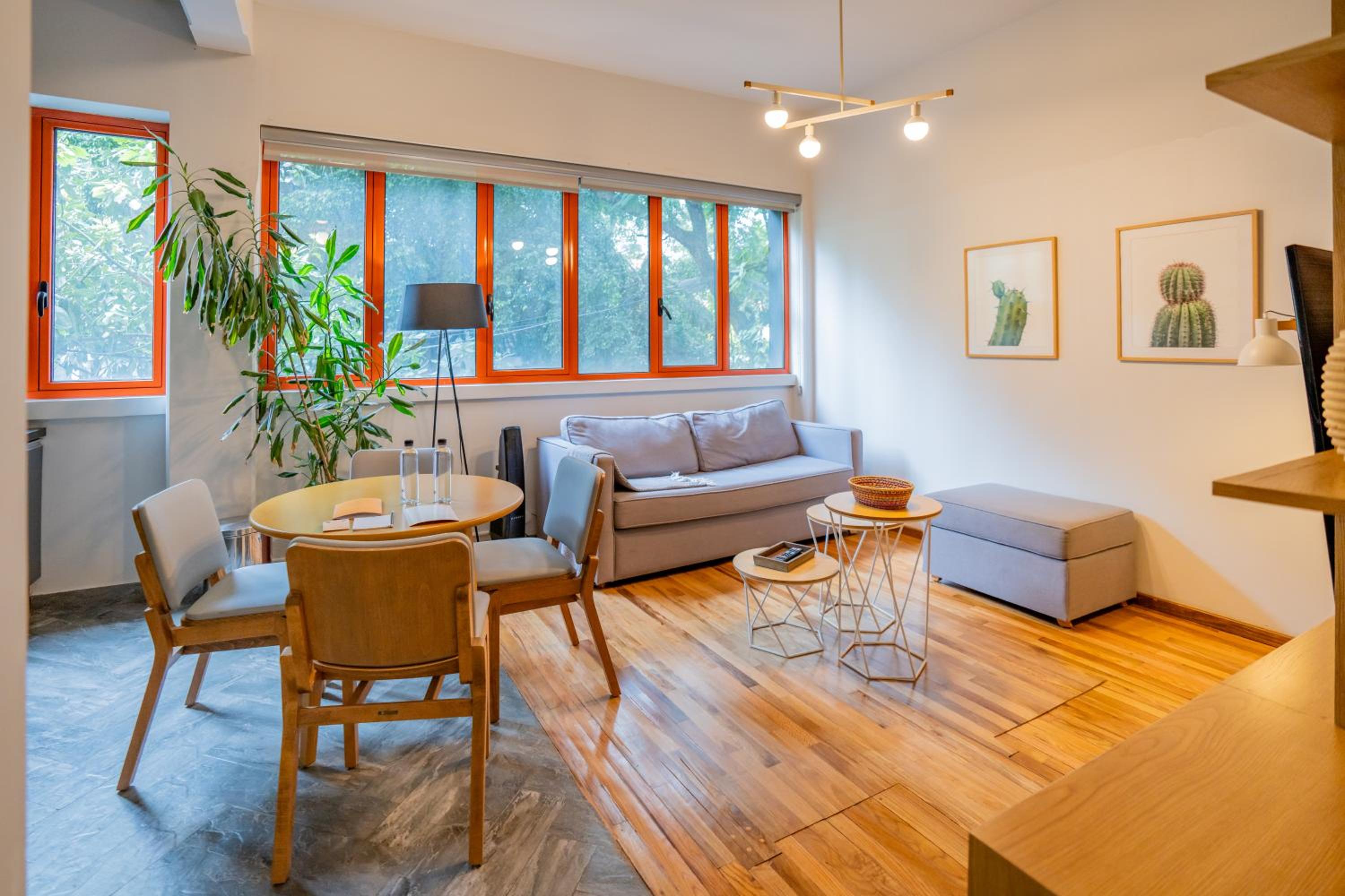 Enjoy the comfort of air conditioning, a flat-screen TV, and a well-equipped kitchen in our recently renovated apartment in Mexico City.