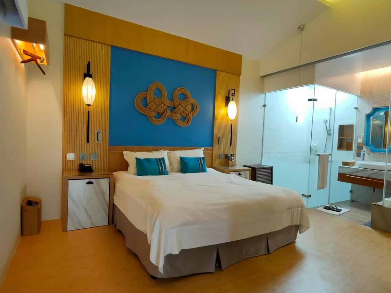 Luxurious Accommodations: The air-conditioned rooms at Tingtau Villa offer a cozy stay with wooden flooring, modern amenities, and a private bathroom stocked with complimentary toiletries.