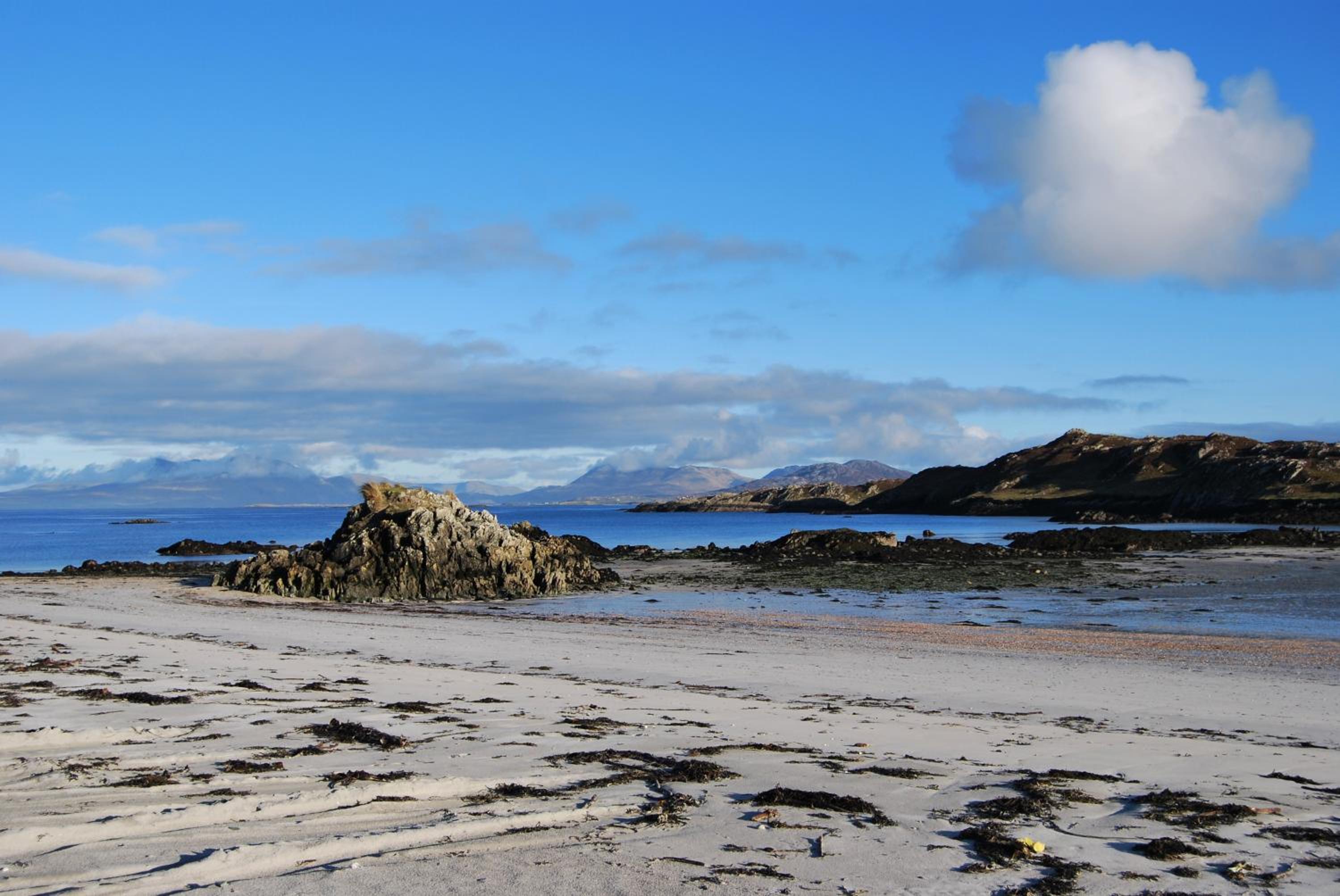 This wonderfully located hotel is on a very small Island called Inishbofin, only accessible by boat from Clifden, as walk on passengers. The 2 blue flag beaches on the east of the island were amazing, the Atlantic ocean is the nicest sea to swim in especially at this time of year. We were collected from the ferry by Pat who owns and runs the Dolphin Hotel, we had a great craic in the Beach bar at supper time, listening to live Irish folk music and drinking guinness with good tradition food. We had supper the next evening on top of an old red London bus. Our luggage was dropped at the ferry for us, so we didn't have to carry it down the road, and could enjoy a farewell pint in the beach bar before leaving.
