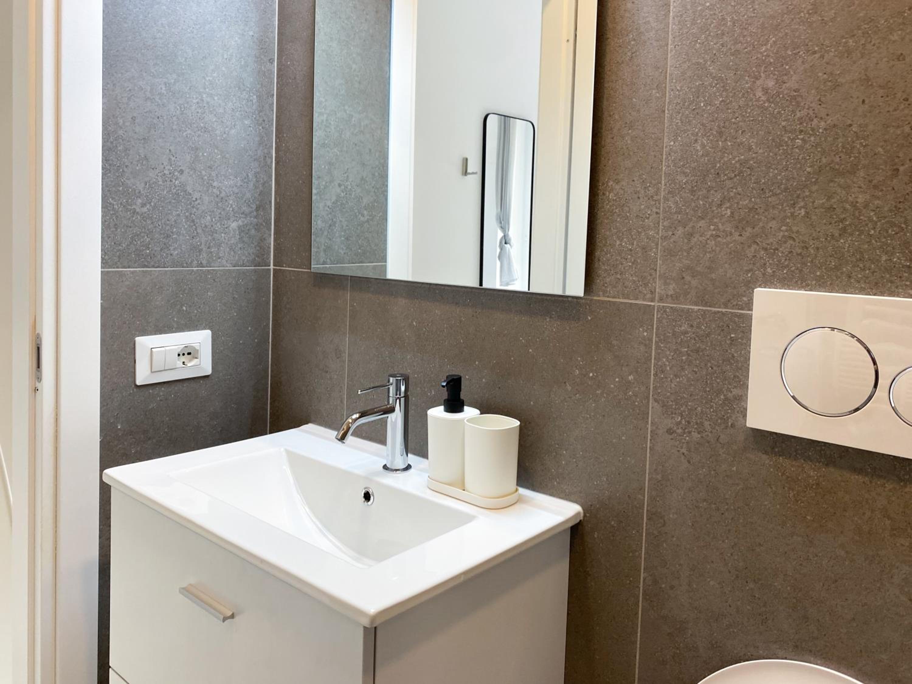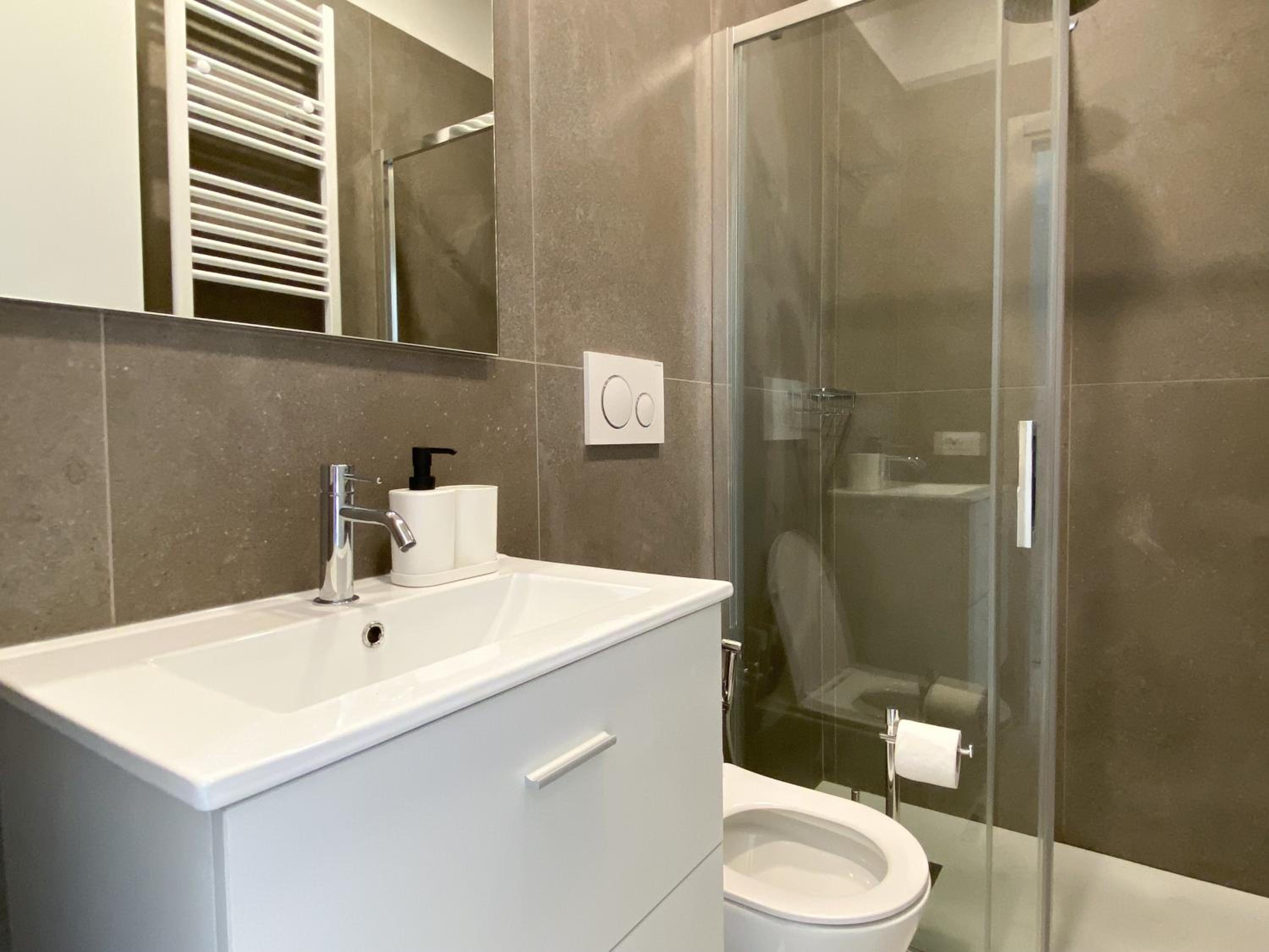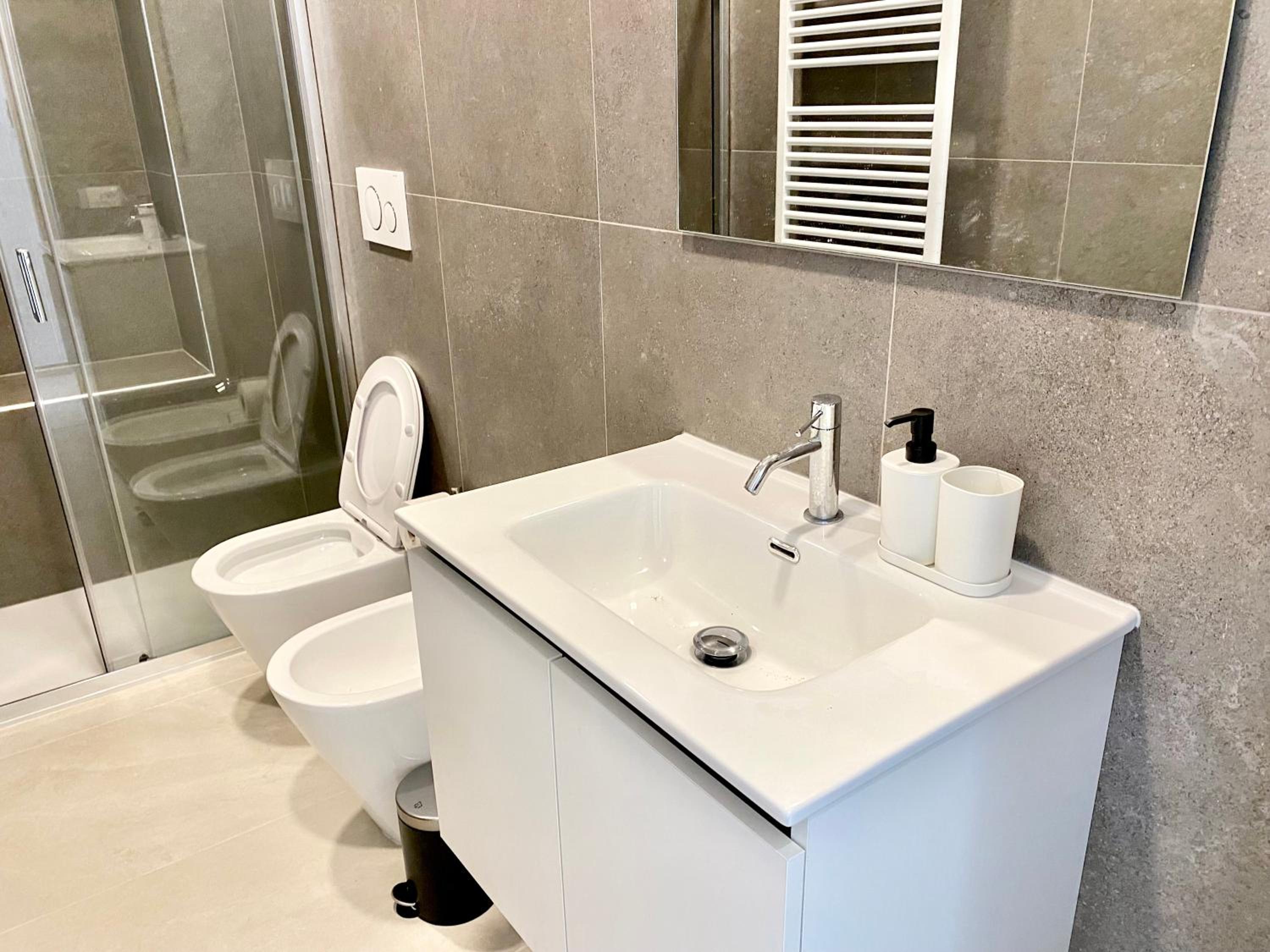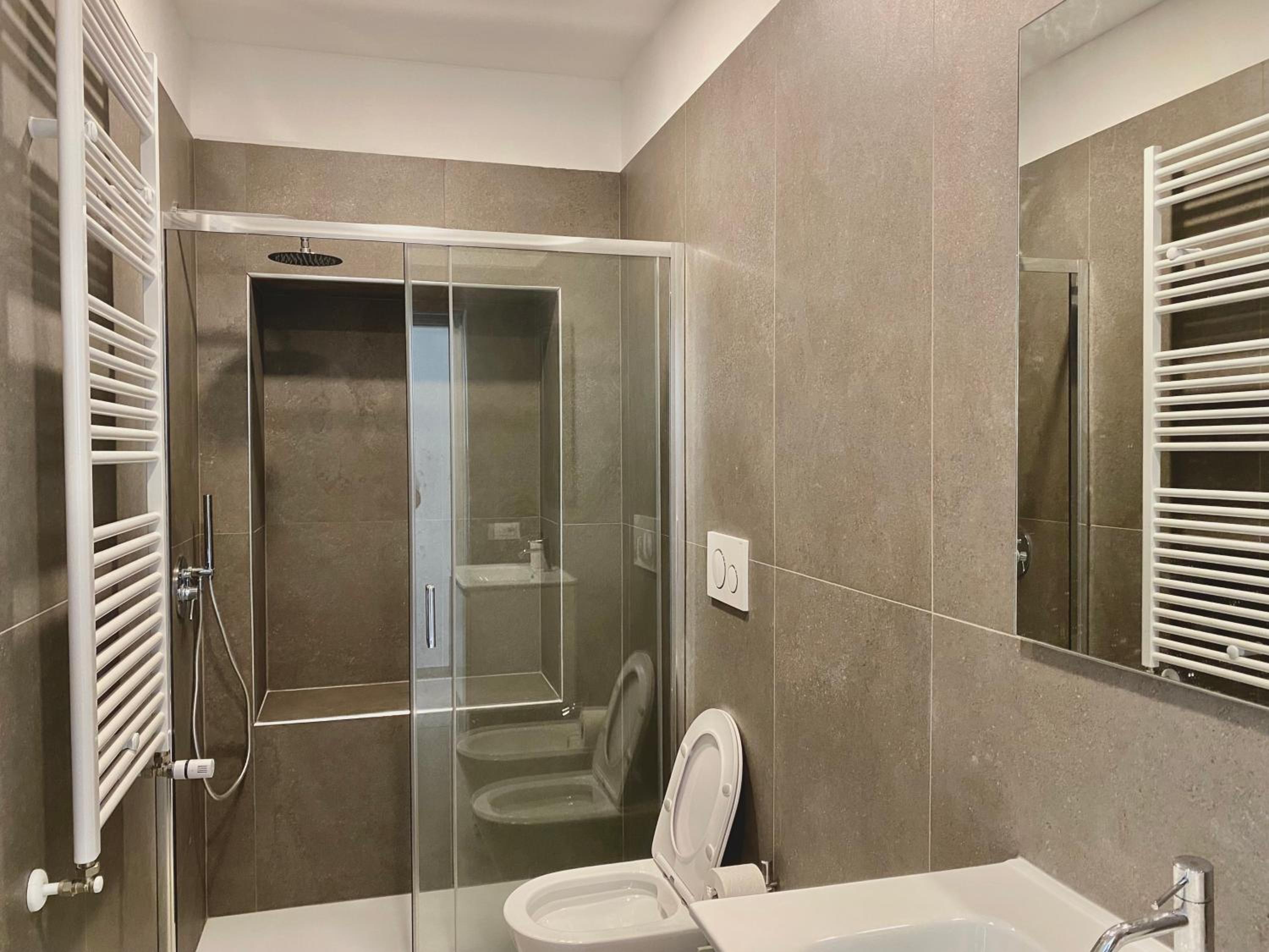 Assente il bidet. Sarebbe utile fornire un tappetino per l’uscita dalla doccia.