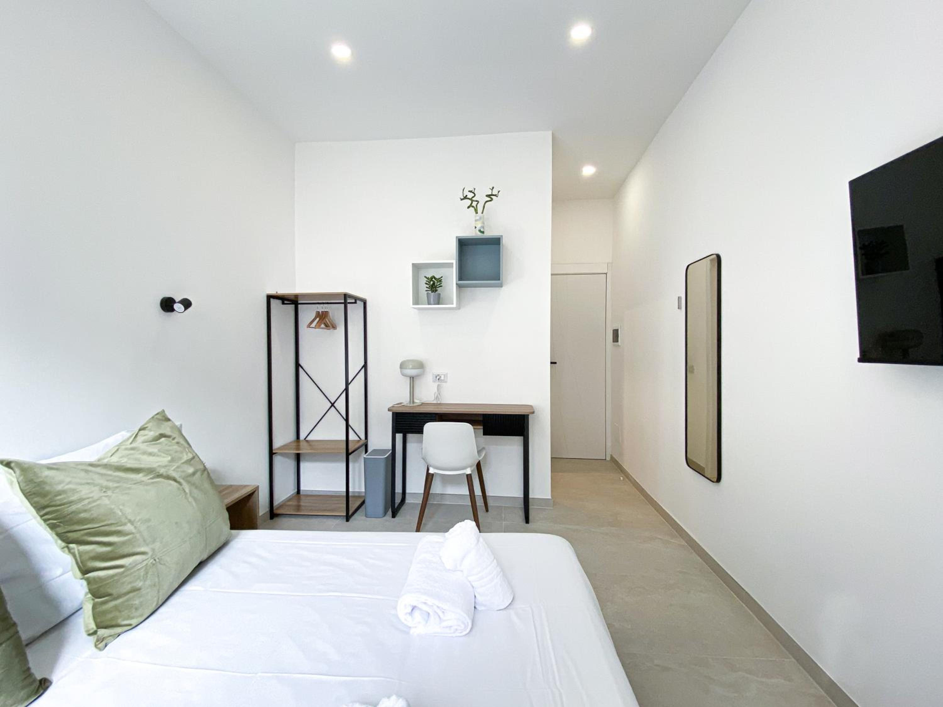 Nice room with private bathroom. Really silent apartment, so you can sleep and rest peacefully. For us, this was key. Has good location, well connected area, a lot of buses and next to the subway. Coliseum is like 20min walking distance.