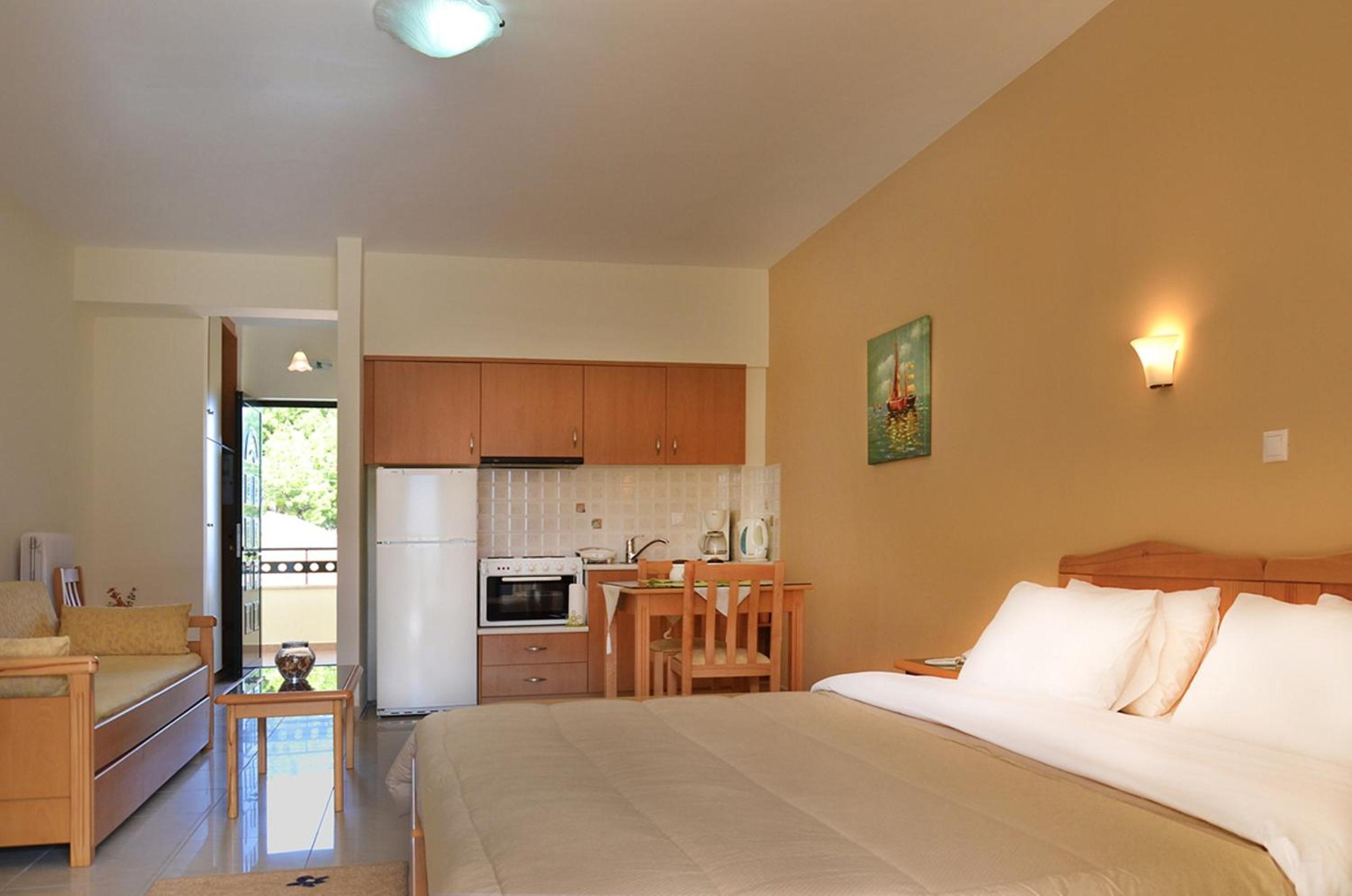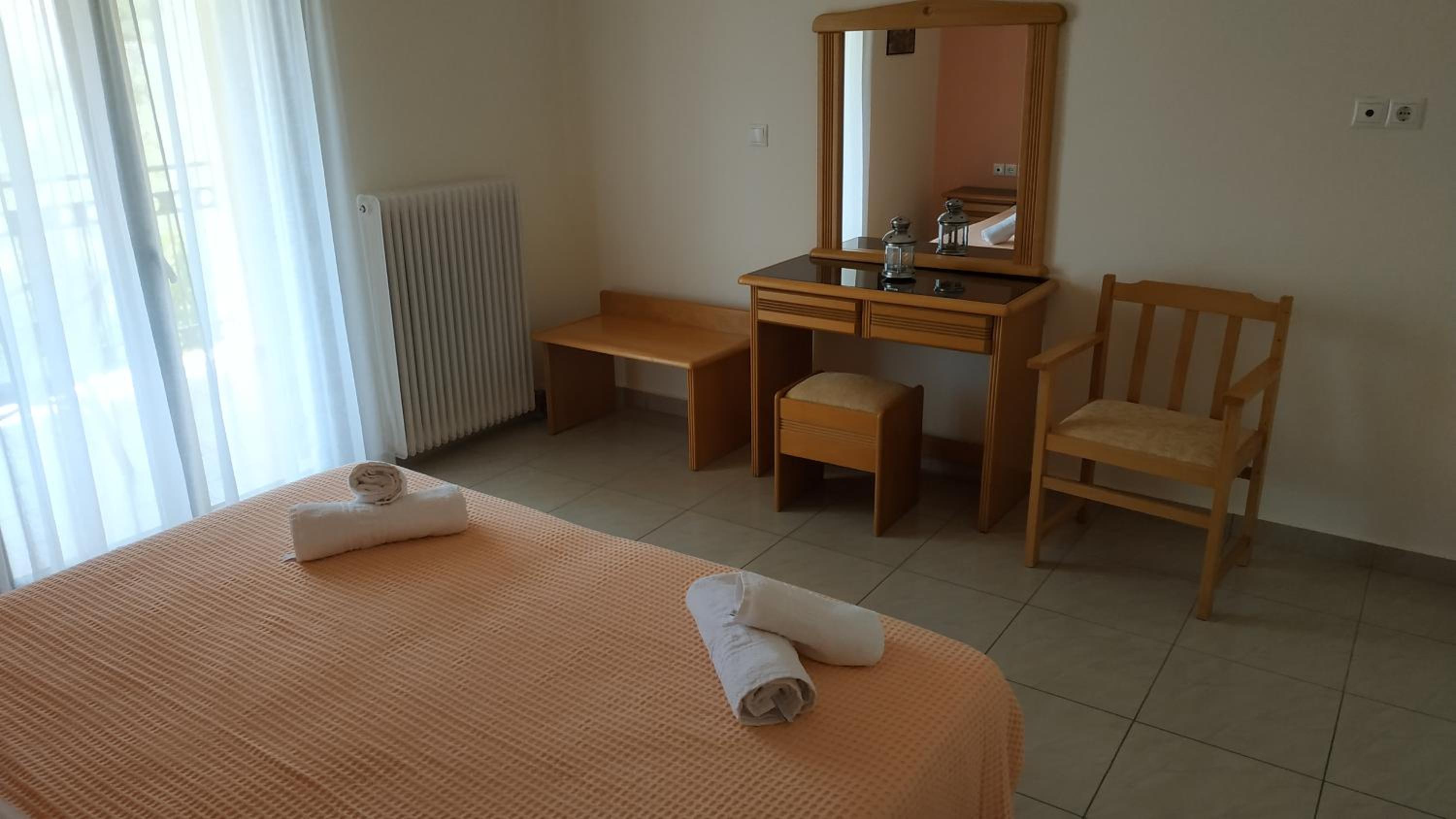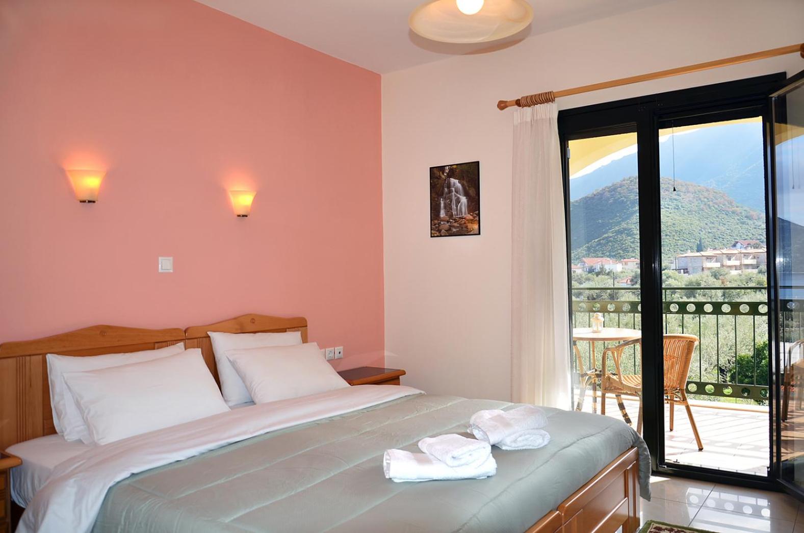 The room was very clean and spacious, and the bed very comfortable. The balcony offered a lovely view of both the sea and the mountains that surround Poulithra. The owners were lovely and delivered a breakfast tray to our room, and set it up for us.